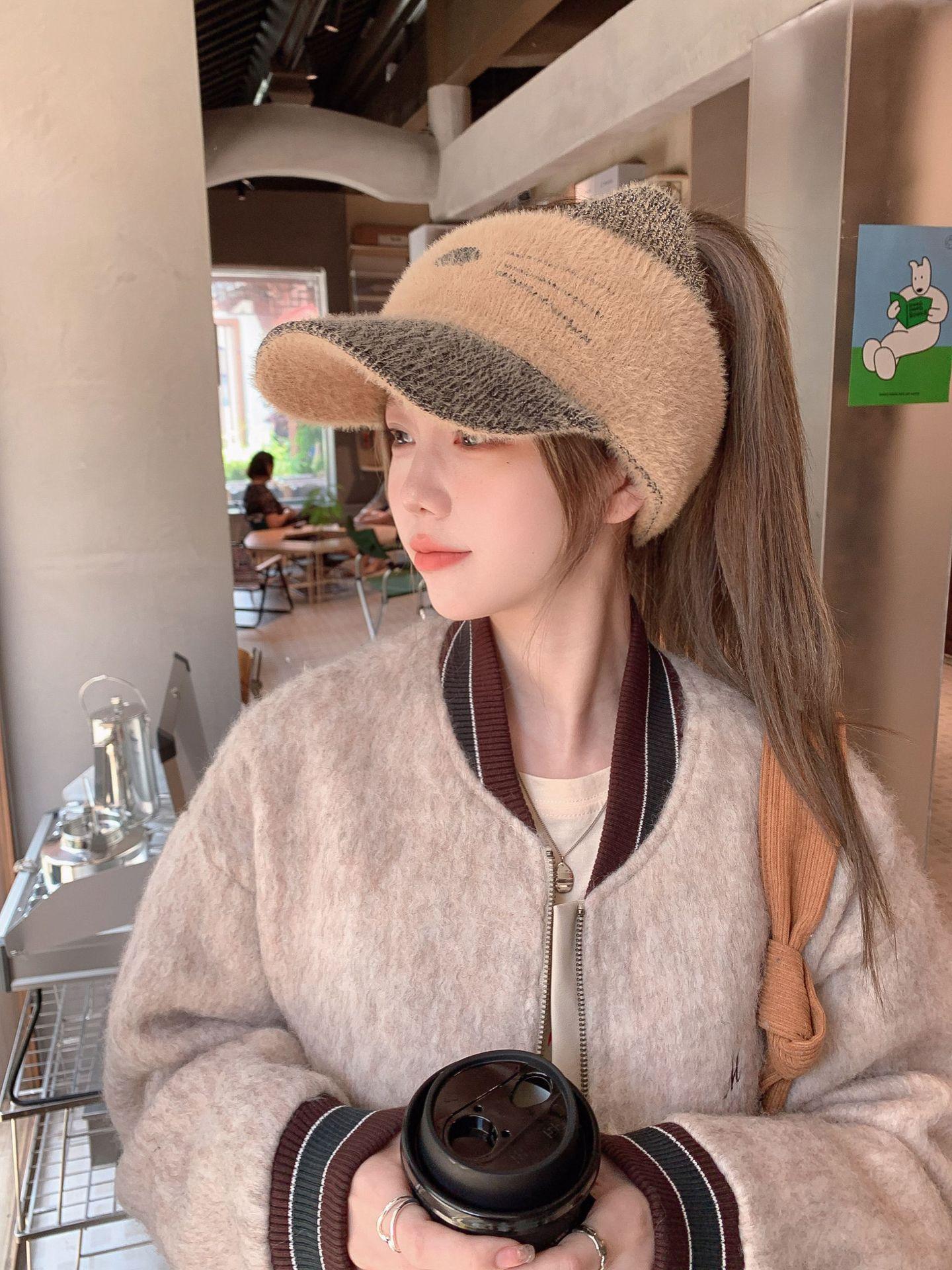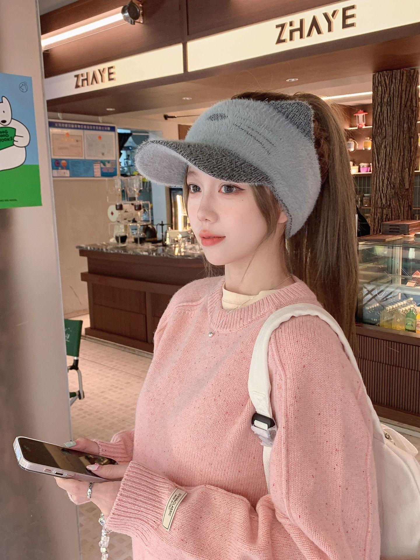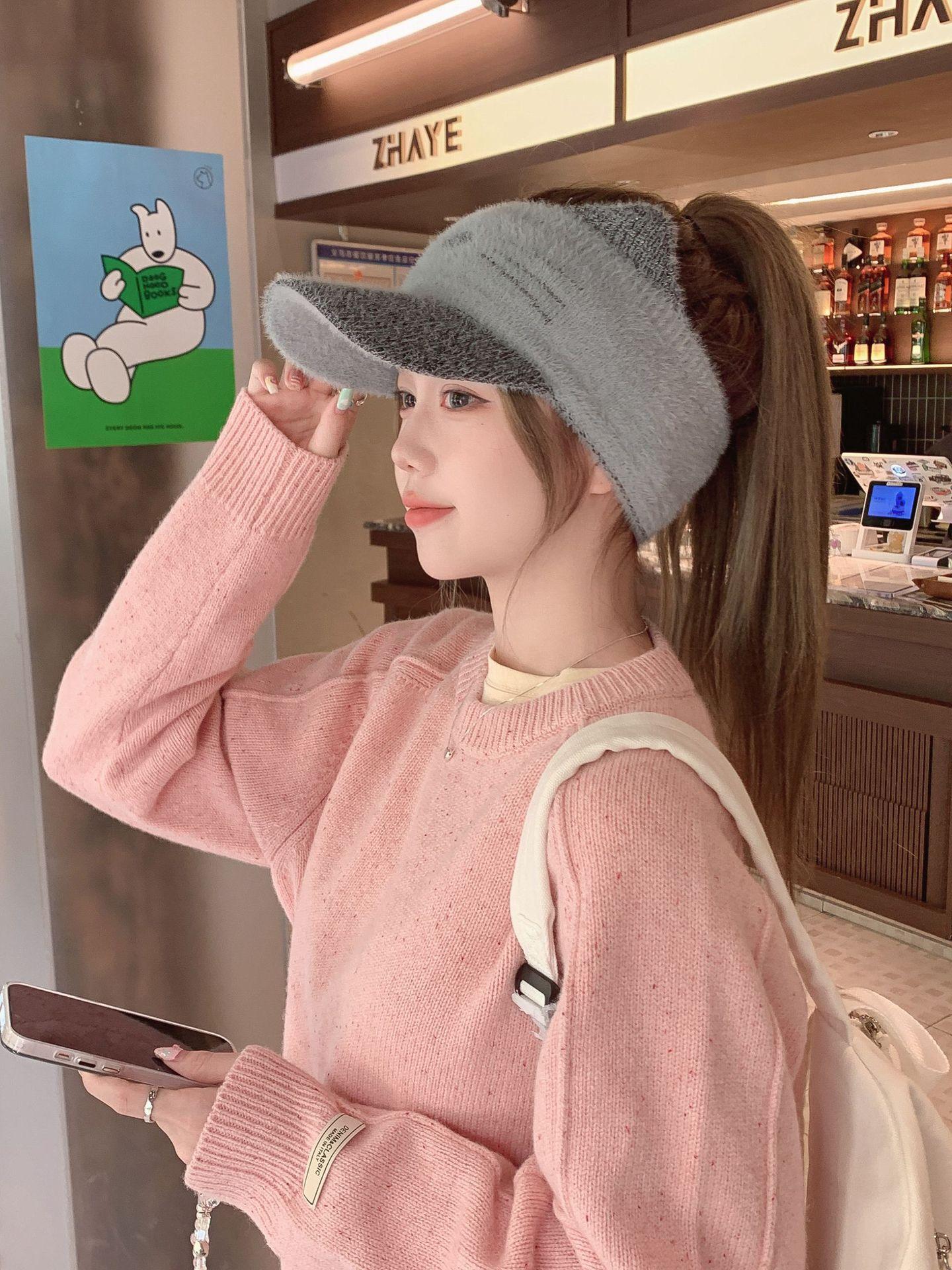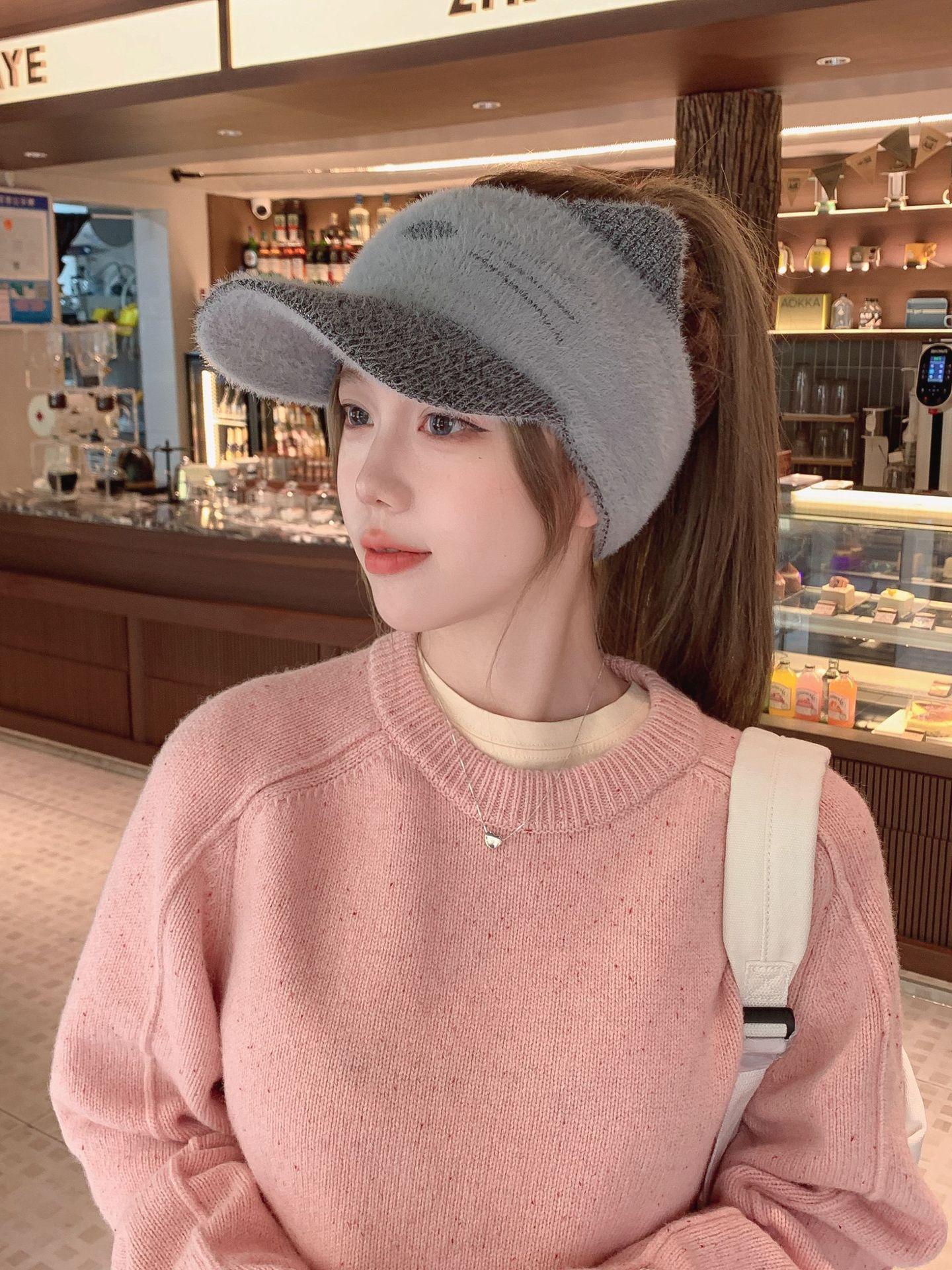 Sombrero Otoño e Invierno Moda para Mujer Cálido con forro polar Tejido Béisbol Mujer Lengua de Pato Lana Gorra Vacía Invierno Cara Pequeña