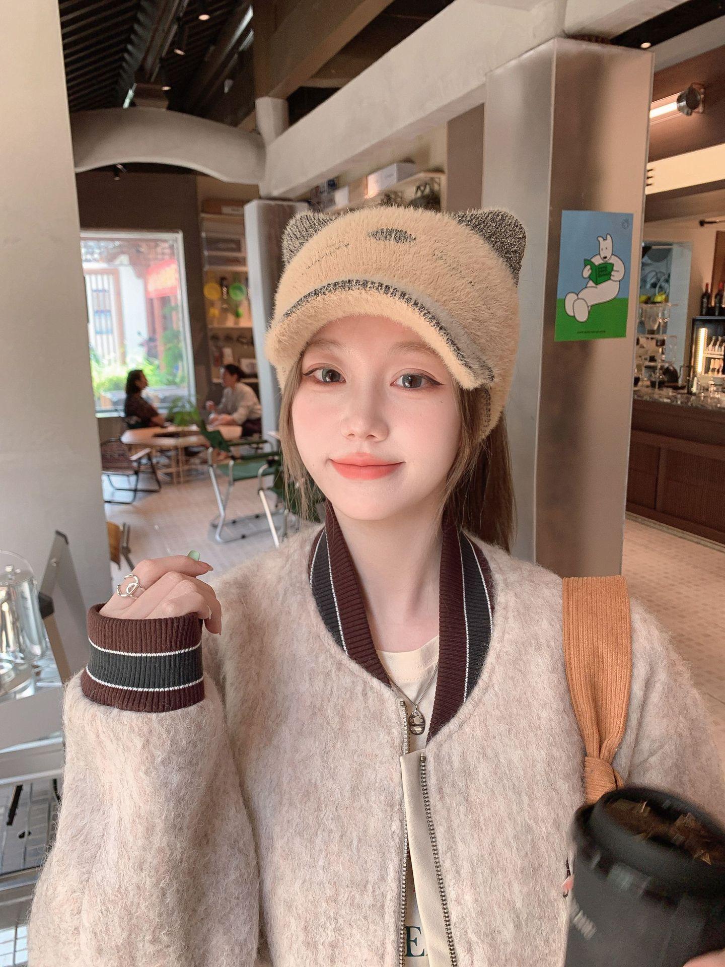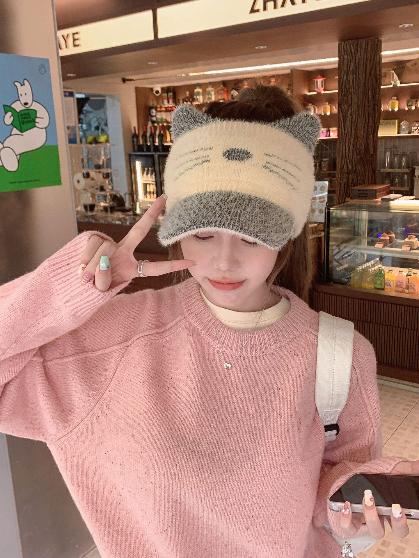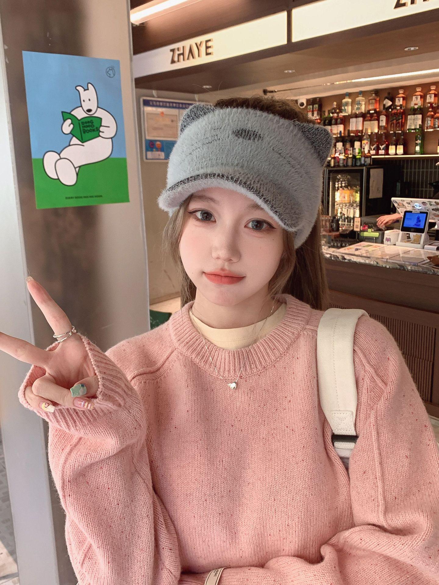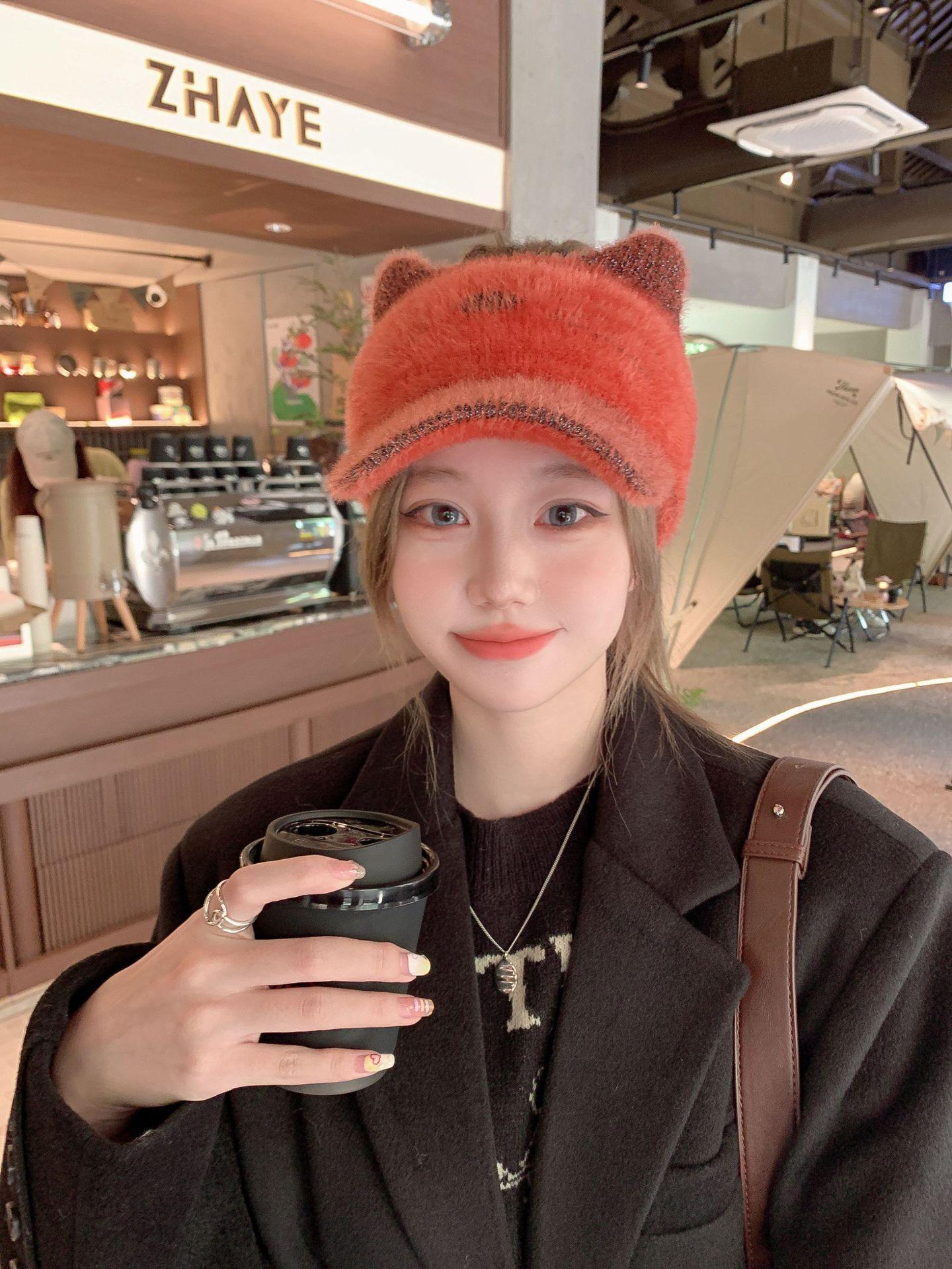 Sombrero Otoño e Invierno Moda para Mujer Cálido con forro polar Tejido Béisbol Mujer Lengua de Pato Lana Gorra Vacía Invierno Cara Pequeña
