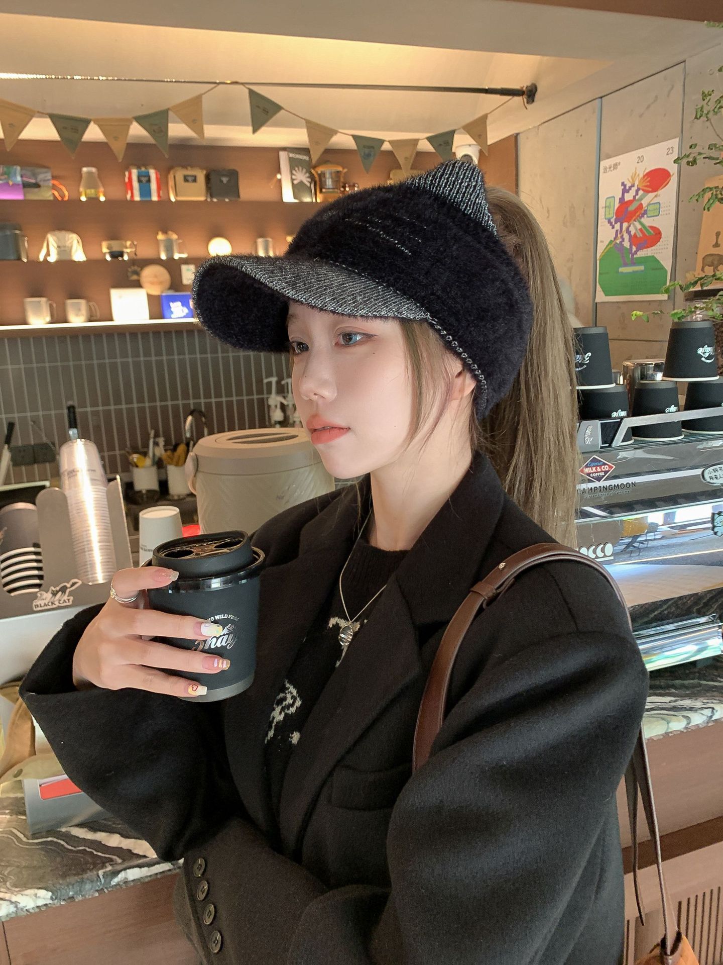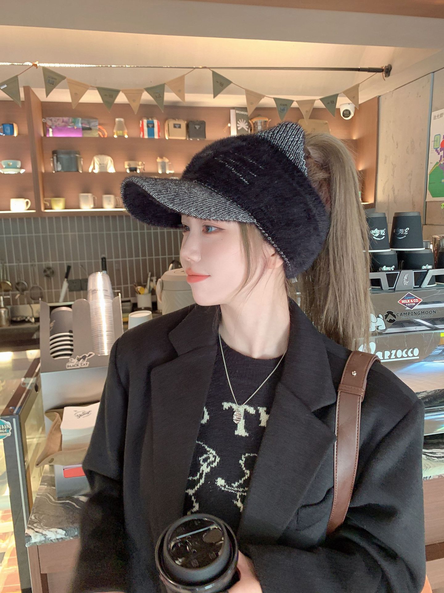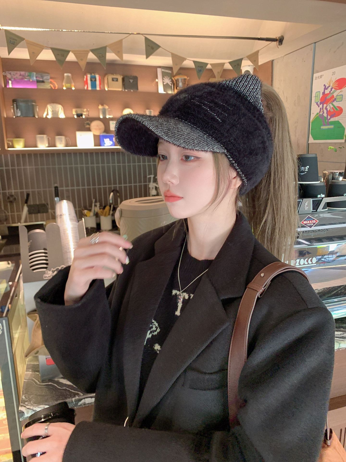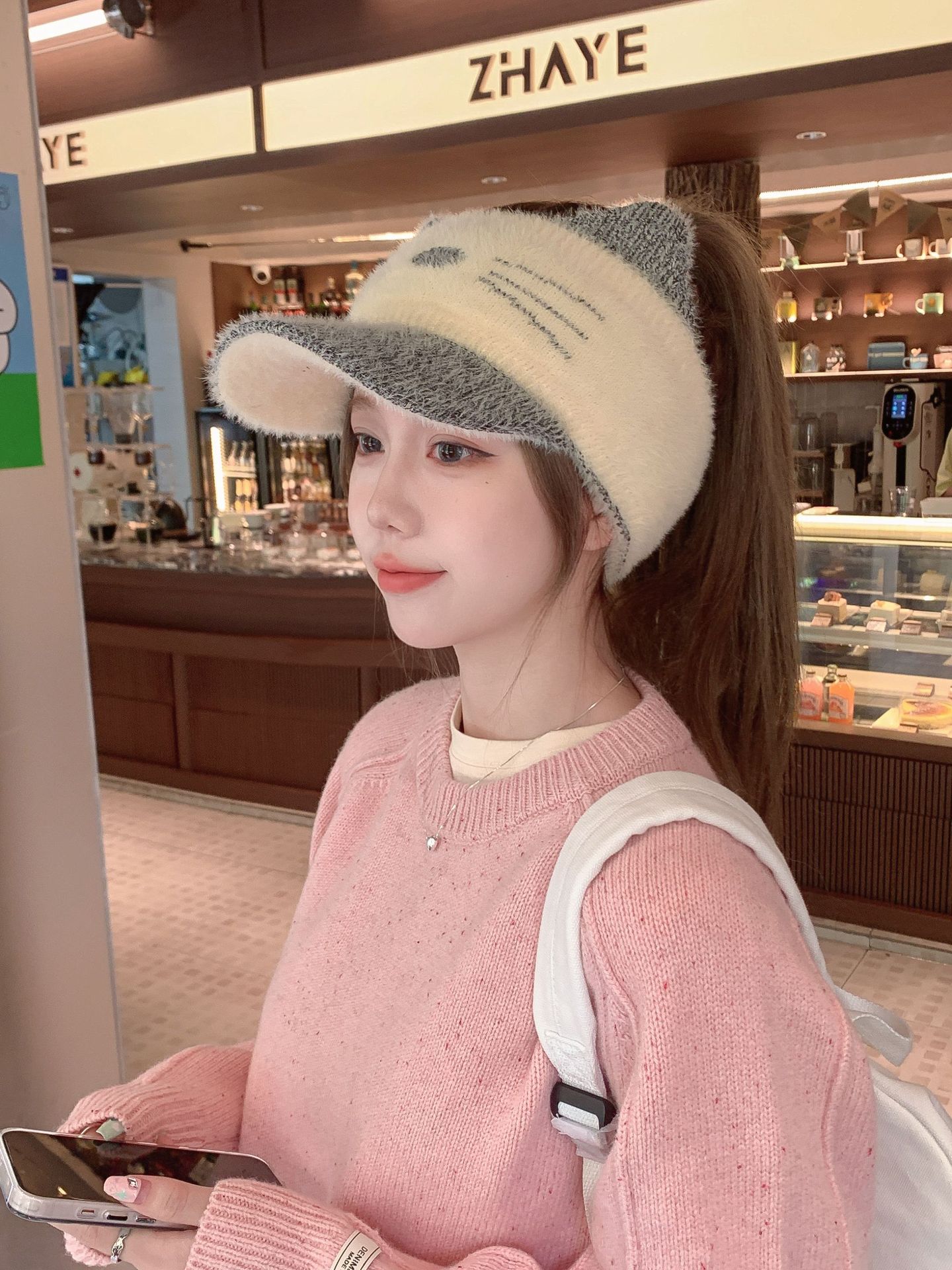 Sombrero Otoño e Invierno Moda para Mujer Cálido con forro polar Tejido Béisbol Mujer Lengua de Pato Lana Gorra Vacía Invierno Cara Pequeña