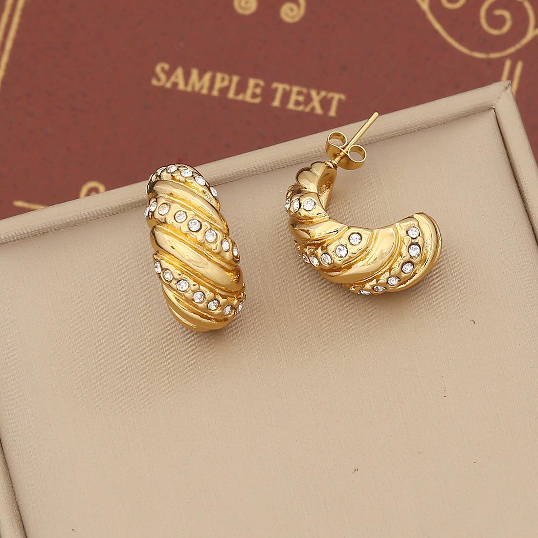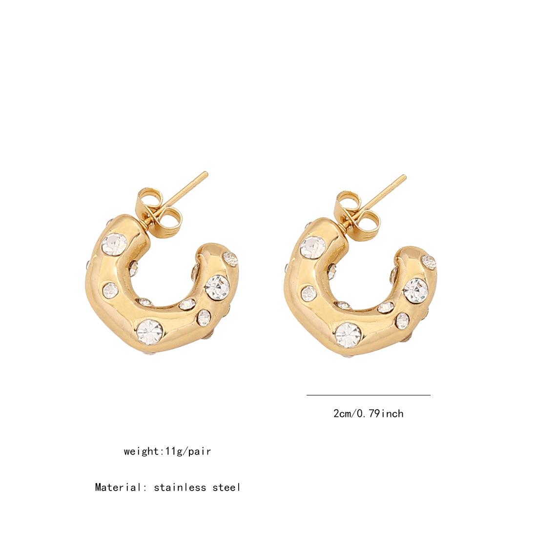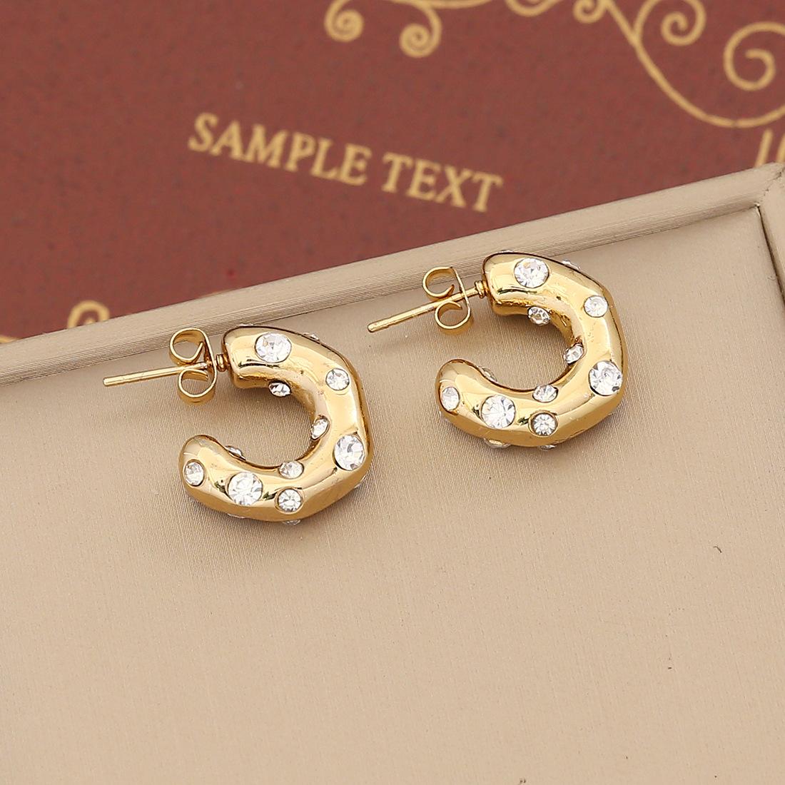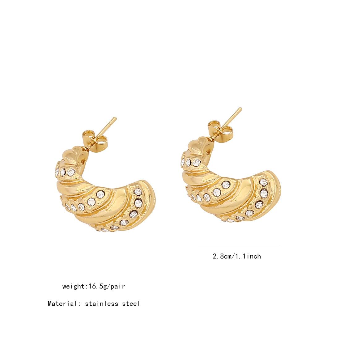 [Bingmeng] Pendientes de lazo de diamantes con forma de C, de acero inoxidable, con un toque de diamante, pendientes de momento cruzado E534