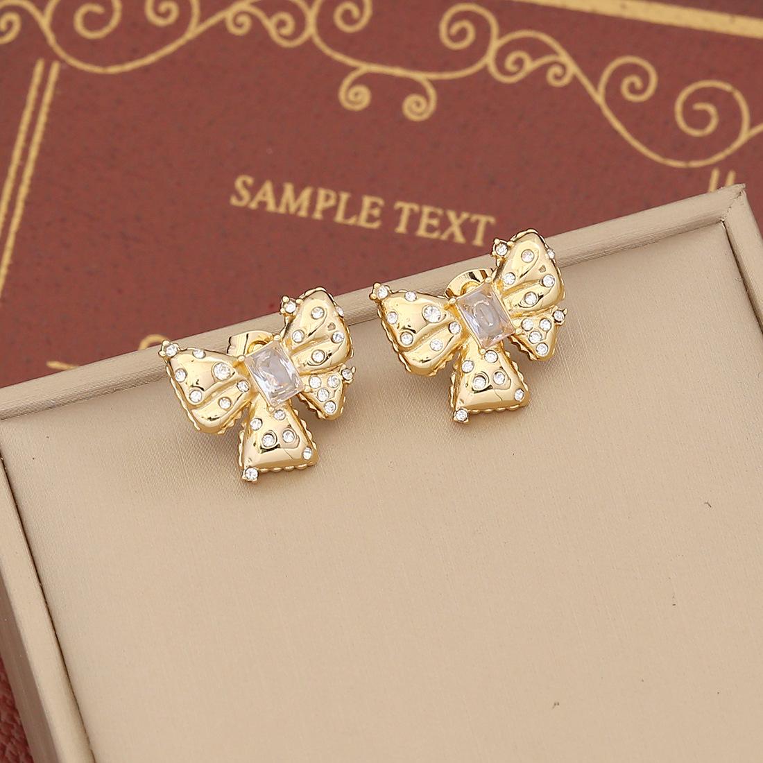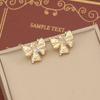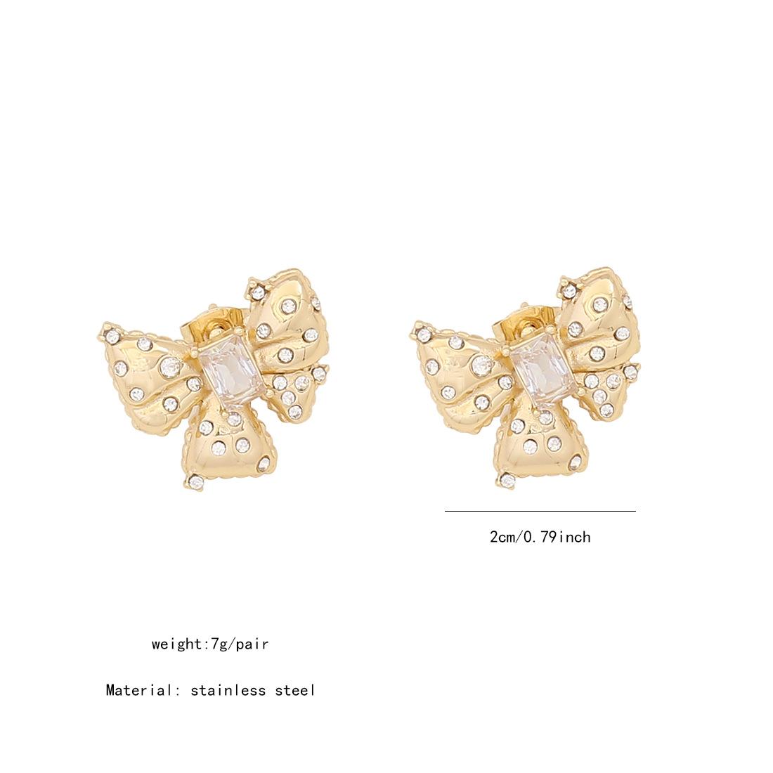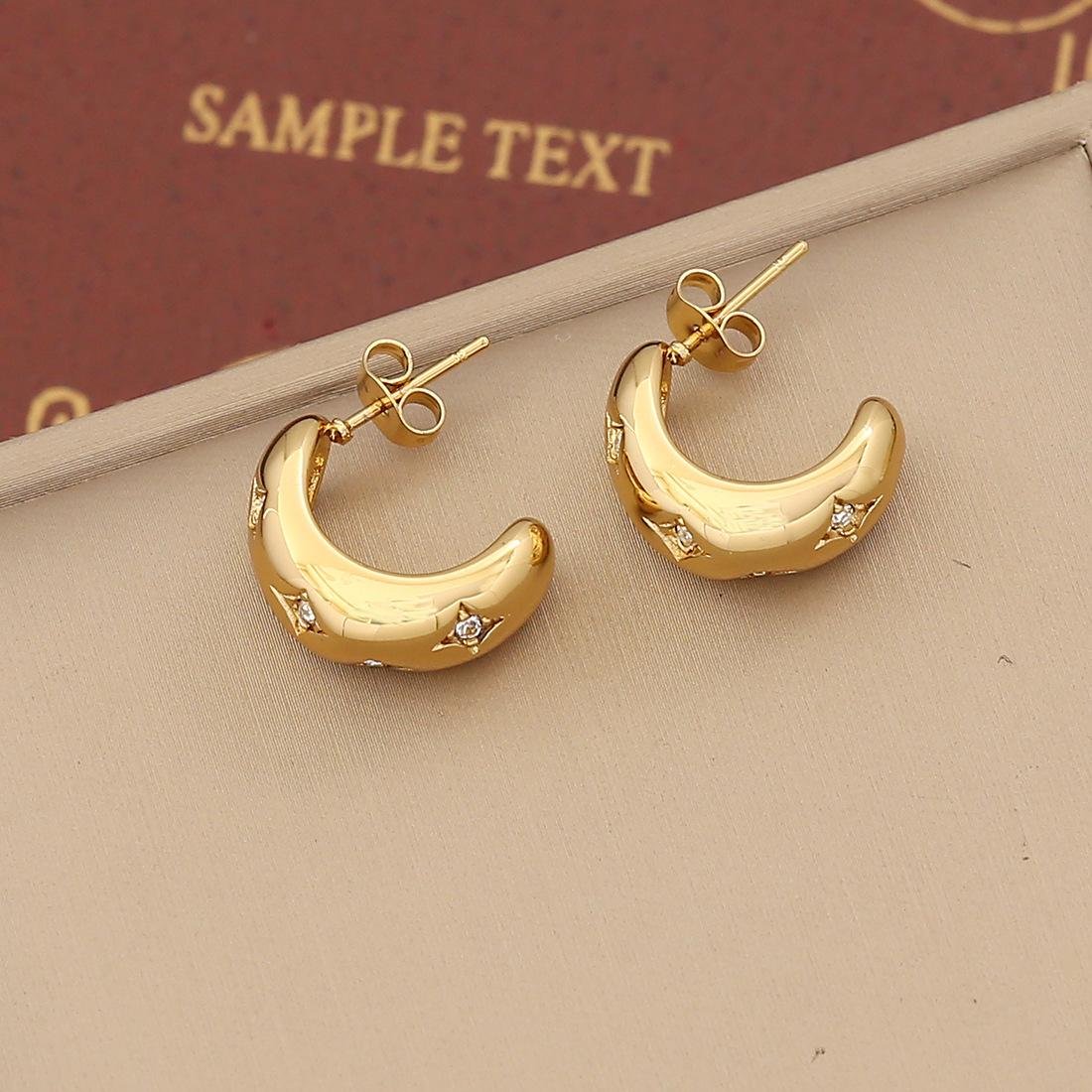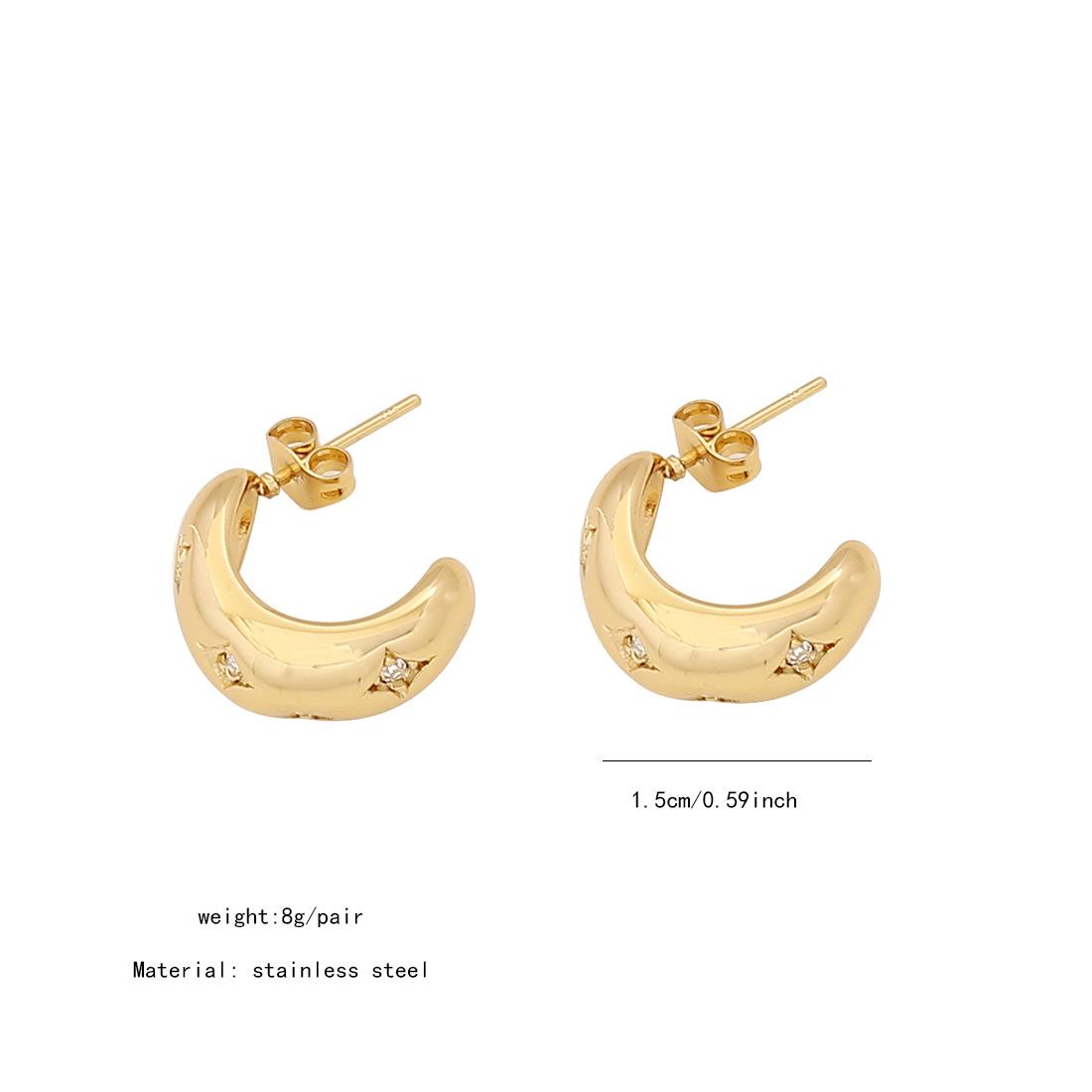 [Bingmeng] Pendientes de lazo de diamantes con forma de C, de acero inoxidable, con un toque de diamante, pendientes de momento cruzado E534