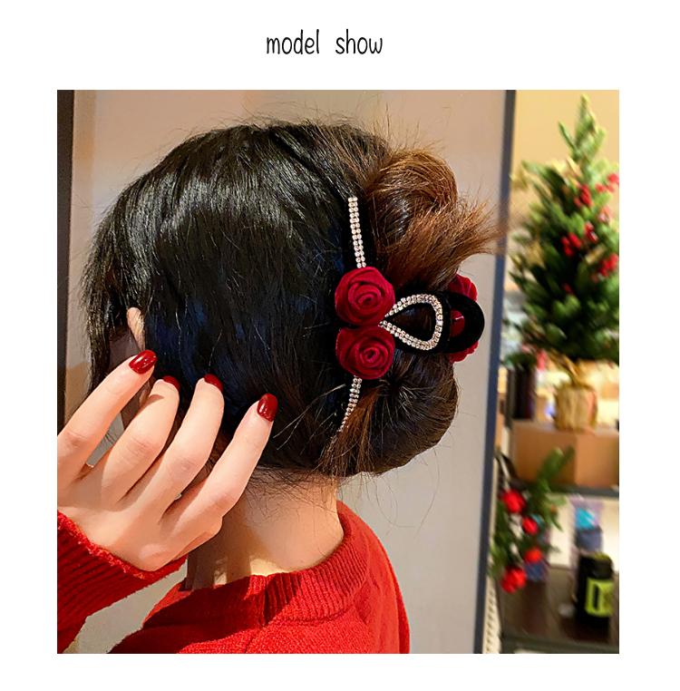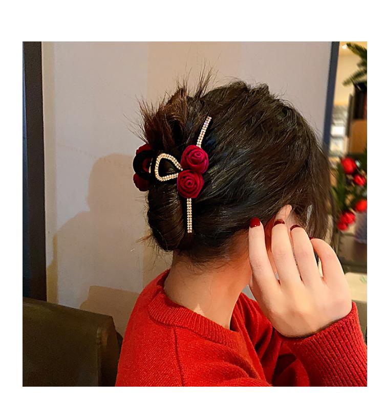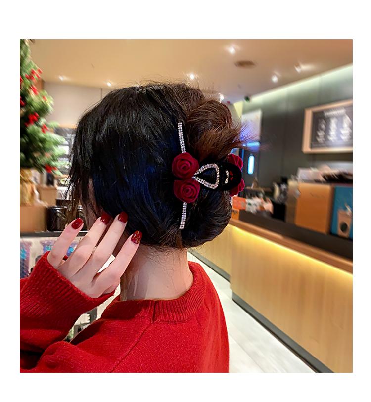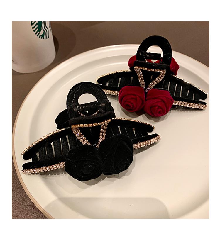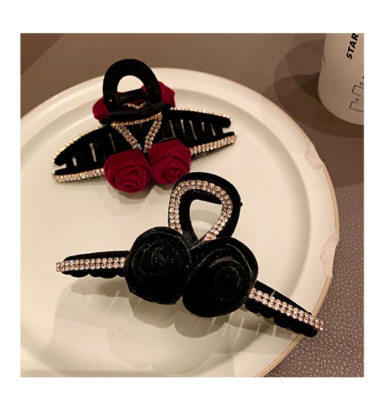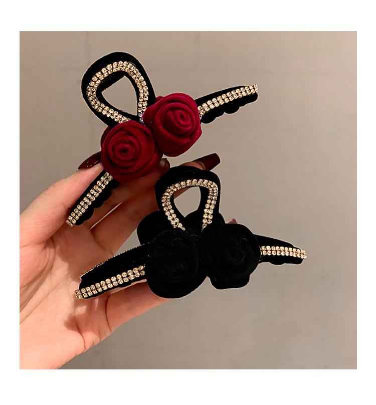 Horquilla Grande Rosa de Terciopelo para Mujer Elegante Clip para el Cabello con Disco para la Parte Trasera de la Cabeza Otoño e Invierno Nueva Horquilla Clip Tiburón