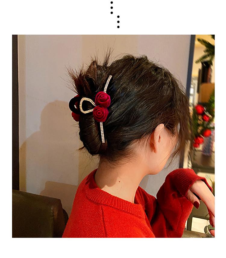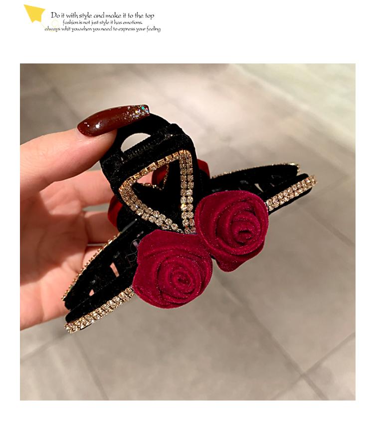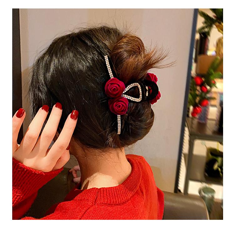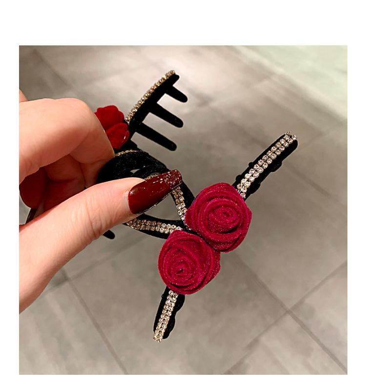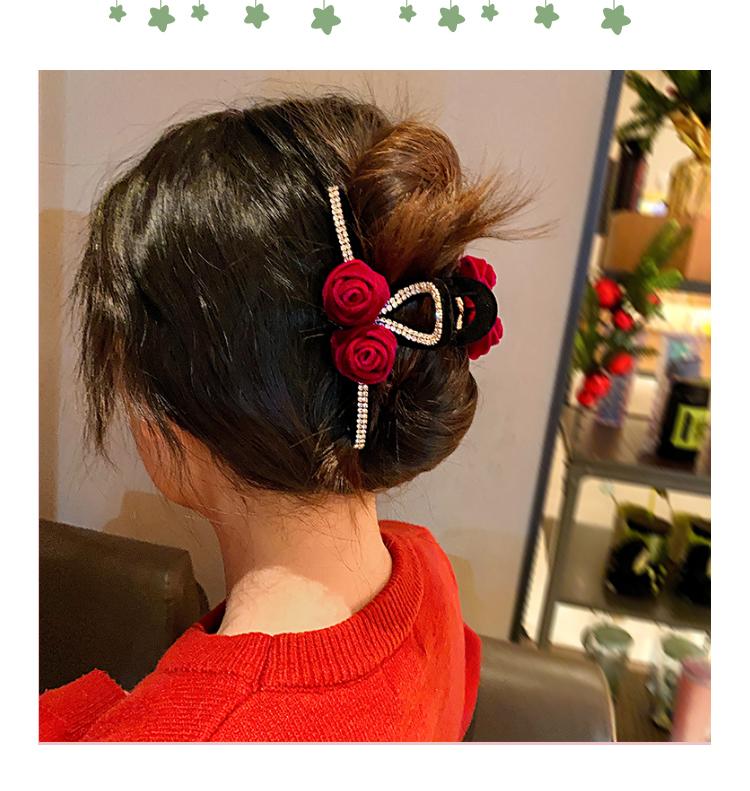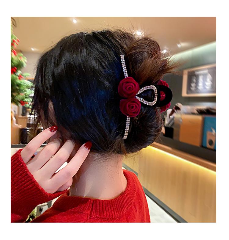 Horquilla Grande Rosa de Terciopelo para Mujer Elegante Clip para el Cabello con Disco para la Parte Trasera de la Cabeza Otoño e Invierno Nueva Horquilla Clip Tiburón