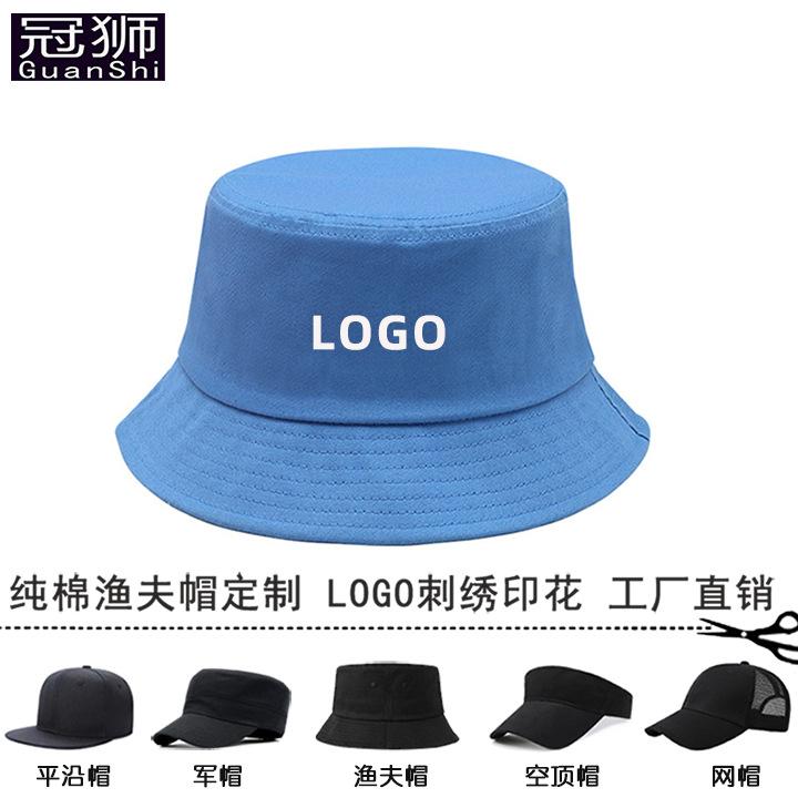 Sombrero de pescador con logotipo bordado, estampado, de moda, protector solar, de algodón, para hombre y mujer, venta al por mayor