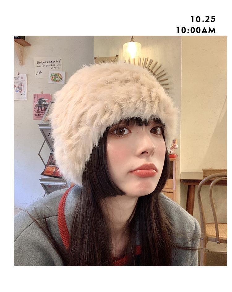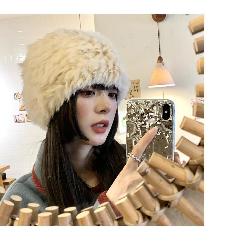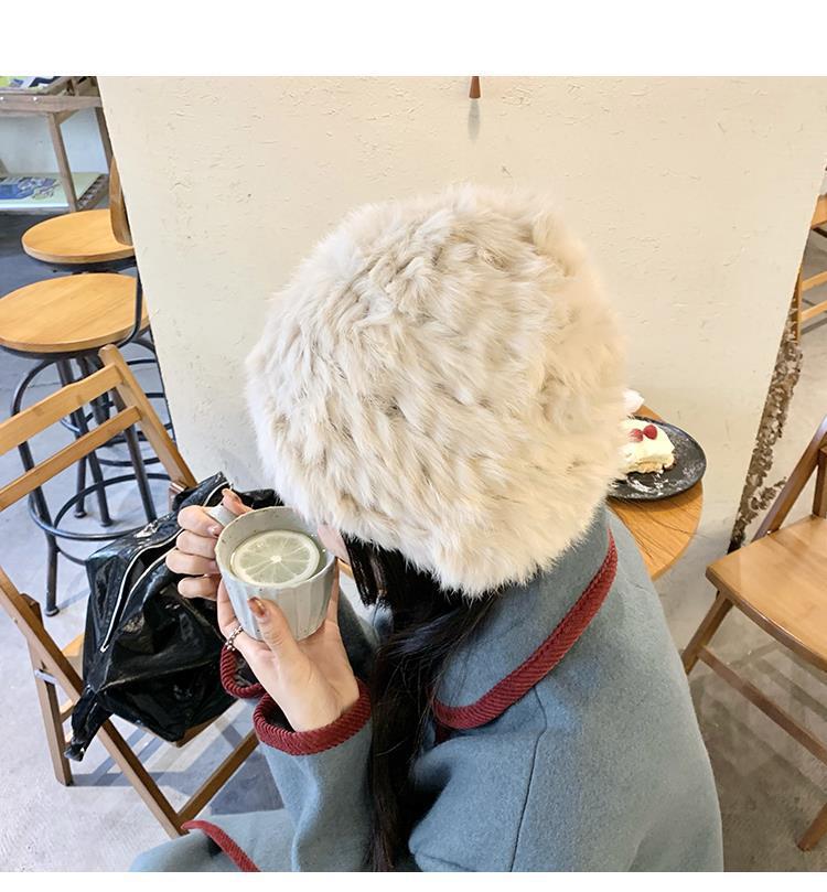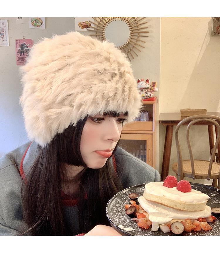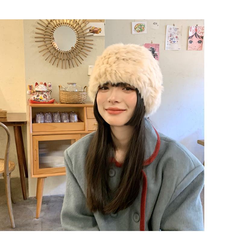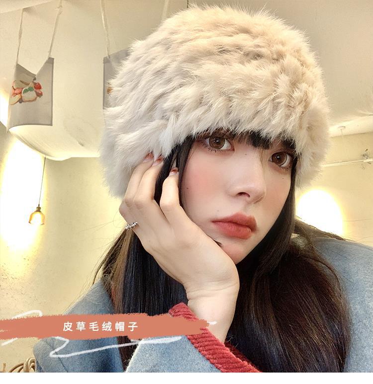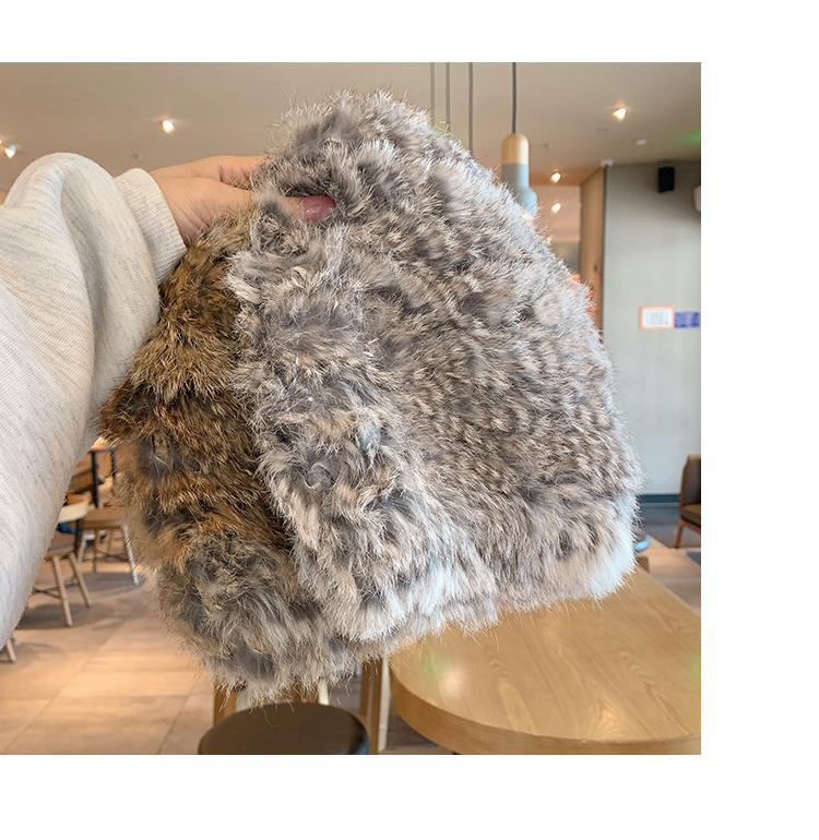 Gorro de lana Baotou de punto de una pieza, grueso y cálido, de peluche de conejo auténtico, para niños, resistente al frío y a juego.