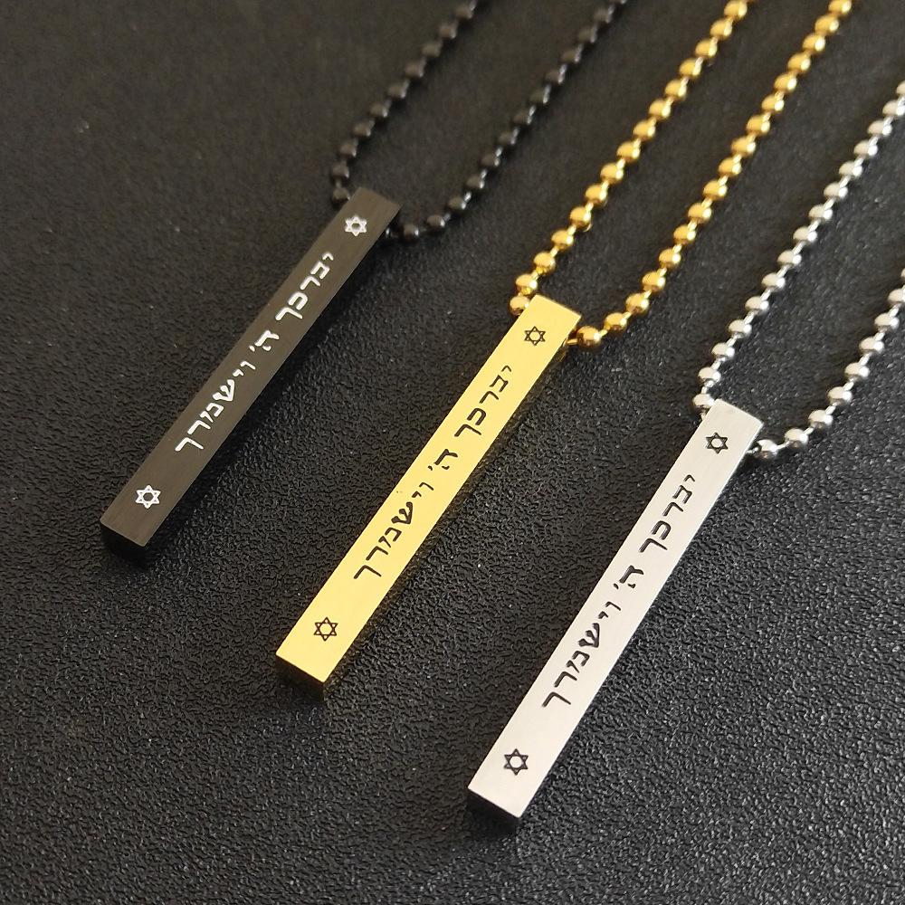 Venta caliente transfronteriza: collar de acero inoxidable con estrella de seis puntas, columna cuadrada, estrella de David, Israel, accesorios vintage de acero de titanio para hombre, venta al por mayor