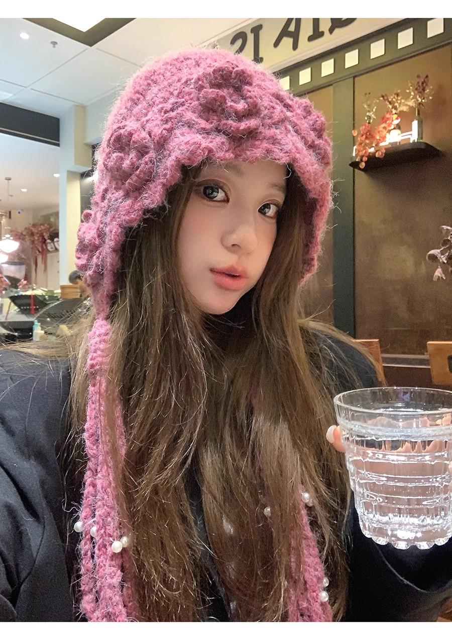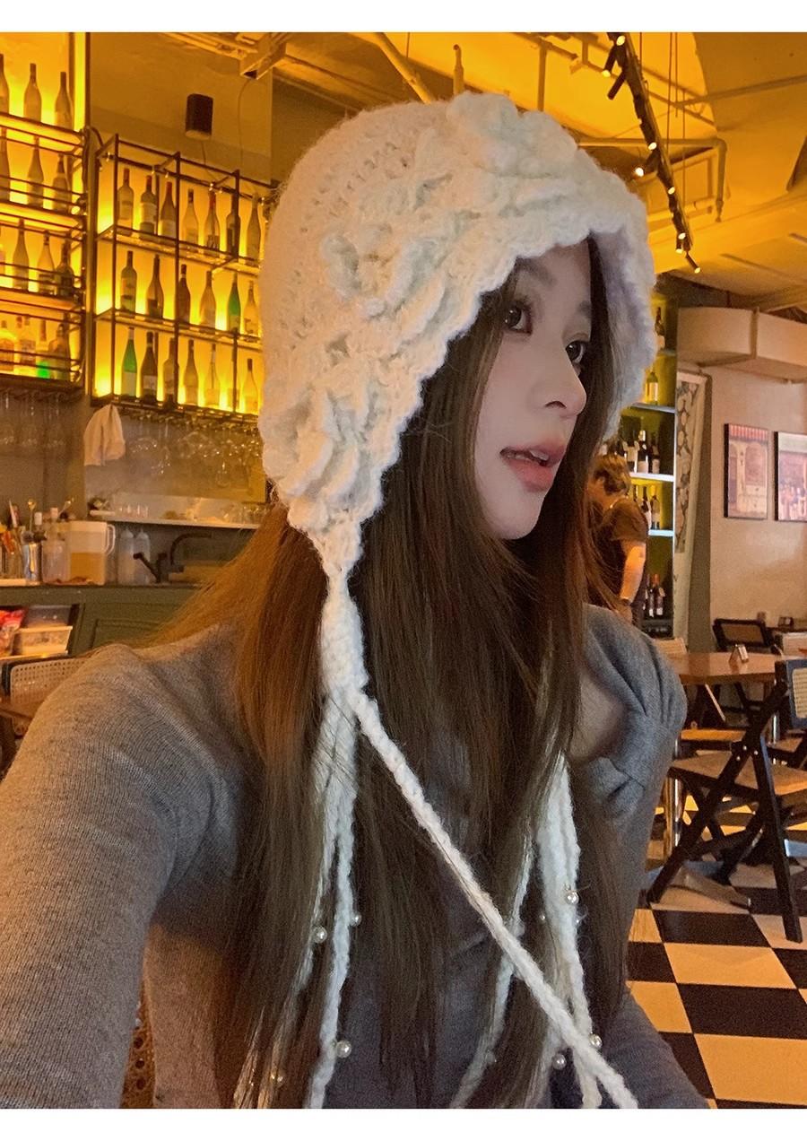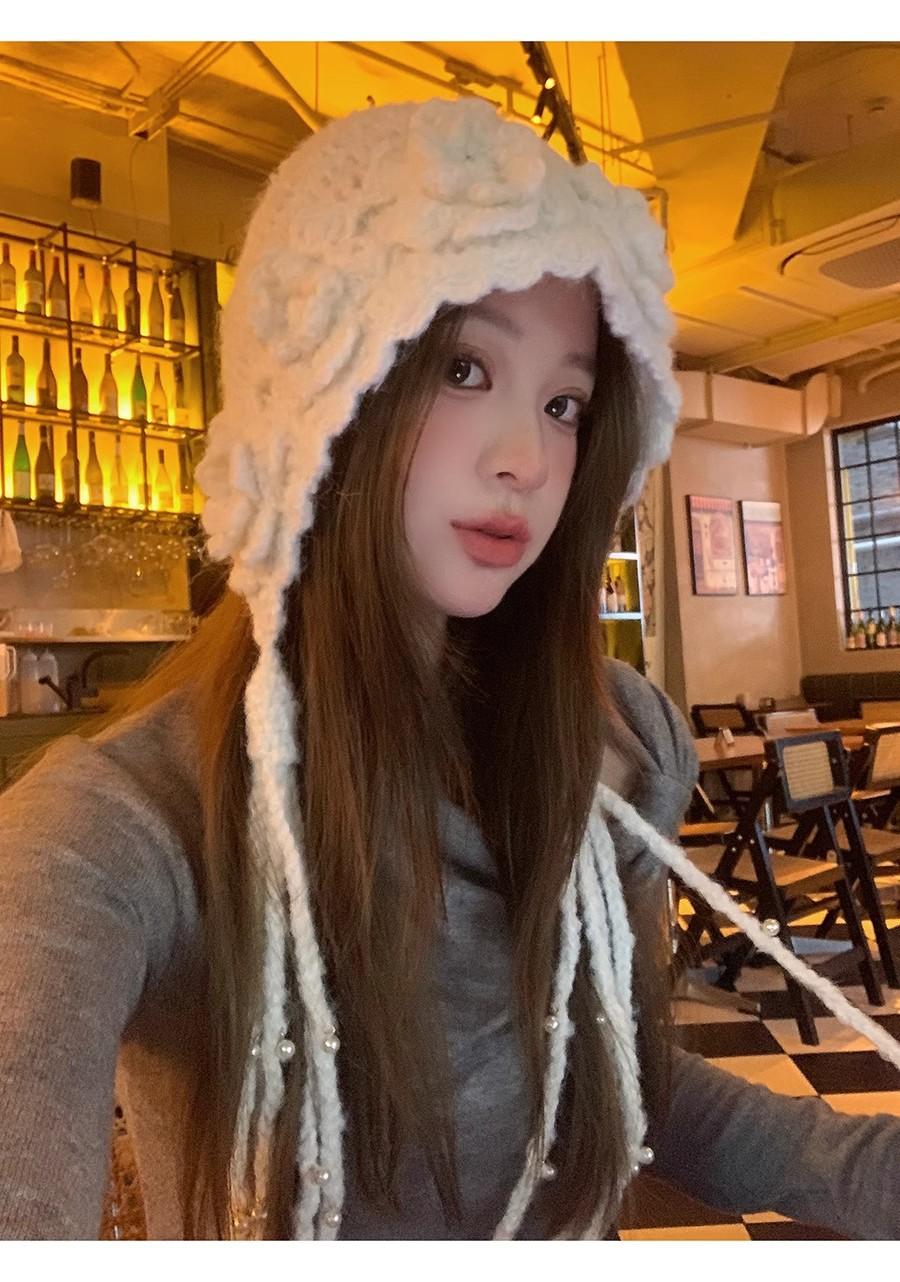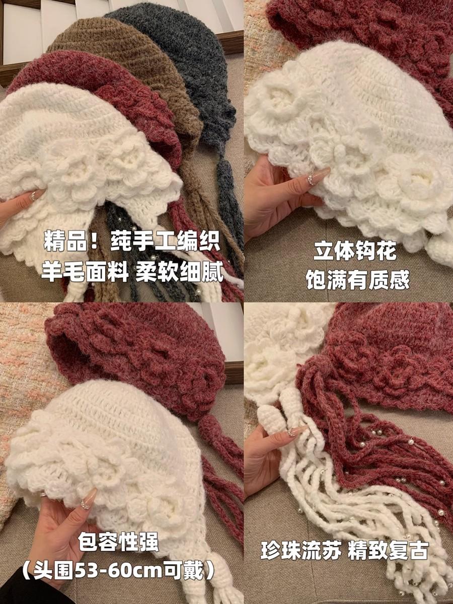 Sombrero Hecho a Mano Blancanieves 100 Sombrero de Lana para Mujer Invierno 2024 Nuevo Borla de Lana Sombrero de Lana Correa Protección para las Orejas Sombrero Lei Feng