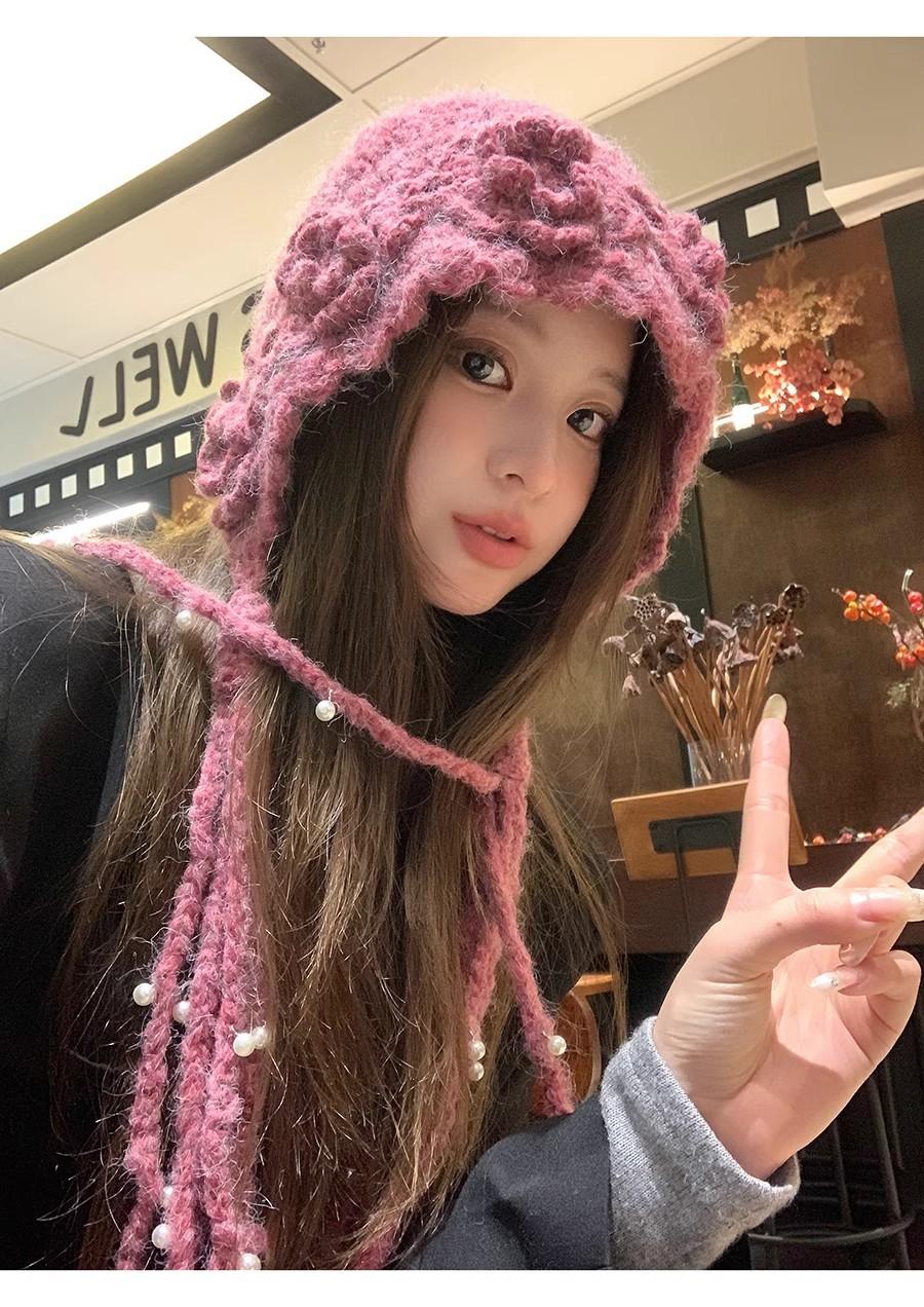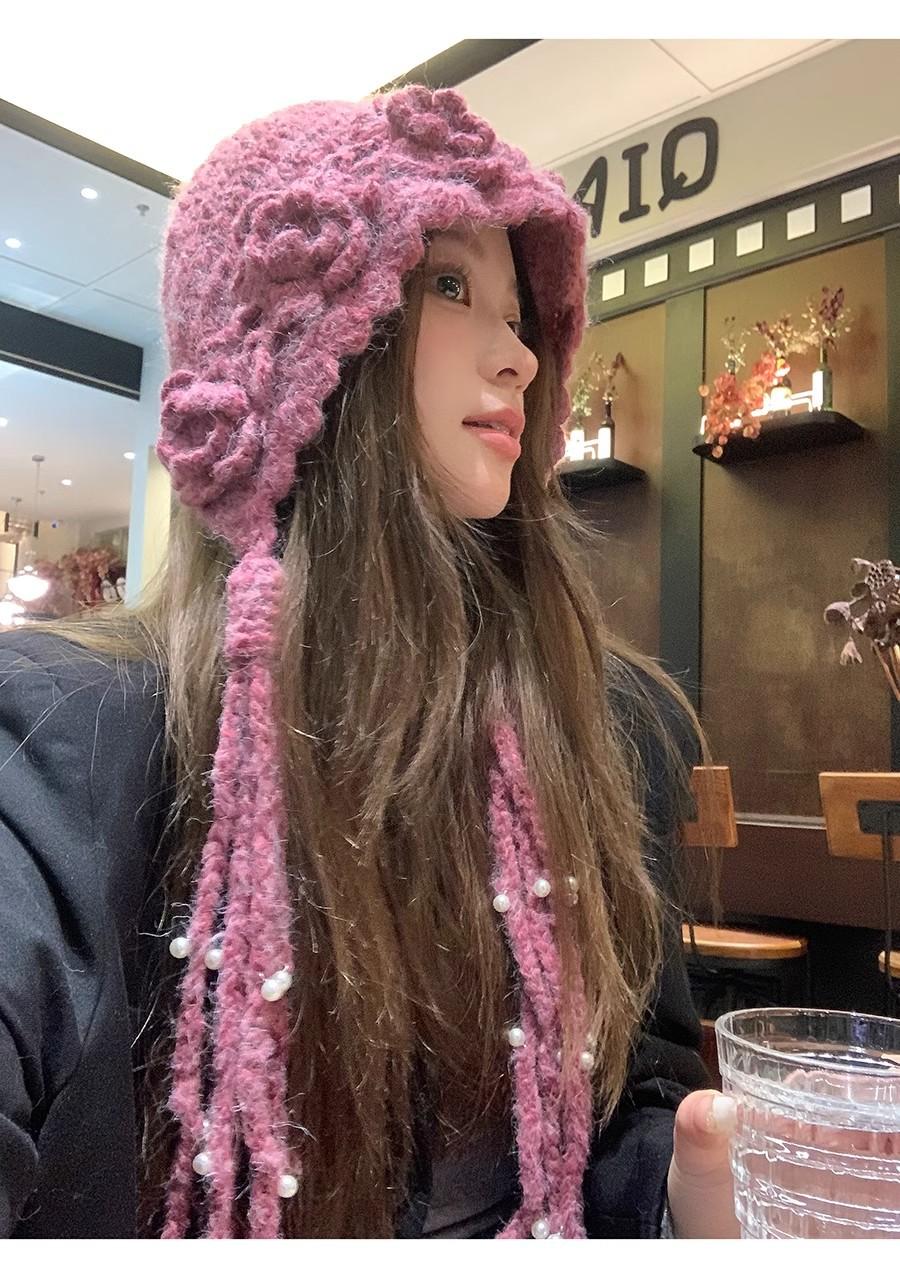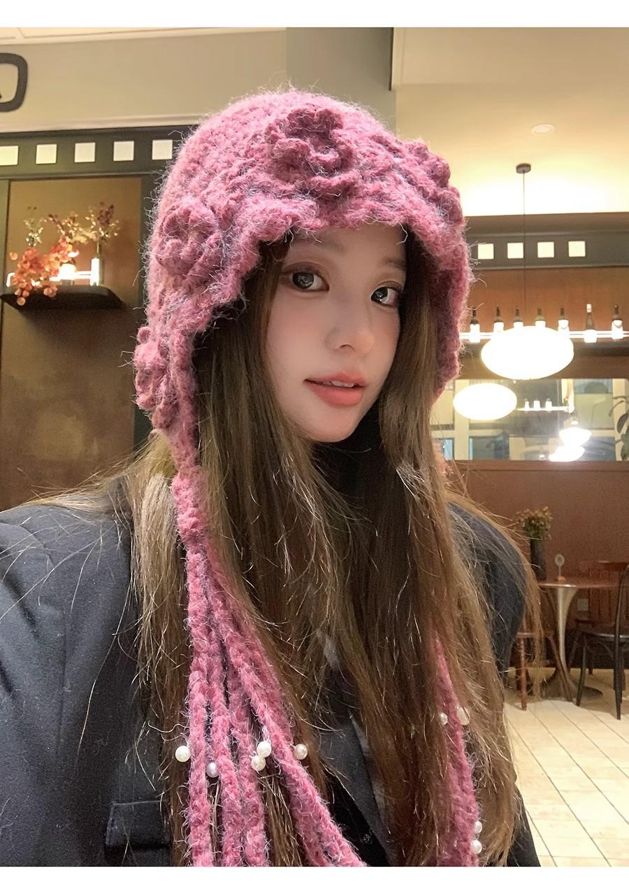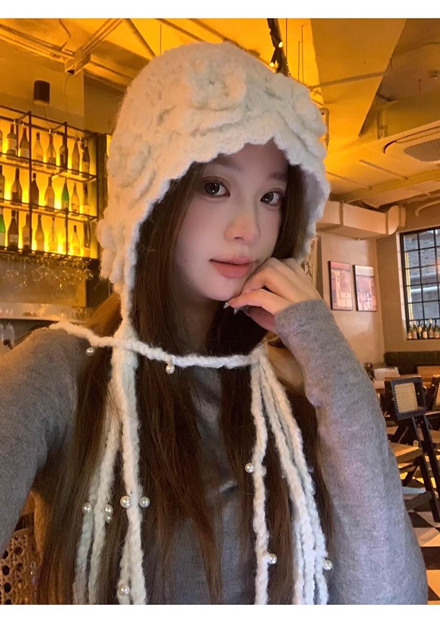 Sombrero Hecho a Mano Blancanieves 100 Sombrero de Lana para Mujer Invierno 2024 Nuevo Borla de Lana Sombrero de Lana Correa Protección para las Orejas Sombrero Lei Feng