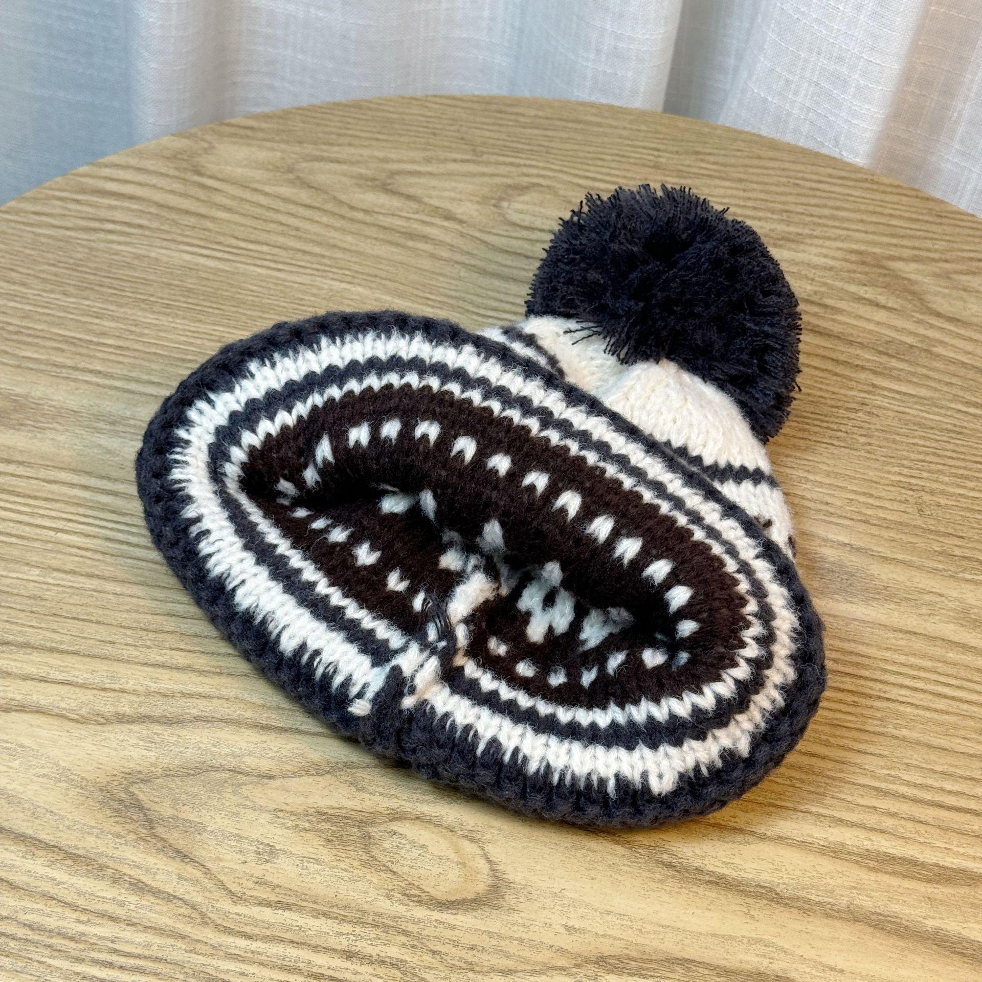 Gorro de punto coreano resistente al frío con bola de pelo que combina con todo, gorro de lana jacquard vintage para mujer, gorro grueso y cálido con orejas para otoño e invierno.