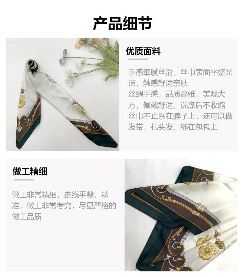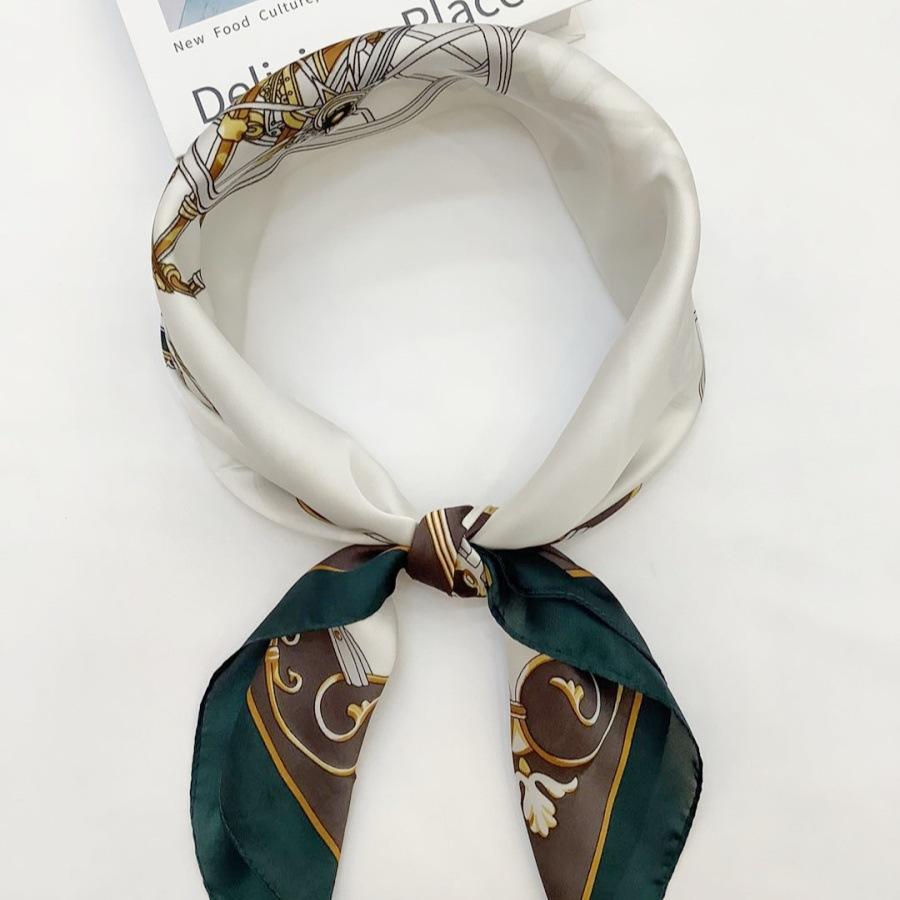 Bufanda de Seda Pequeña Cuadrada Versátil Estampada Simple Nueva de Alta Gama Cinta Elegante Bufanda de Seda Bufanda de Moda de Otoño e Invierno