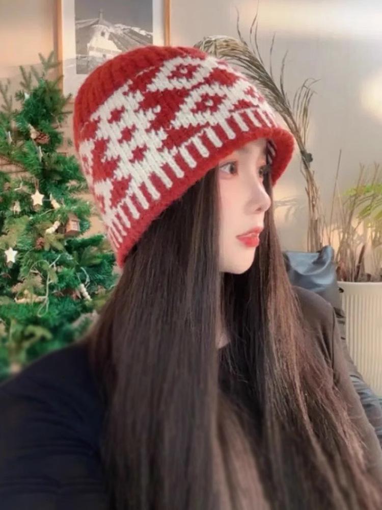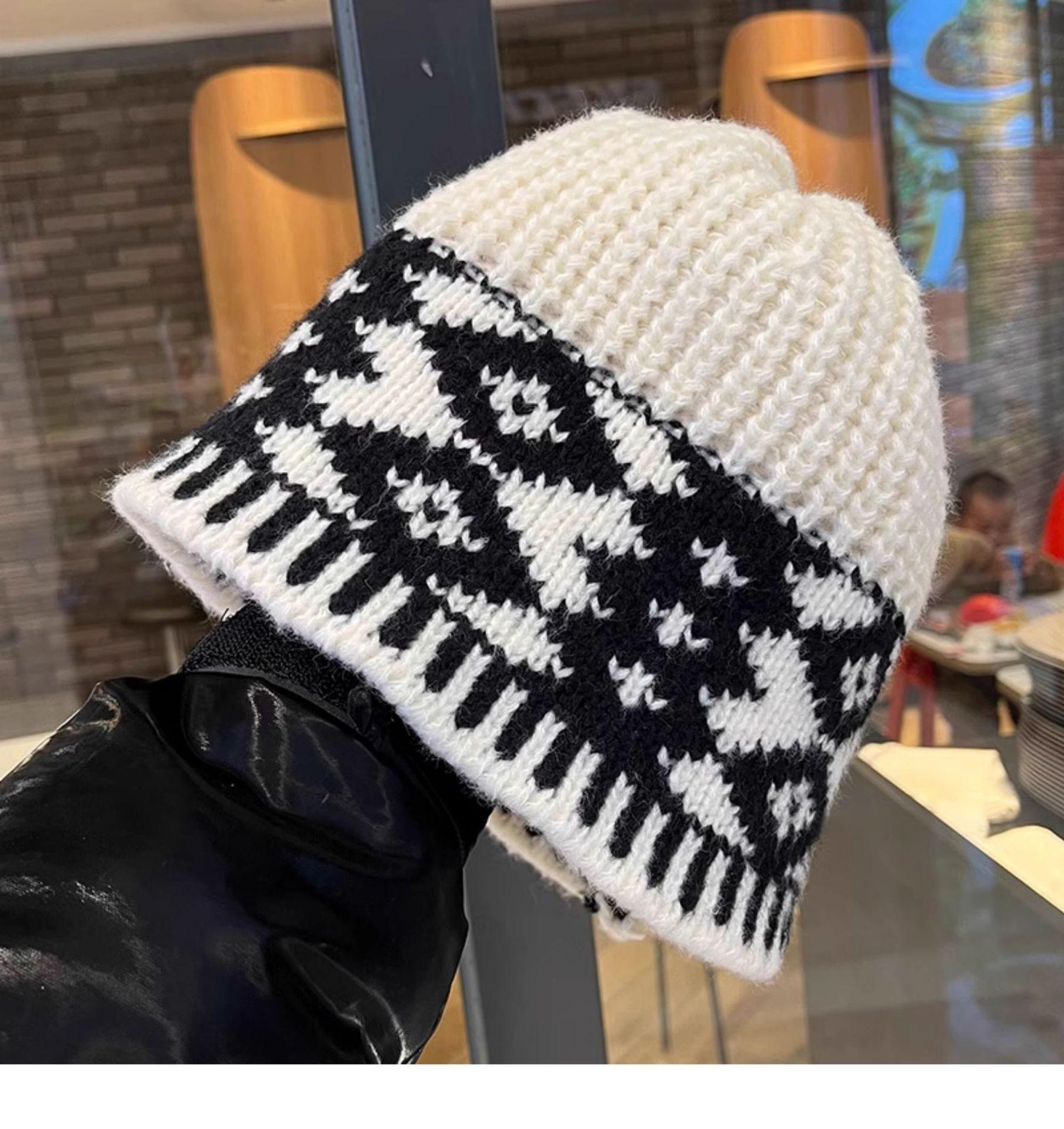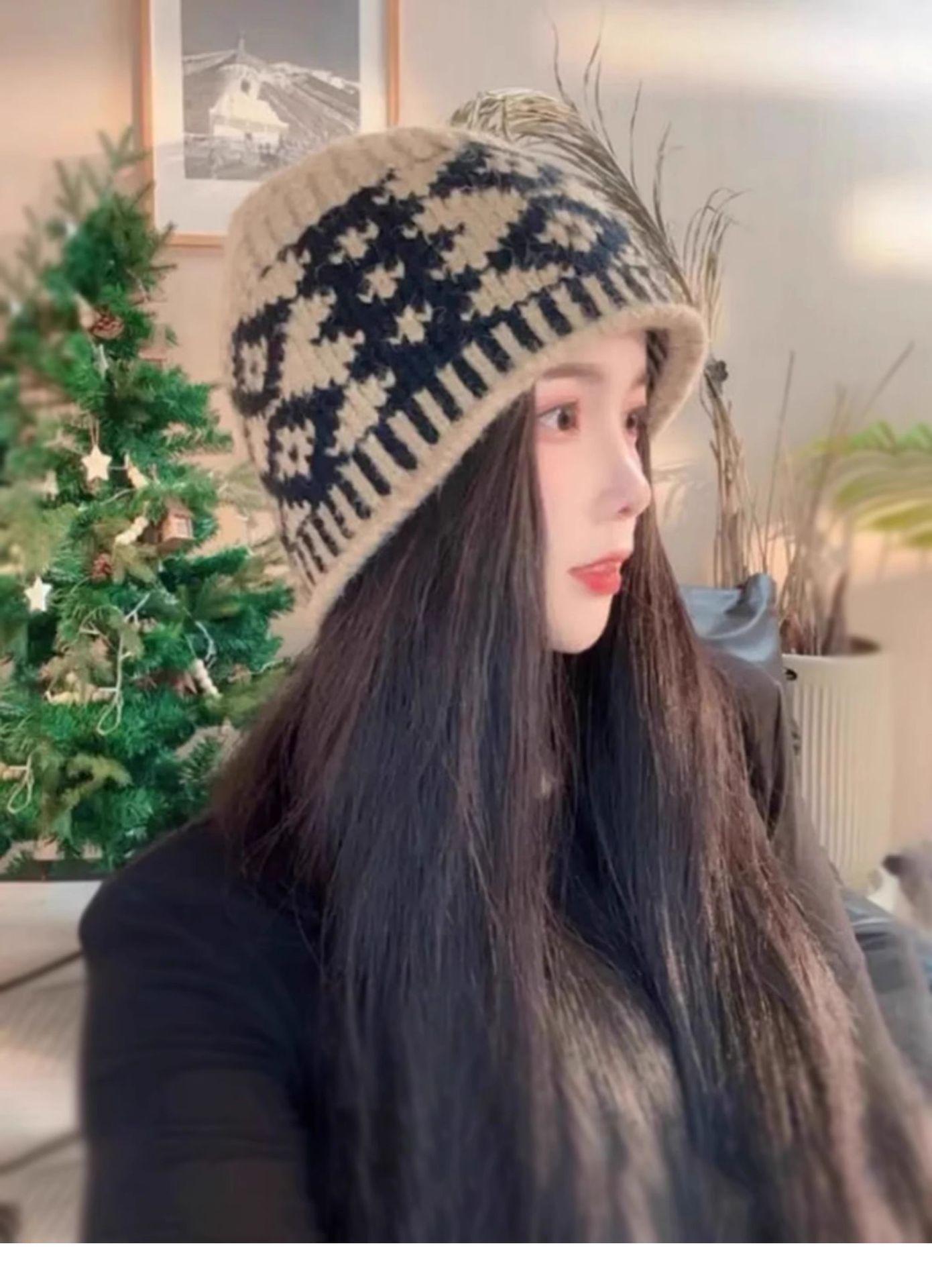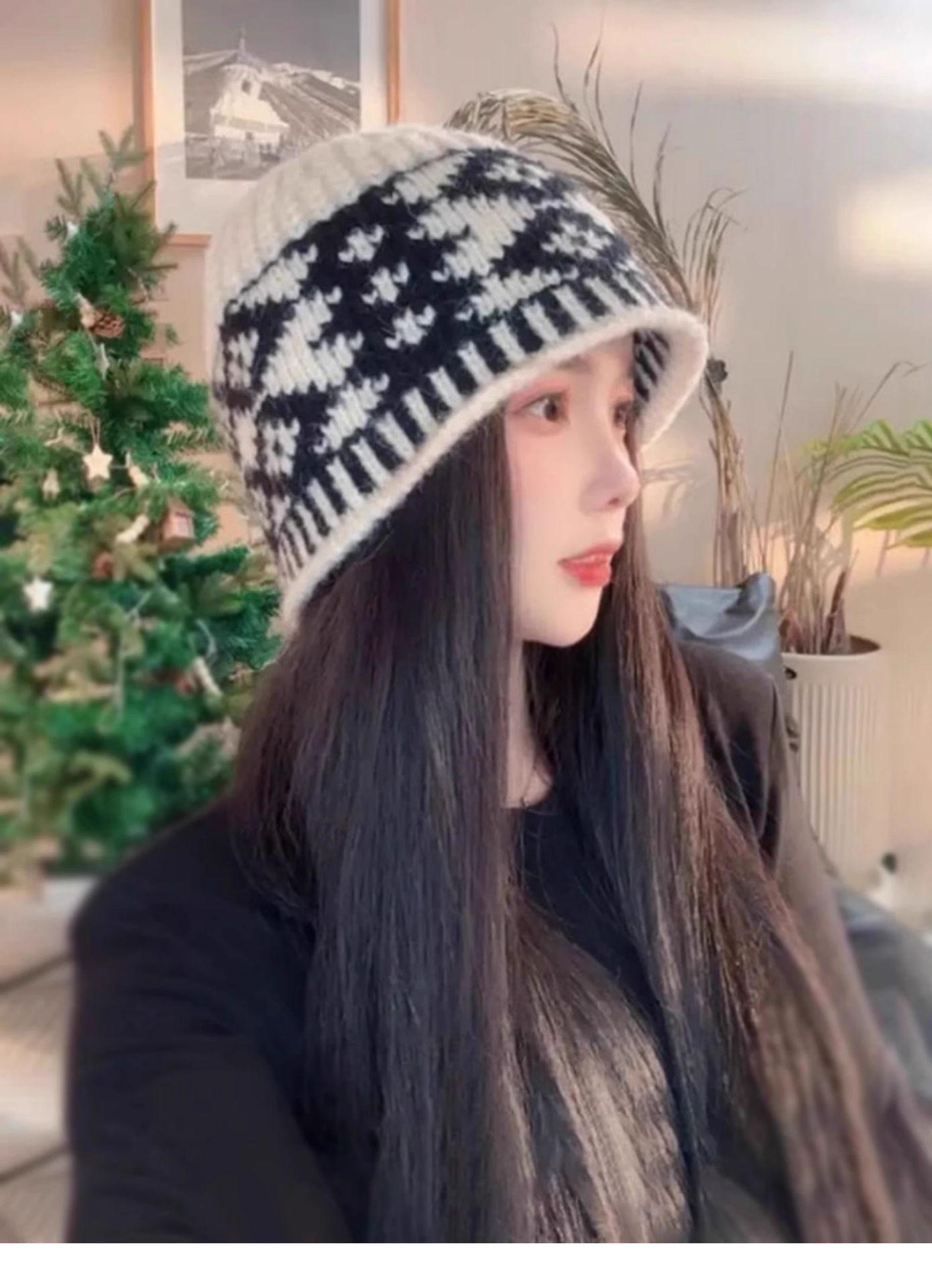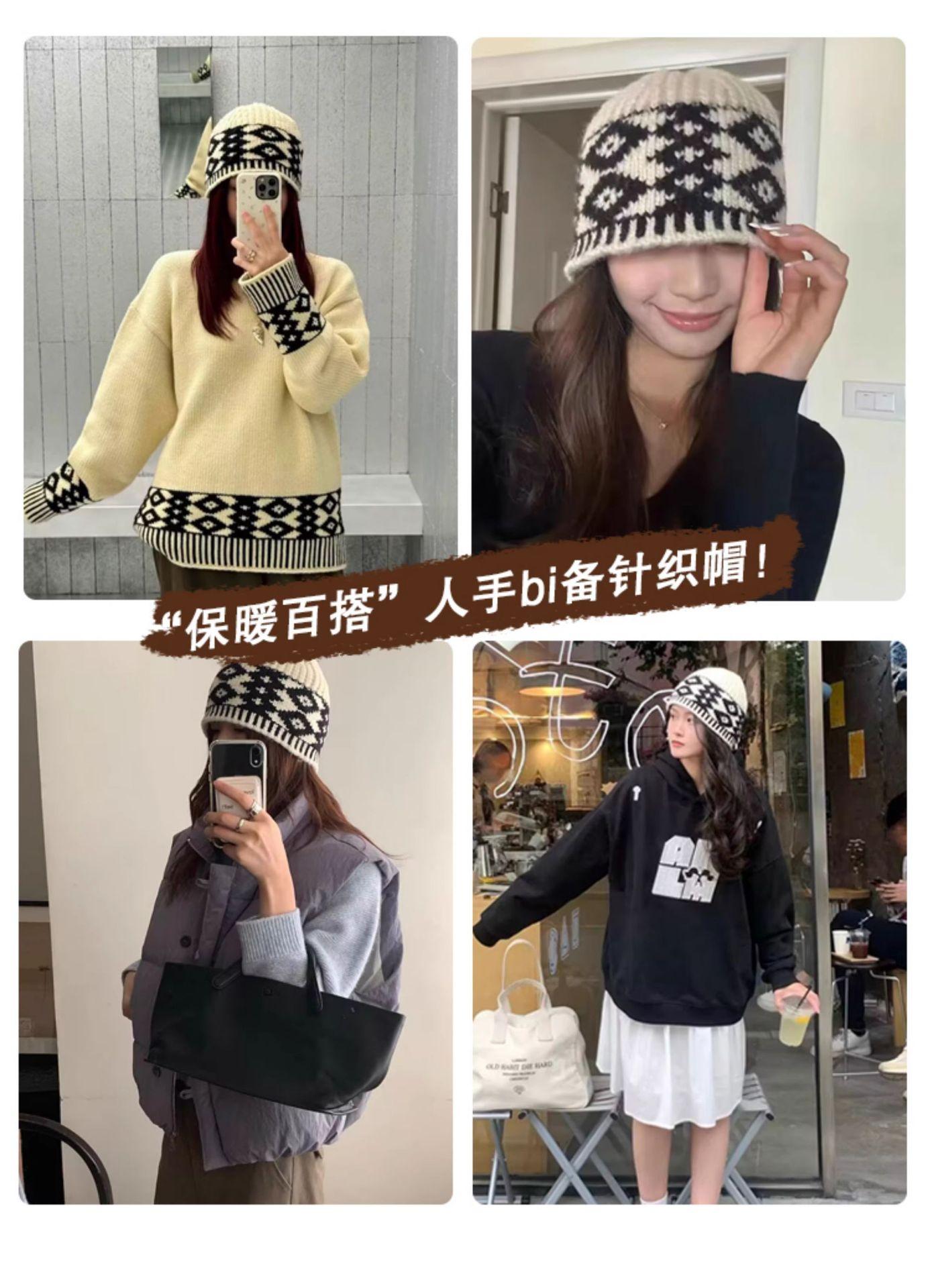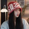 Gorro de lana con cuadros de diamantes vintage para niños, de otoño e invierno, con diseño de nicho, cálido y resistente al frío, Baotou