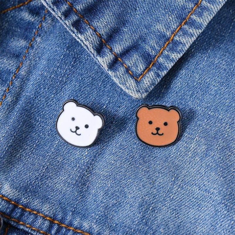 Insignia de novia de pareja de osos, broche con forma de cabeza de oso de dibujos animados japoneses, medalla de animal, accesorios para bolsos y ropa de hombre y mujer
