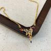 Nuevo collar de mariposa de estilo coreano con incrustaciones de diamantes dorados y cadena de clavícula sencilla para mujer, colgante de lujo ligero y moderno de celebridades de Internet.