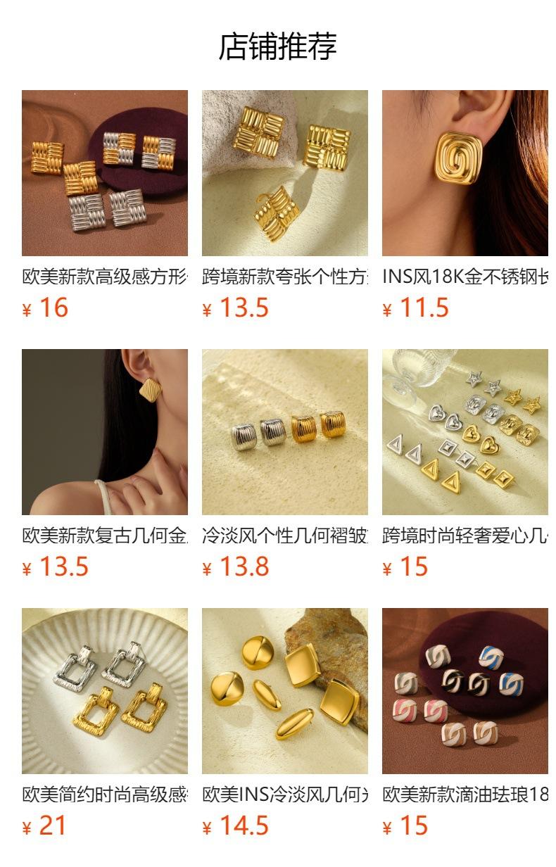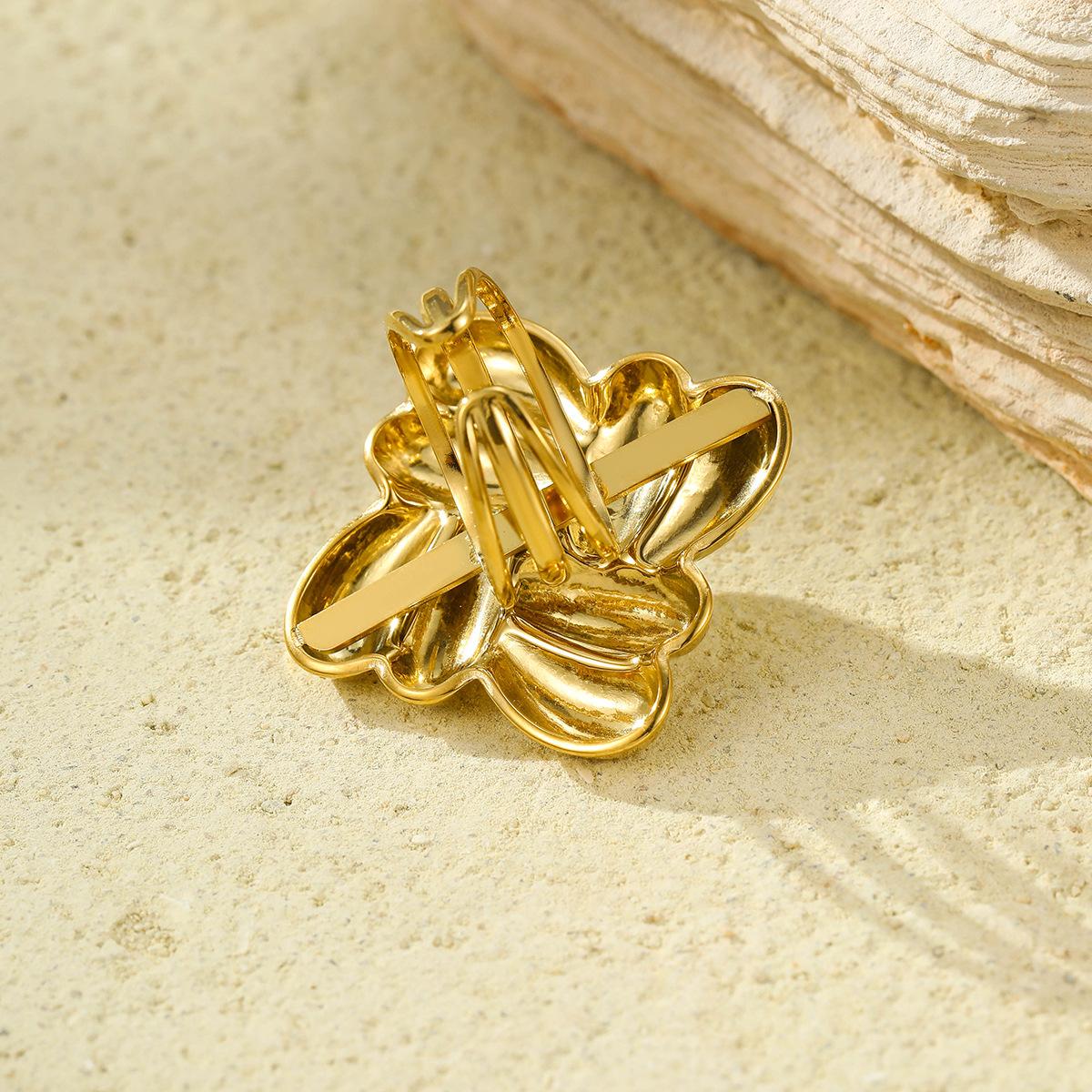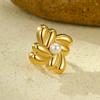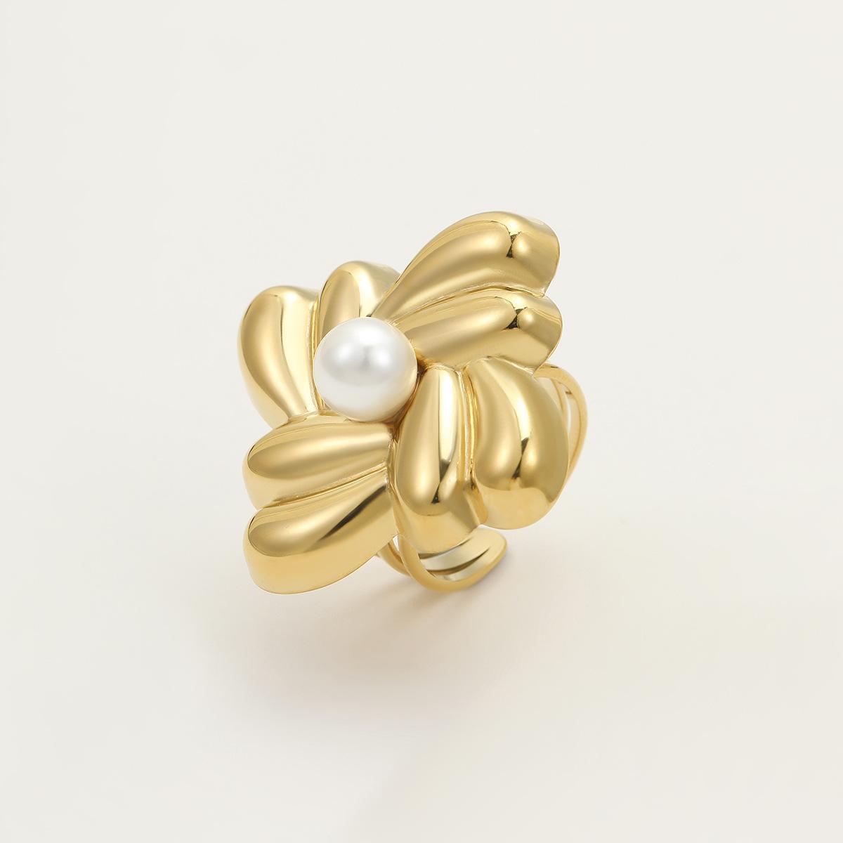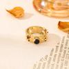 Anillo Nuevo Europeo y Americano Transfronterizo de Acero de Titanio Dorado Cuadrado Geométrico Rosca Anillo de Acero Inoxidable Incrustado con Perlas Joyería para Mujer
