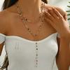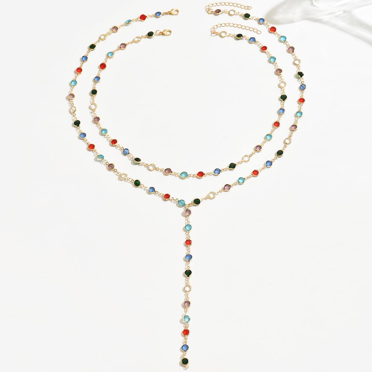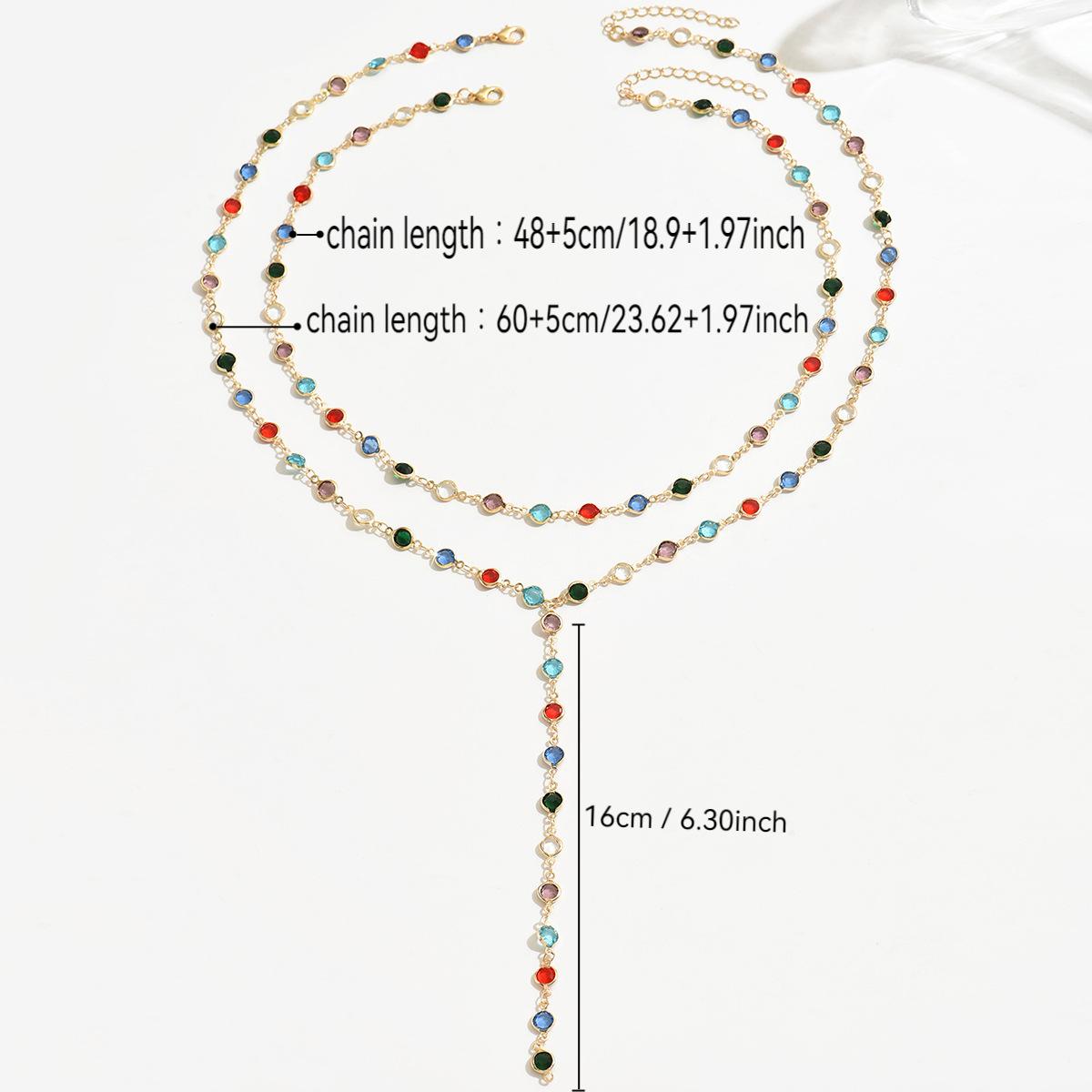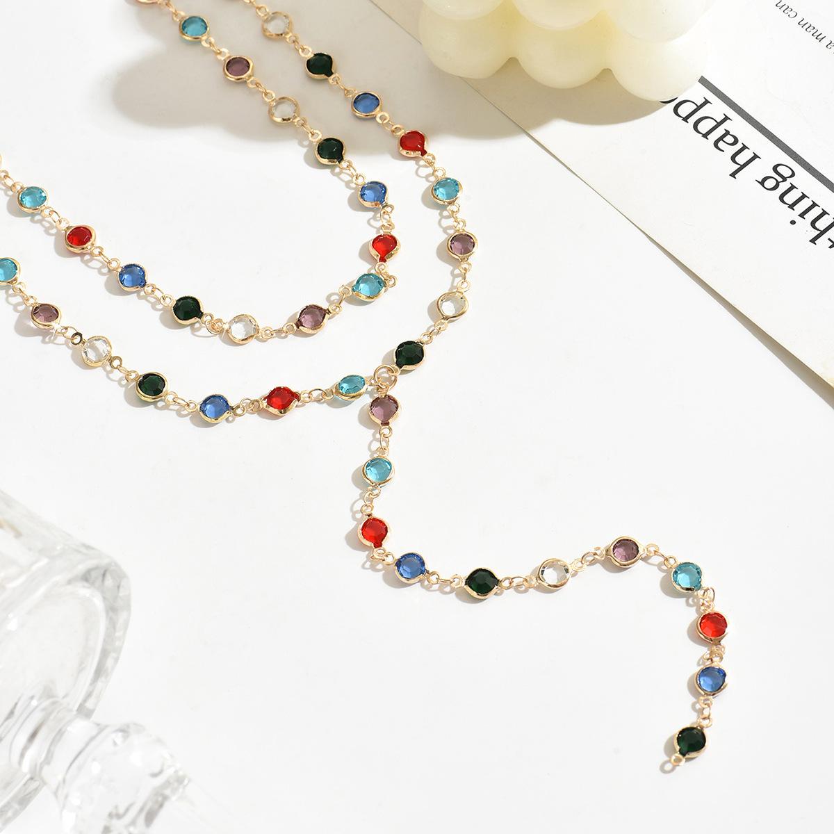 Joyería Transfronteriza Collar de Clavícula de Metal con Cristal Colorido Collar Largo Simple que No se Desvanece para Mujer (Dos Cadenas)