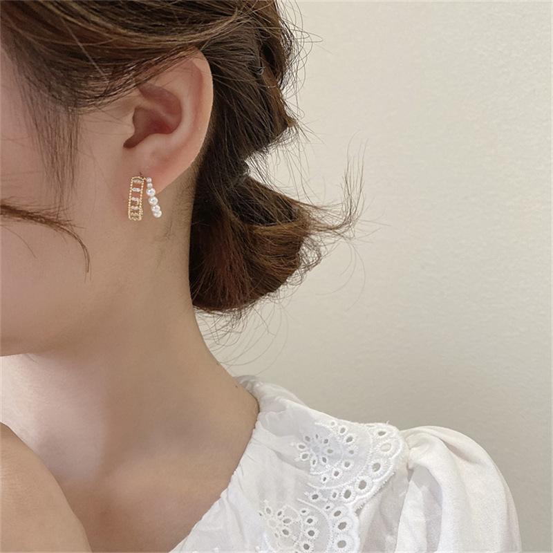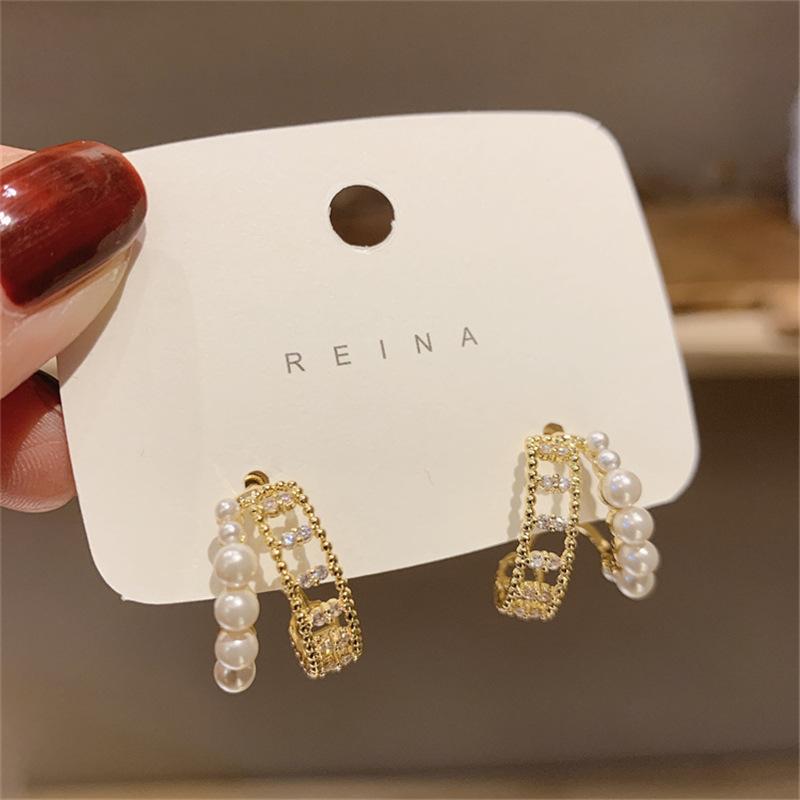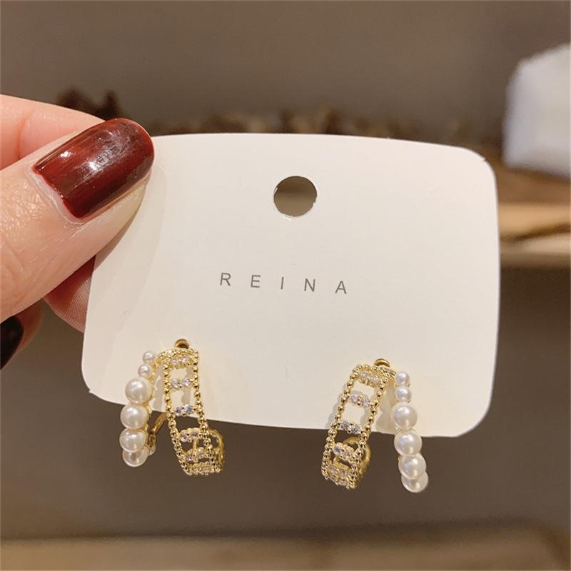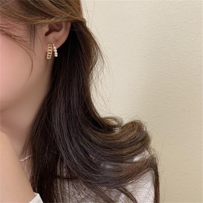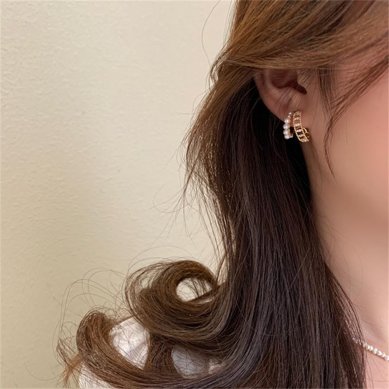 Aretes Franceses de Doble Círculo con Perlas para Mujer Diseño Nicho Aretes de Alta Gama 2025 Nuevos Aretes Versátiles Elegantes de Moda