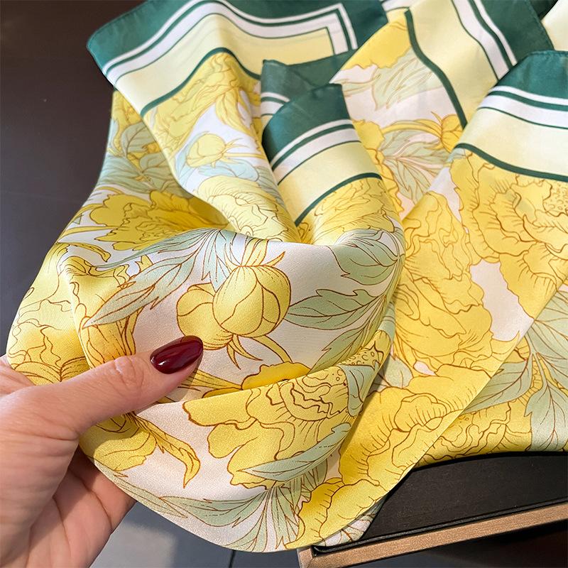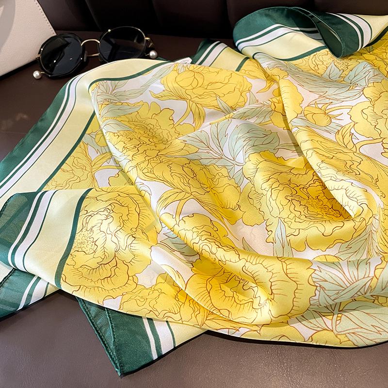 Bufanda de seda artificial de estilo coreano para otoño e invierno, nueva moda, bufanda estampada para mujer, bufanda profesional, bufanda, bufanda para el cabello