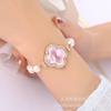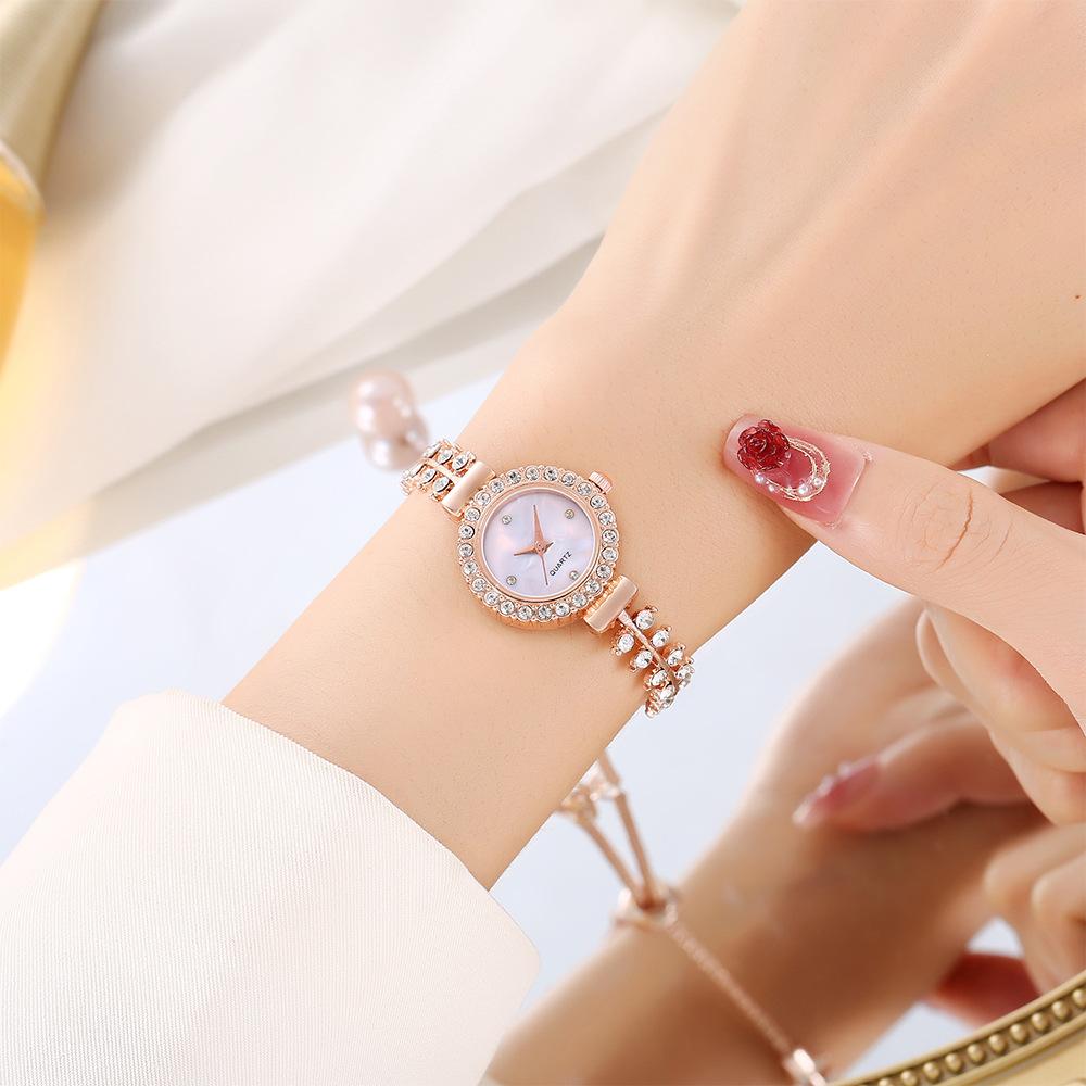 Reloj de dama con incrustaciones de diamantes con patrón de cuadros transfronterizo versión coreana de trébol de cuatro hojas estudiantes femeninas reloj pulsera extraíble comercio al por mayor