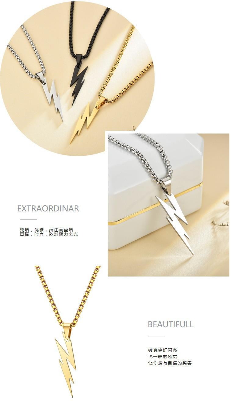 Nuevo colgante de rayo de acero de titanio transfronterizo europeo y americano para hombre, marca de moda con personalidad de hip hop, collar de acero inoxidable sin decoloración, joyería