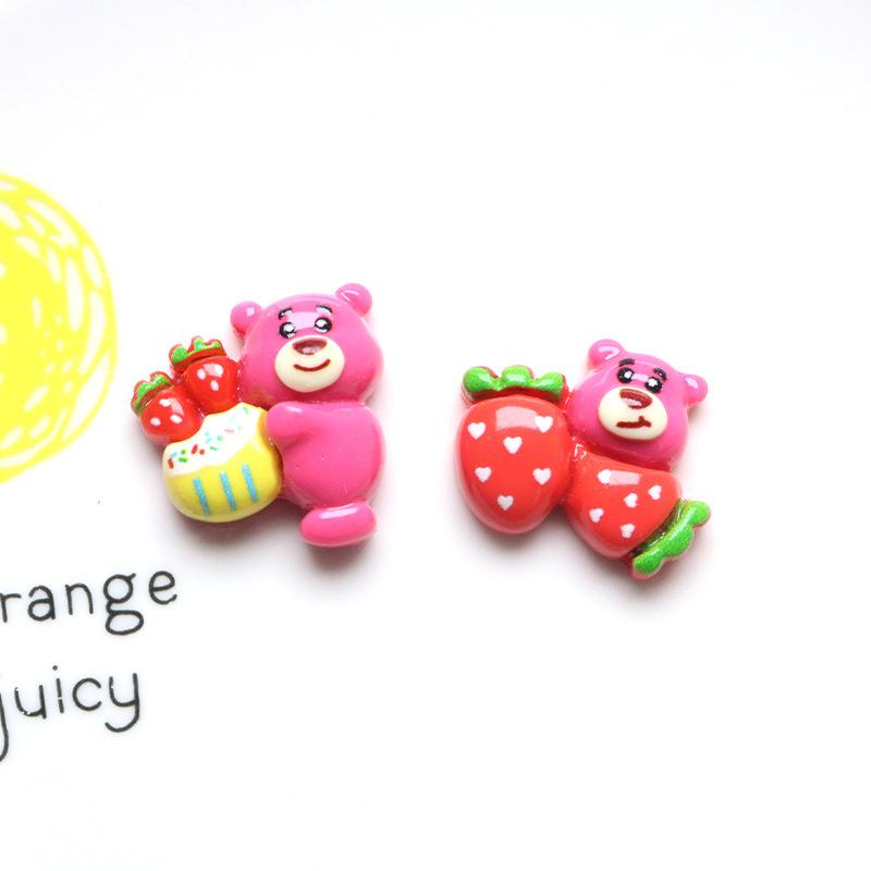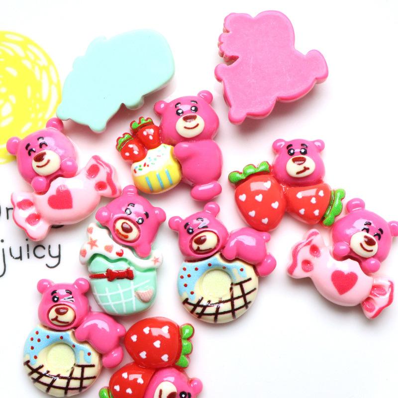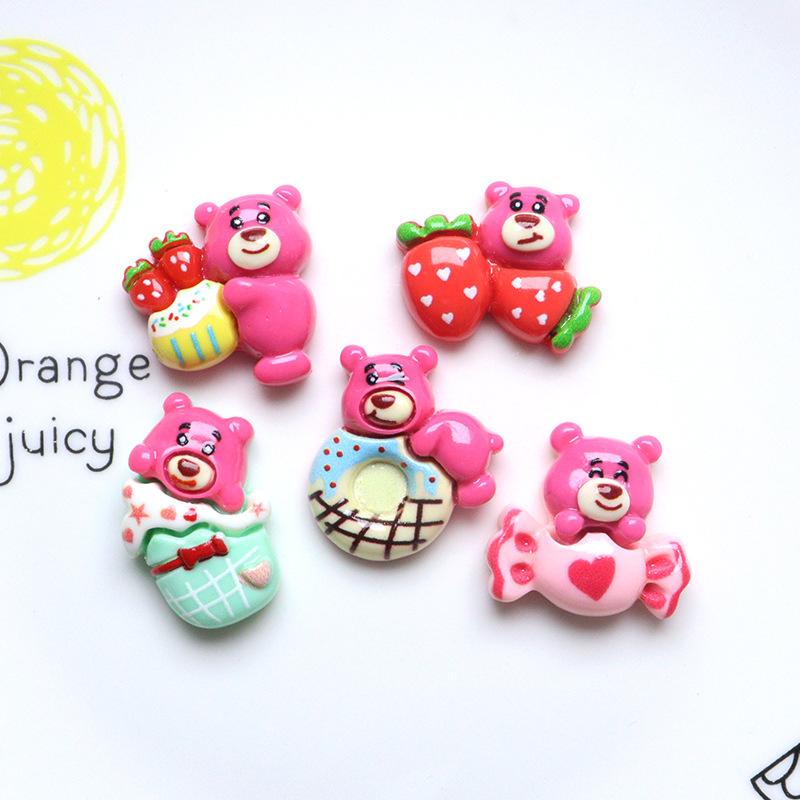 Dibujos Animados Lindo Oso Fresa Accesorios de Resina DIY Carcasa para Teléfono Móvil Agujero Zapatos Pegatina Adornos para Coche Material para Horquilla