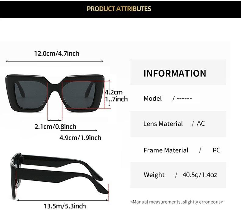 Gafas de sol cuadradas de moda, sencillas y con montura grande para mujer, gafas de sol populares para fotografía callejera, gafas de sol de moda transfronterizas europeas y americanas.