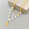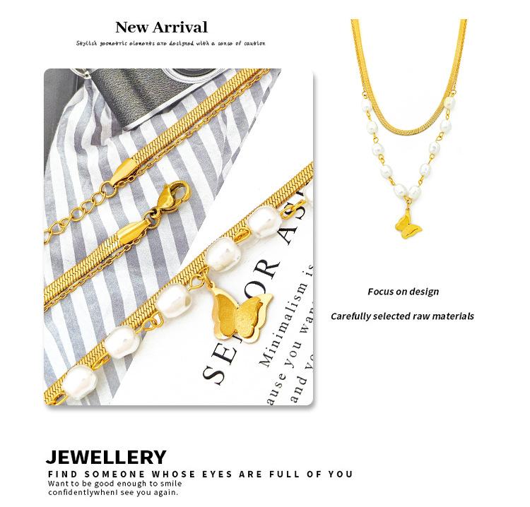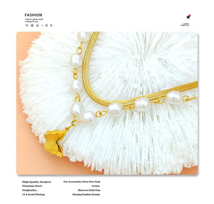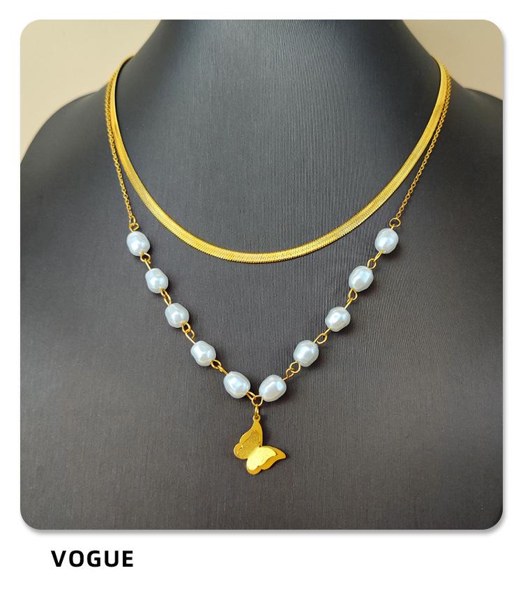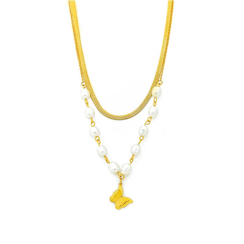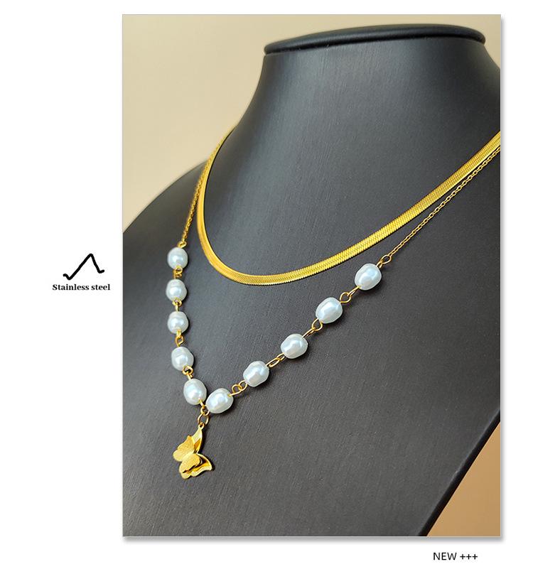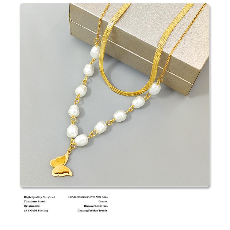Collar de perlas apiladas de doble capa, estilo hip-hop, estilo europeo y americano, con diseño de mariposa y cadena de clavícula.