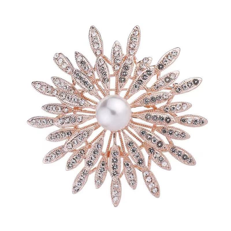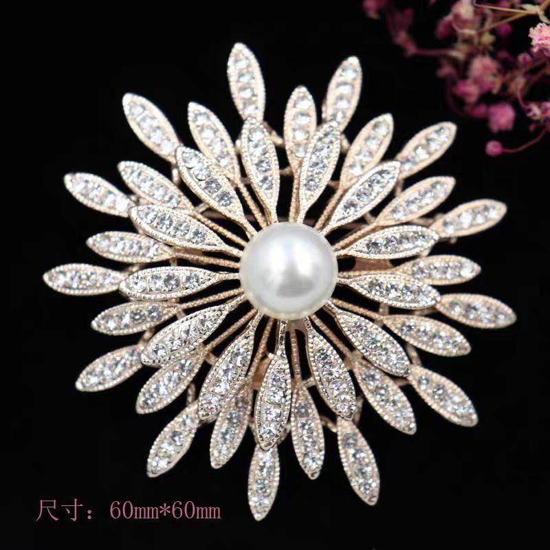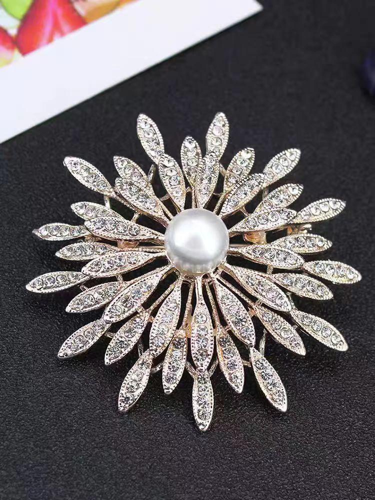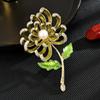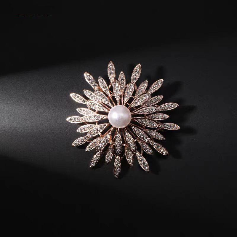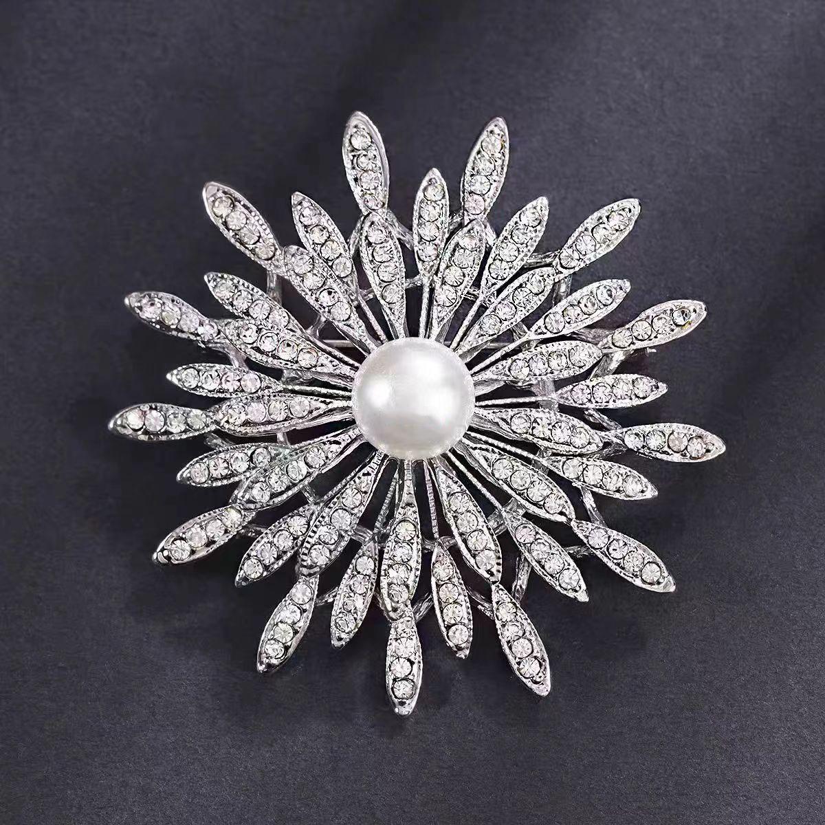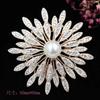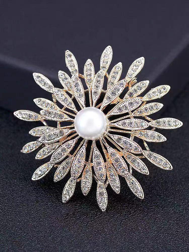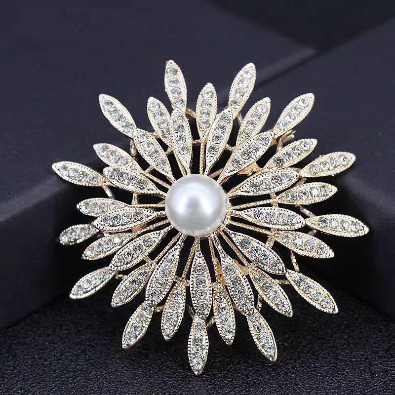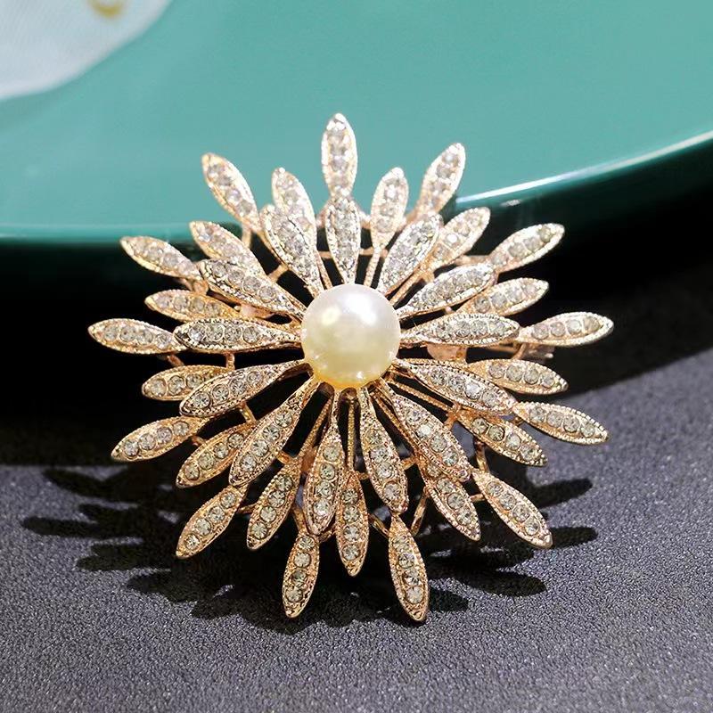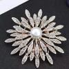 Broche de estilo coreano con diseño de flor de sol dorada, broche de aleación con diamantes y perlas para mujer, elegante ramillete personalizado.