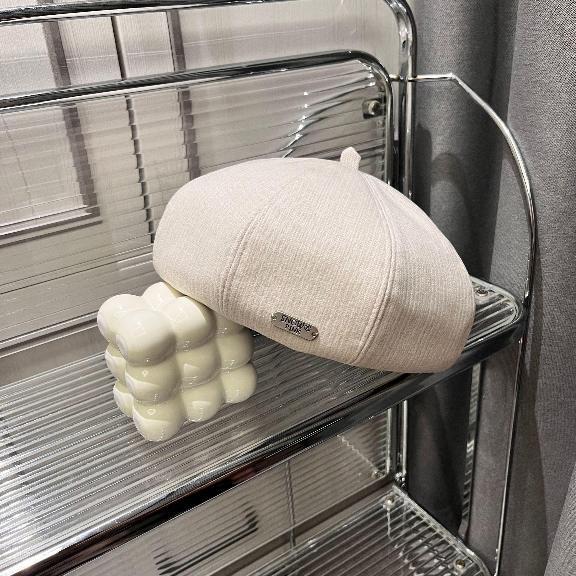 Boina blanca nueva de otoño e invierno para mujer, estilo retro, con cara pequeña, gorra octogonal de moda, gorra de pintor
