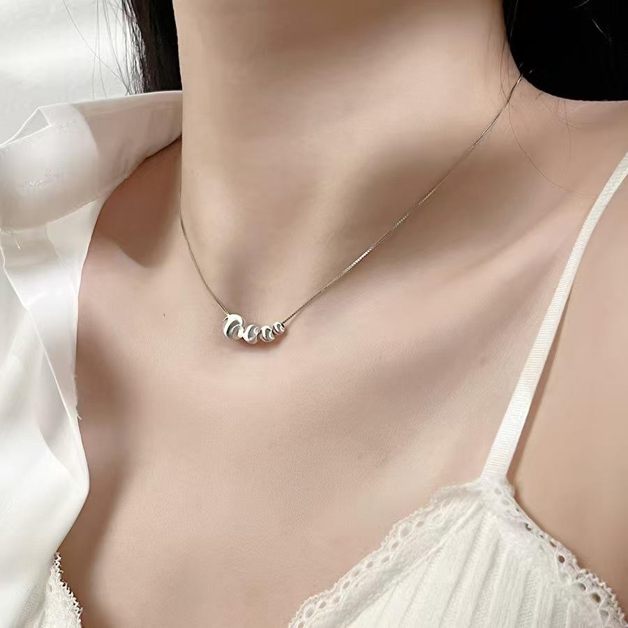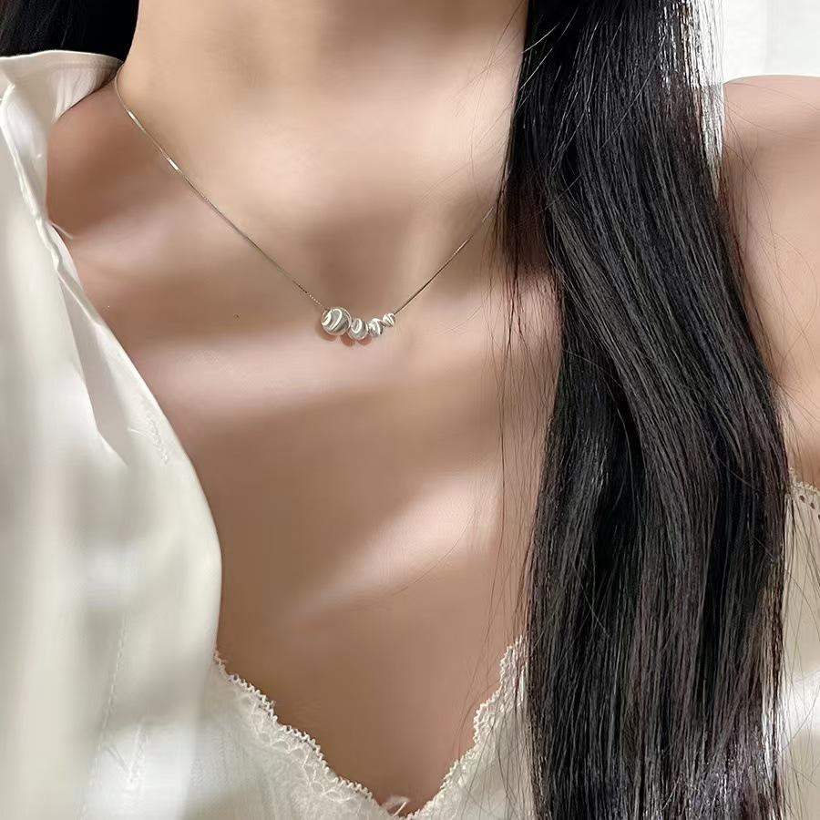 Collar Graduado Ojo de Gato de Plata Esterlina S925 para Mujer Celebridad de Internet Fengbo Master Combinable Viajero Bola Cadena Clavícula Venta Directa