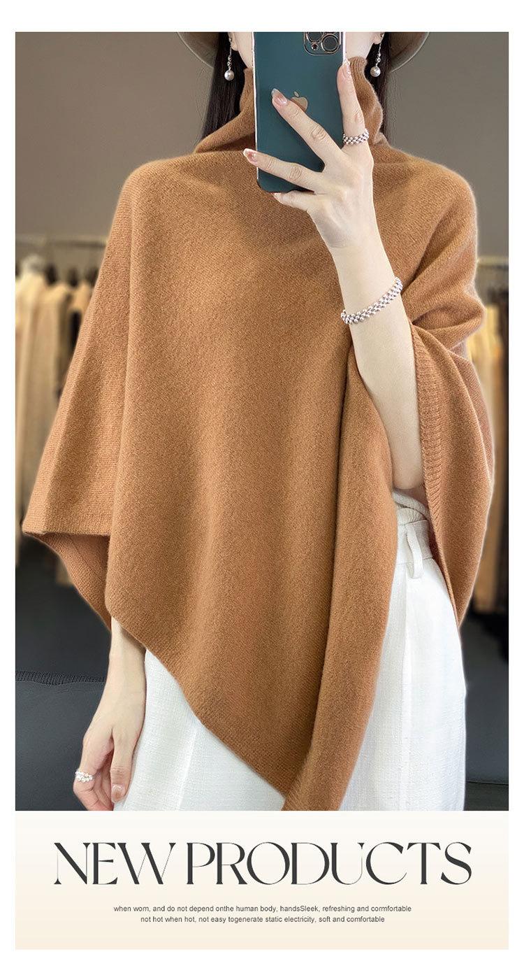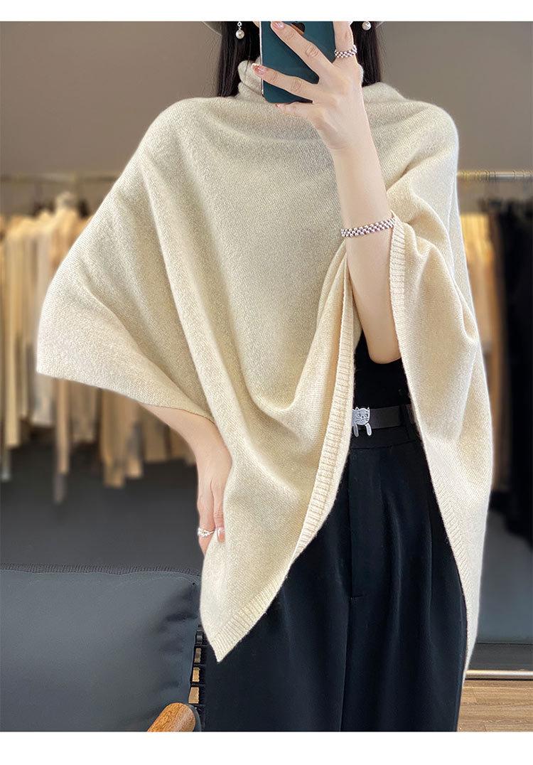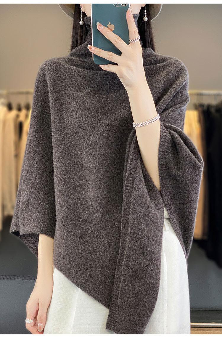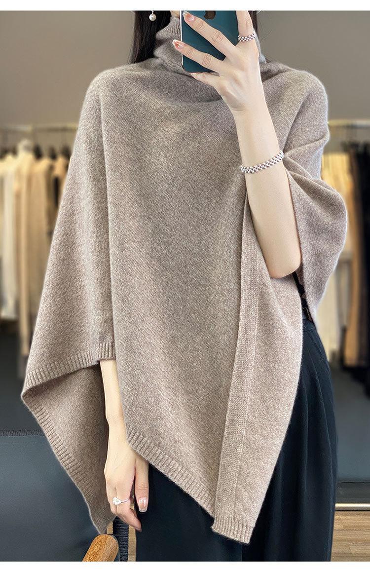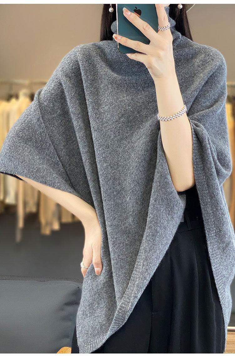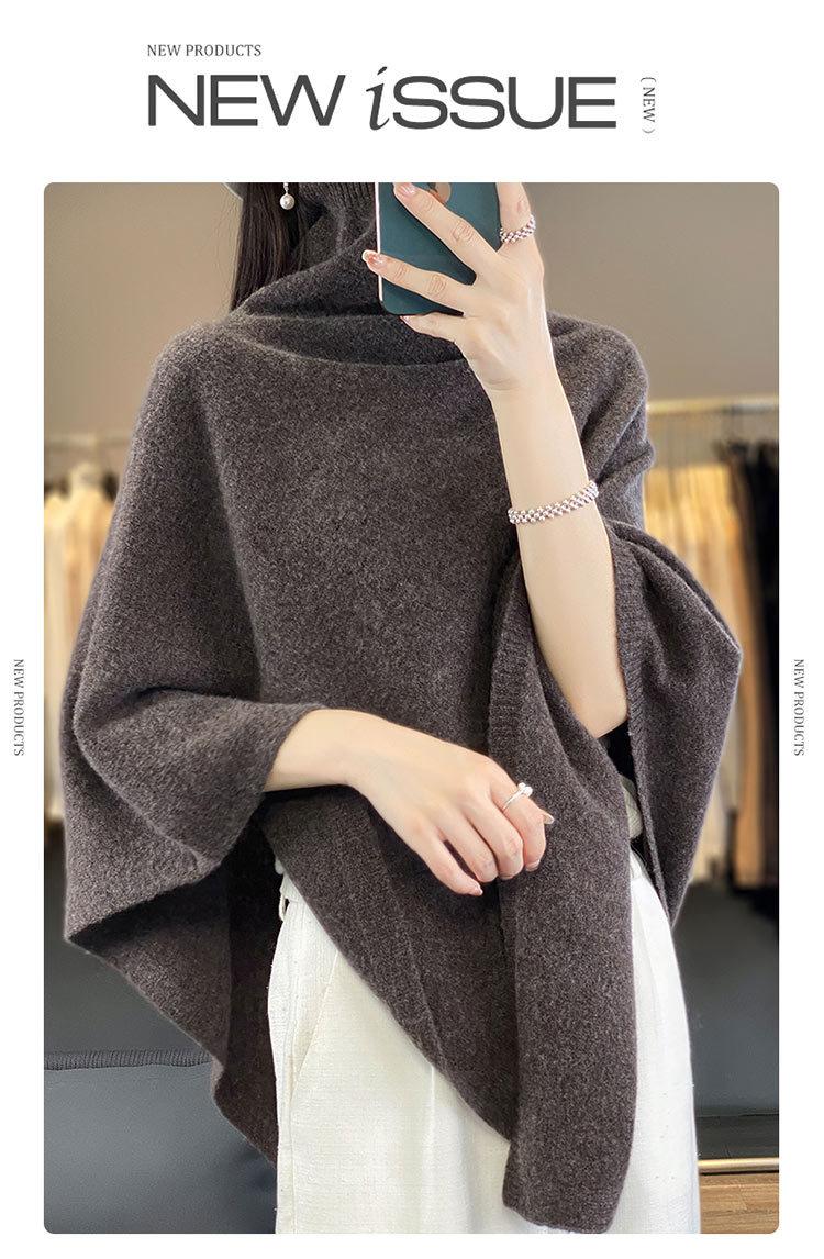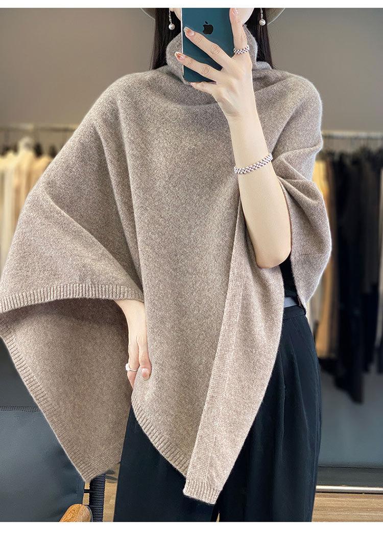 Poncho exterior de punto irregular de color liso para mujer, chal grande con cuello de pila de lana 100 % para otoño e invierno, nuevo
