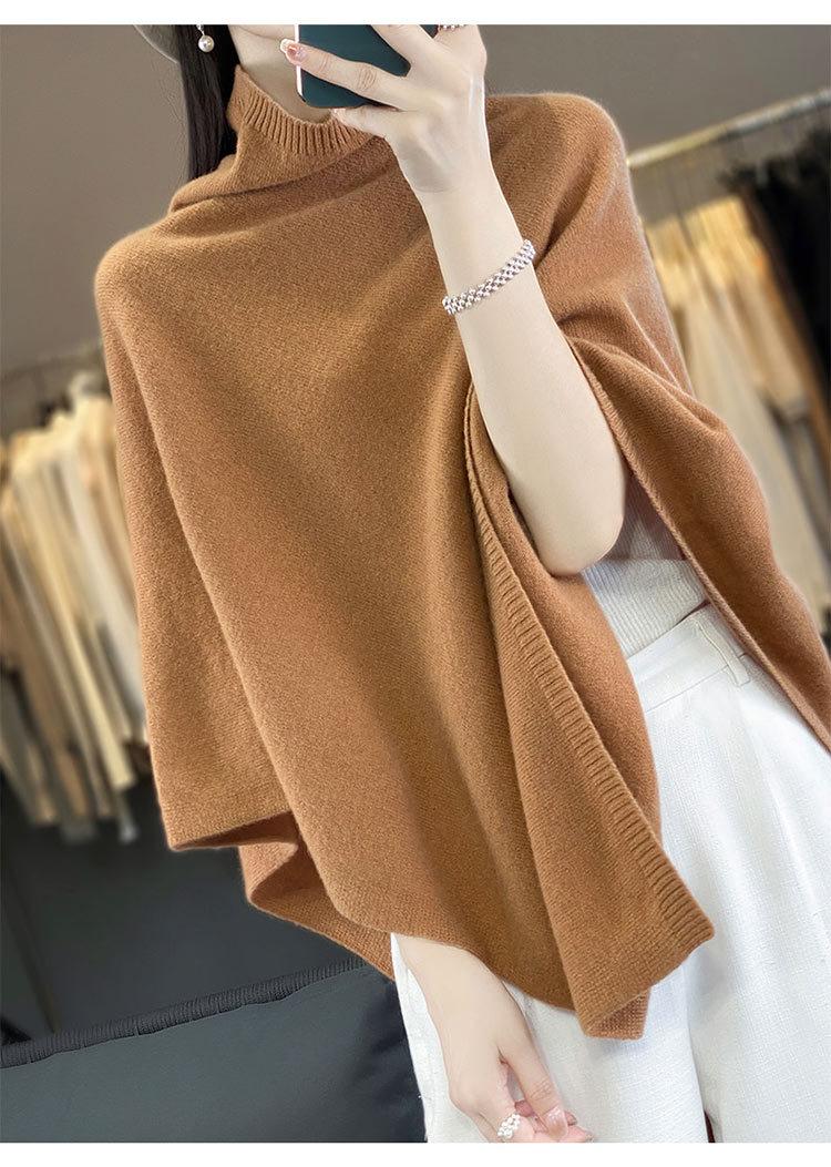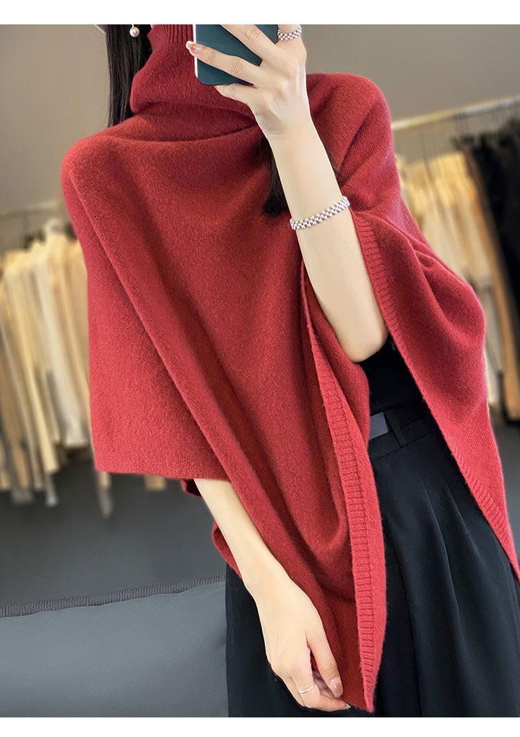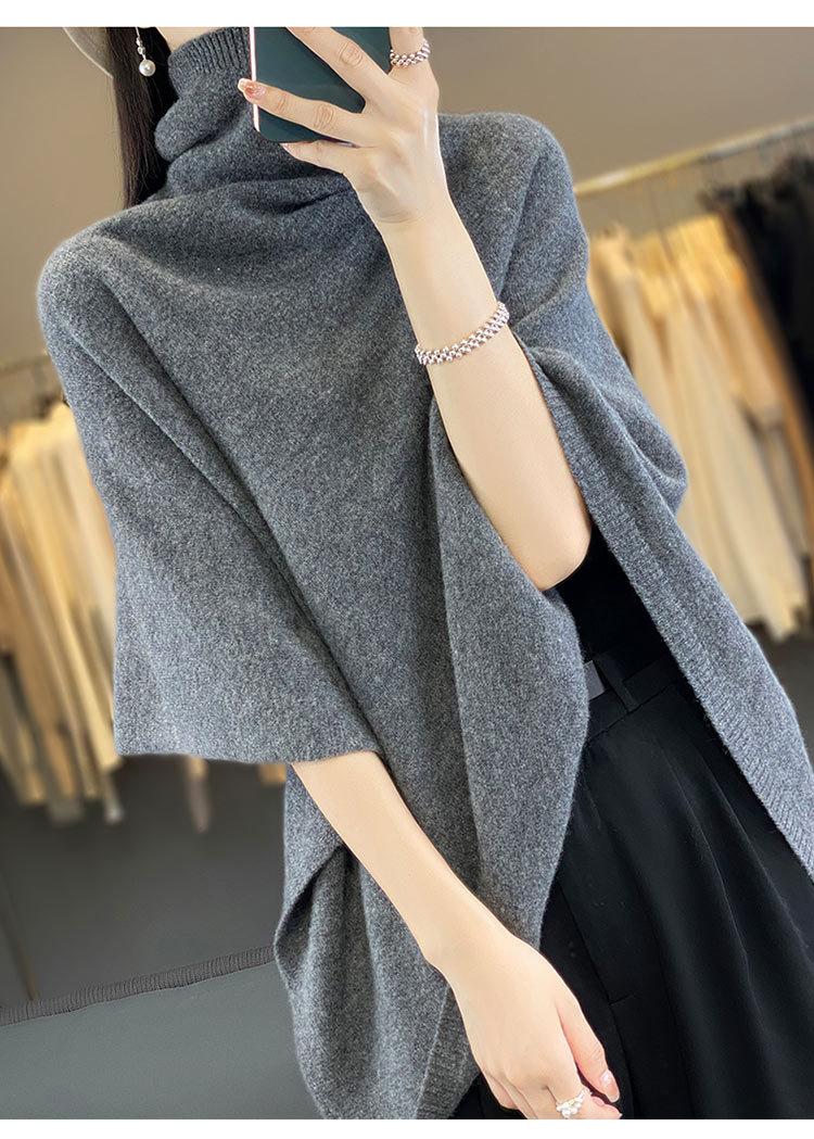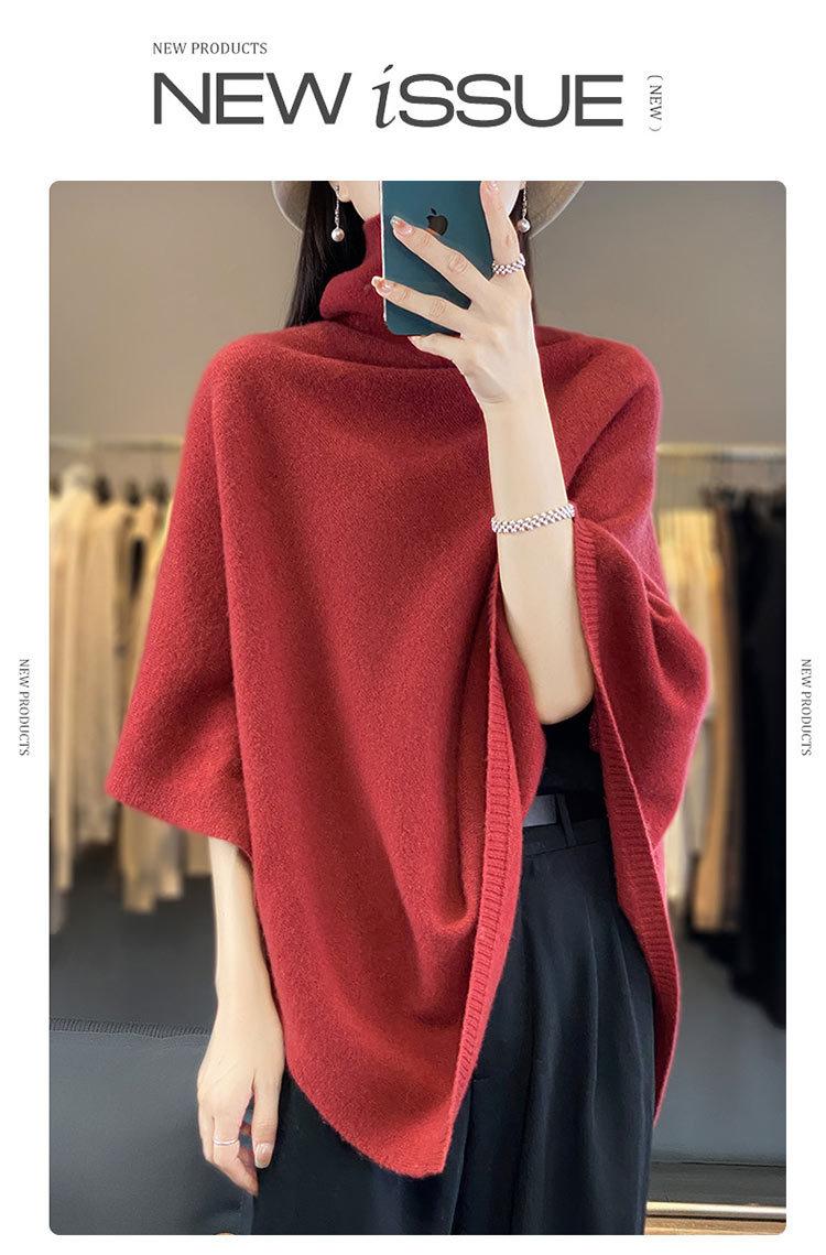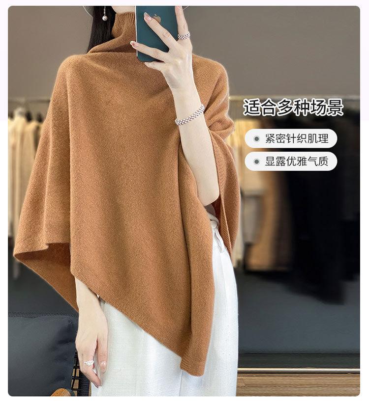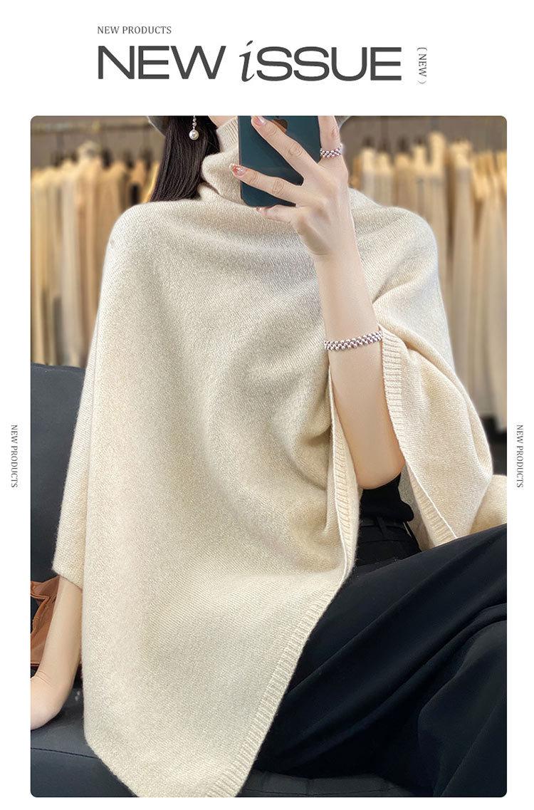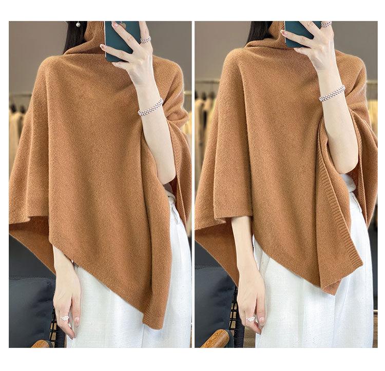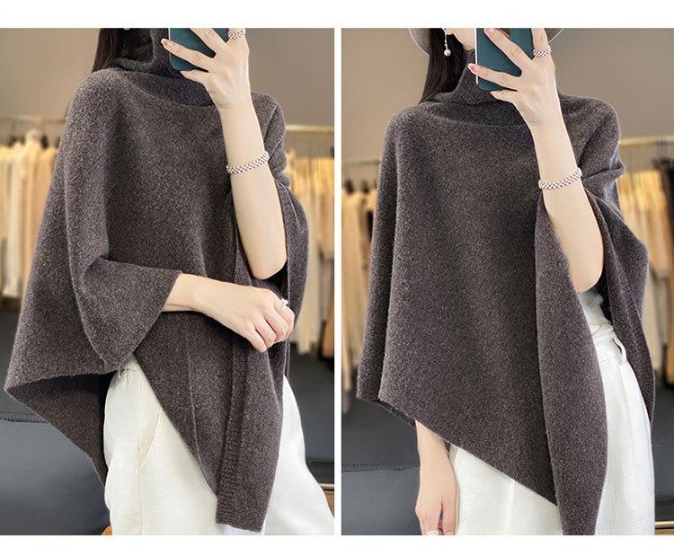 Poncho exterior de punto irregular de color liso para mujer, chal grande con cuello de pila de lana 100 % para otoño e invierno, nuevo