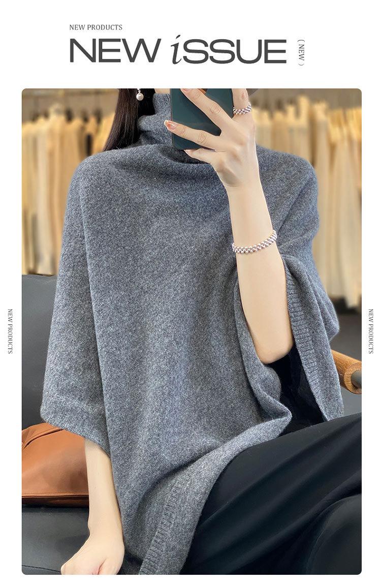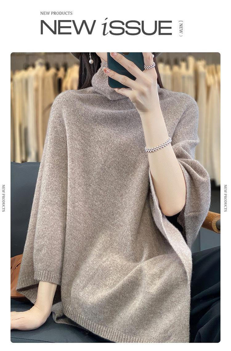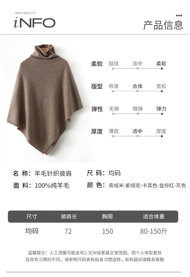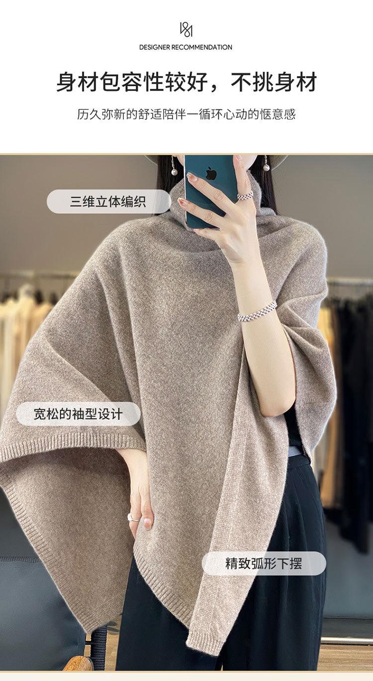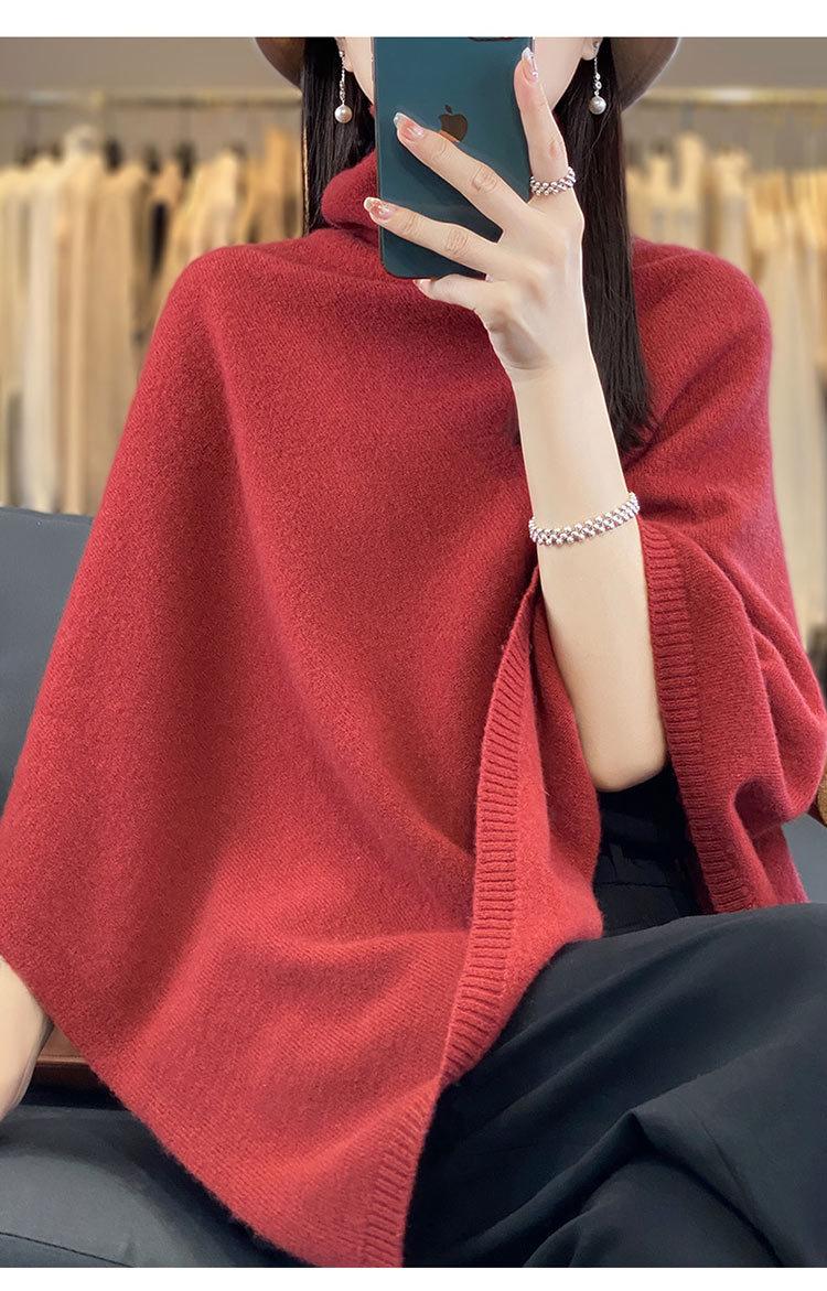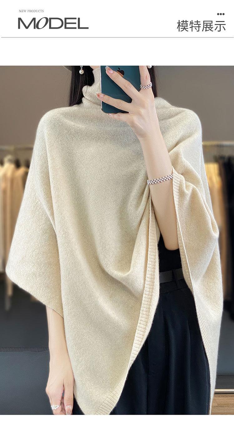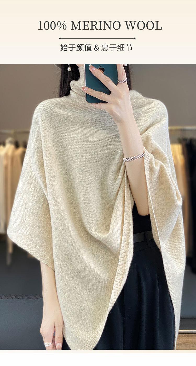 Poncho exterior de punto irregular de color liso para mujer, chal grande con cuello de pila de lana 100 % para otoño e invierno, nuevo
