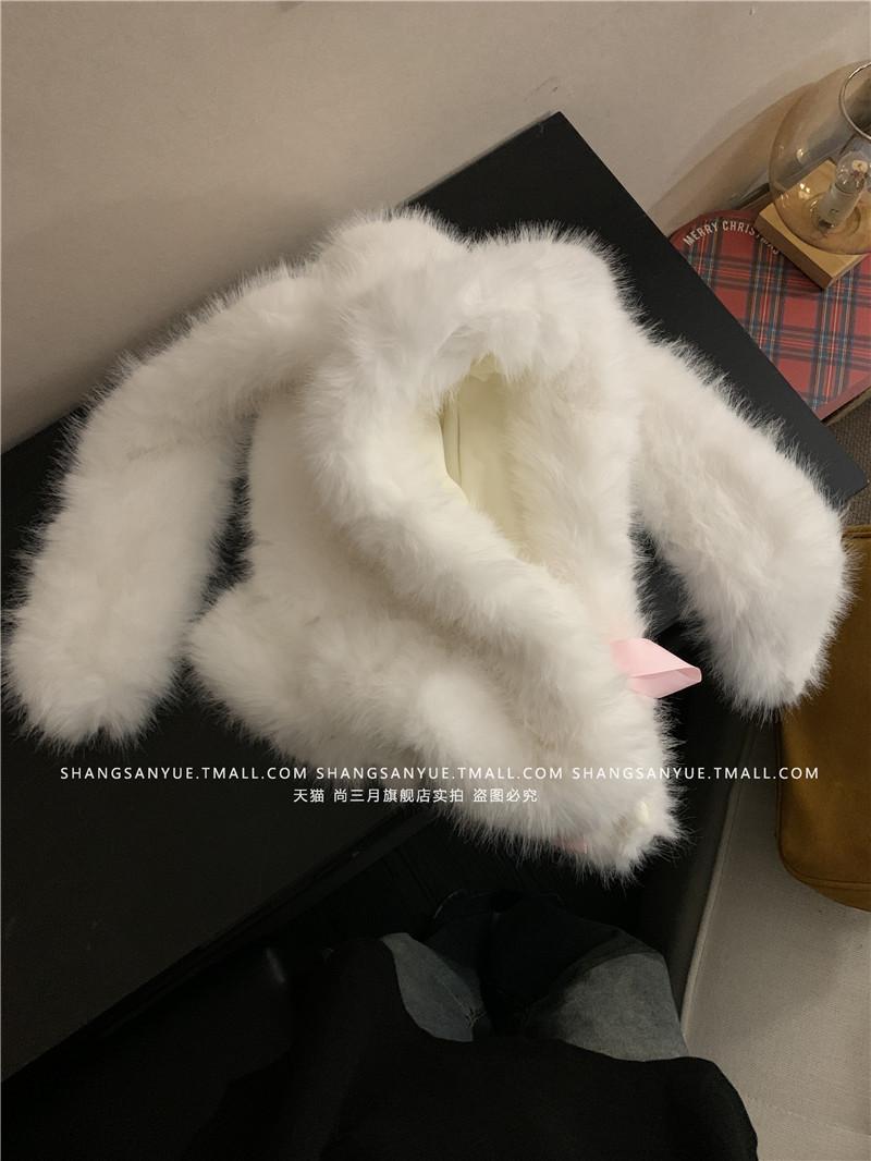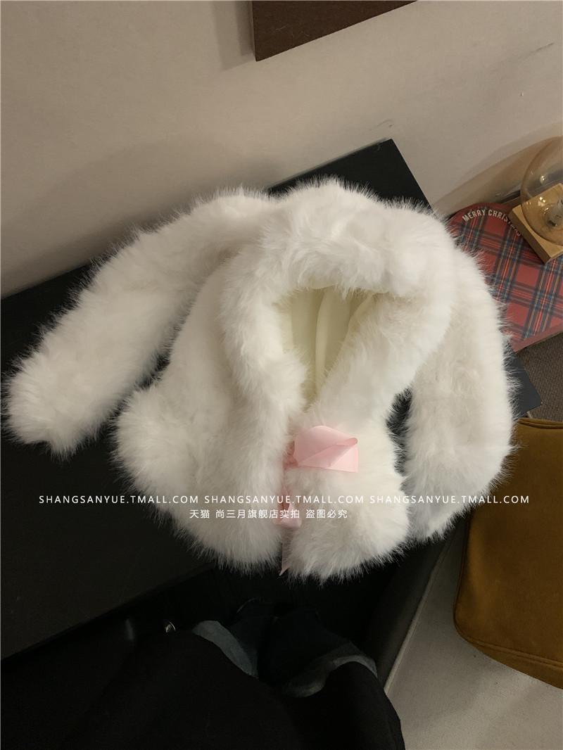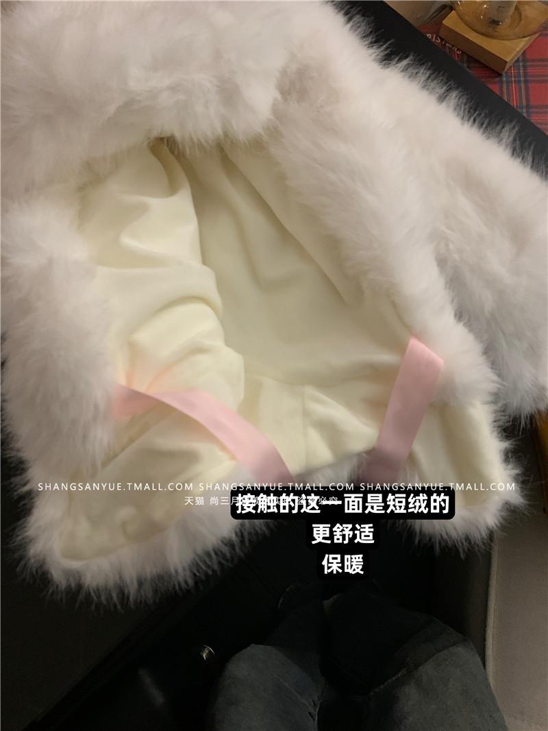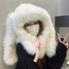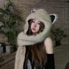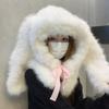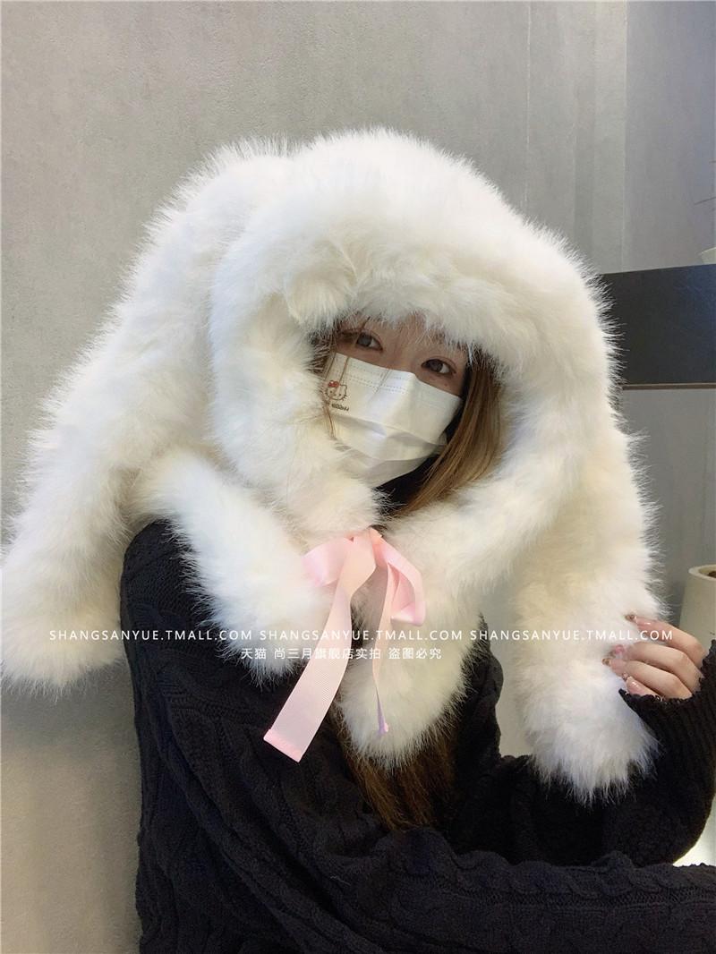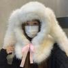 Gorro de felpa con orejas de conejo, bufanda todo en uno, cálido y protector de orejas para invierno, gorro Lei Feng, grueso y esponjoso, para ciclismo.