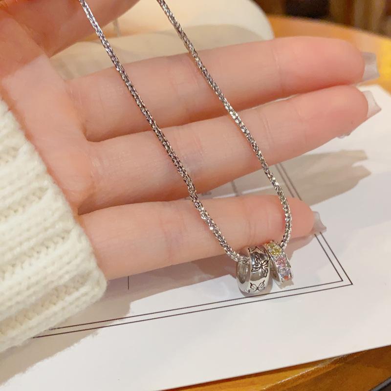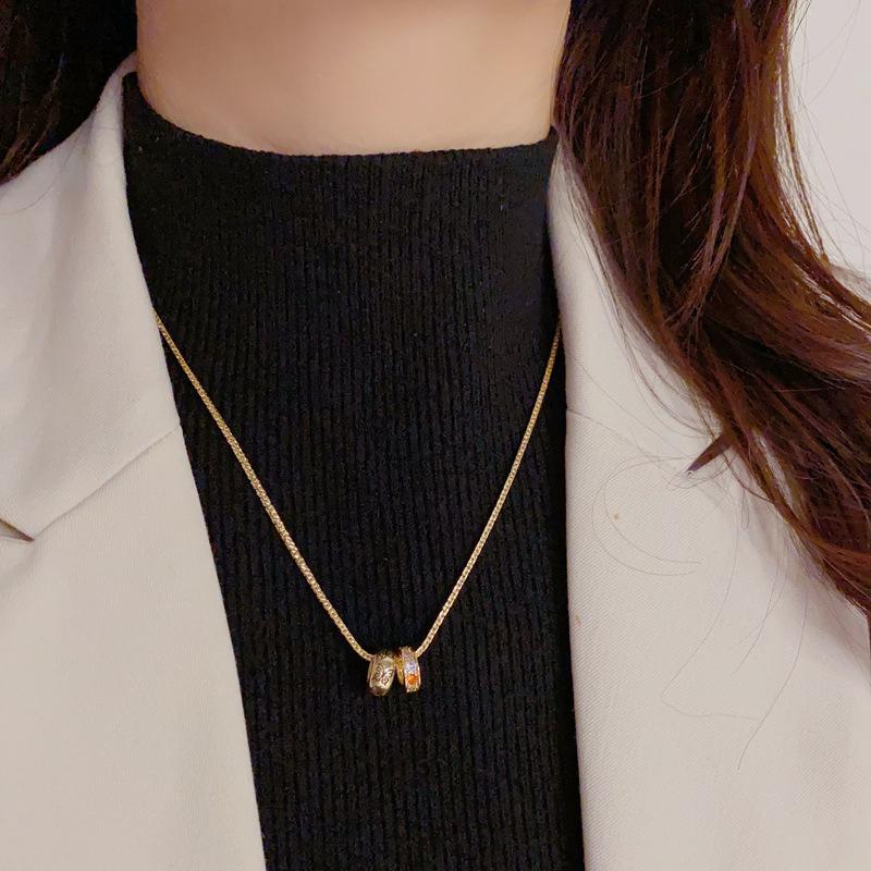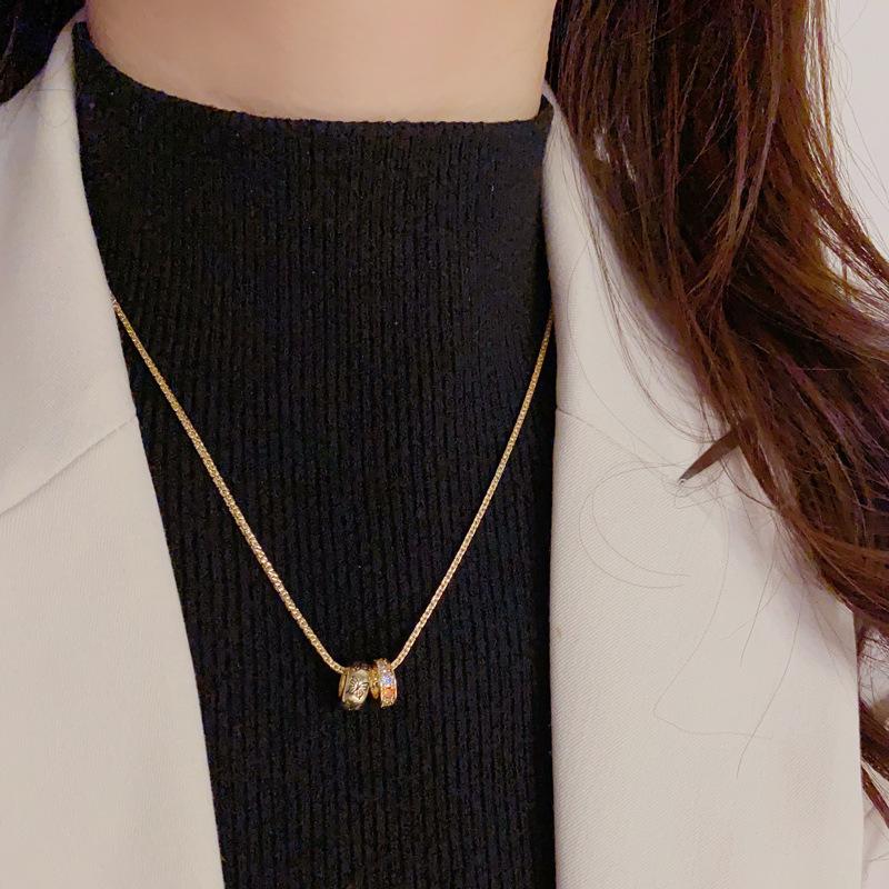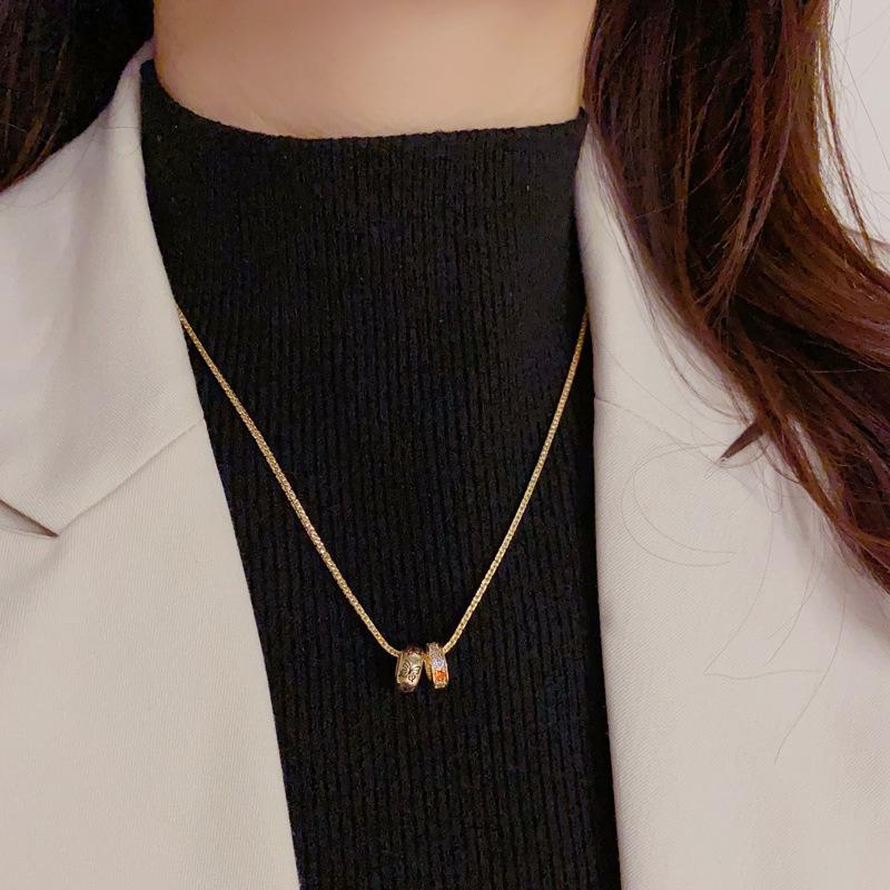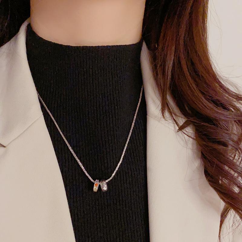 Collar con colgante de anillo doble redondo de diamantes de alta gama, de lujo y ligero, con personalidad elegante y cadena de lana que combina con todo.