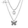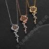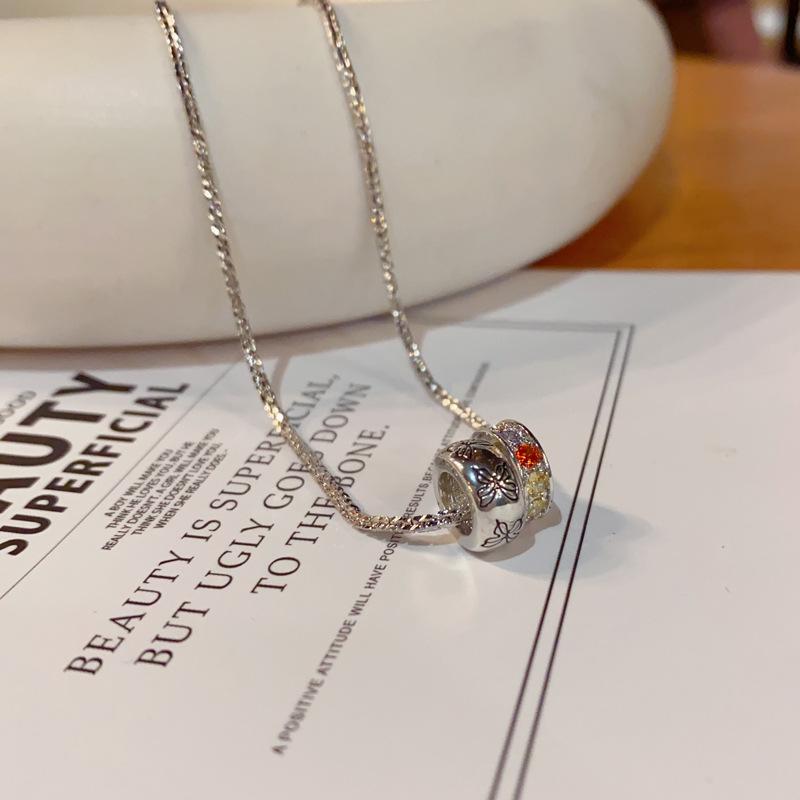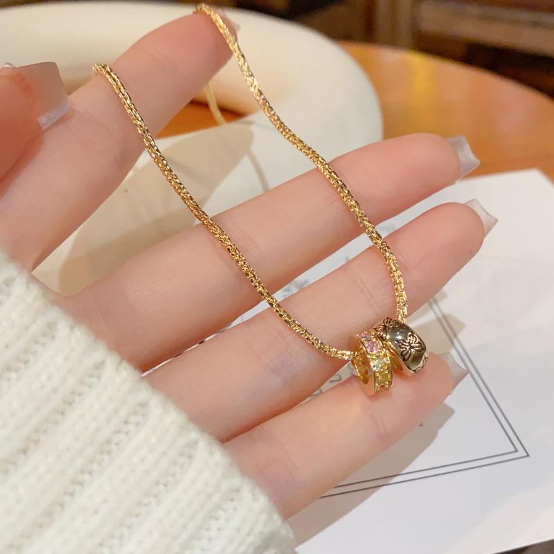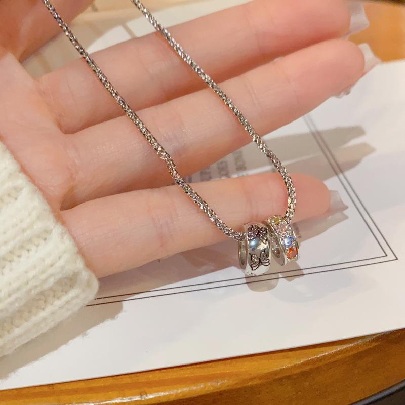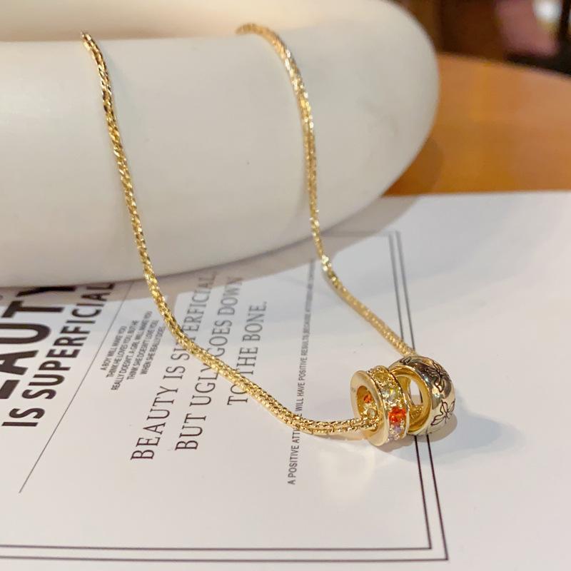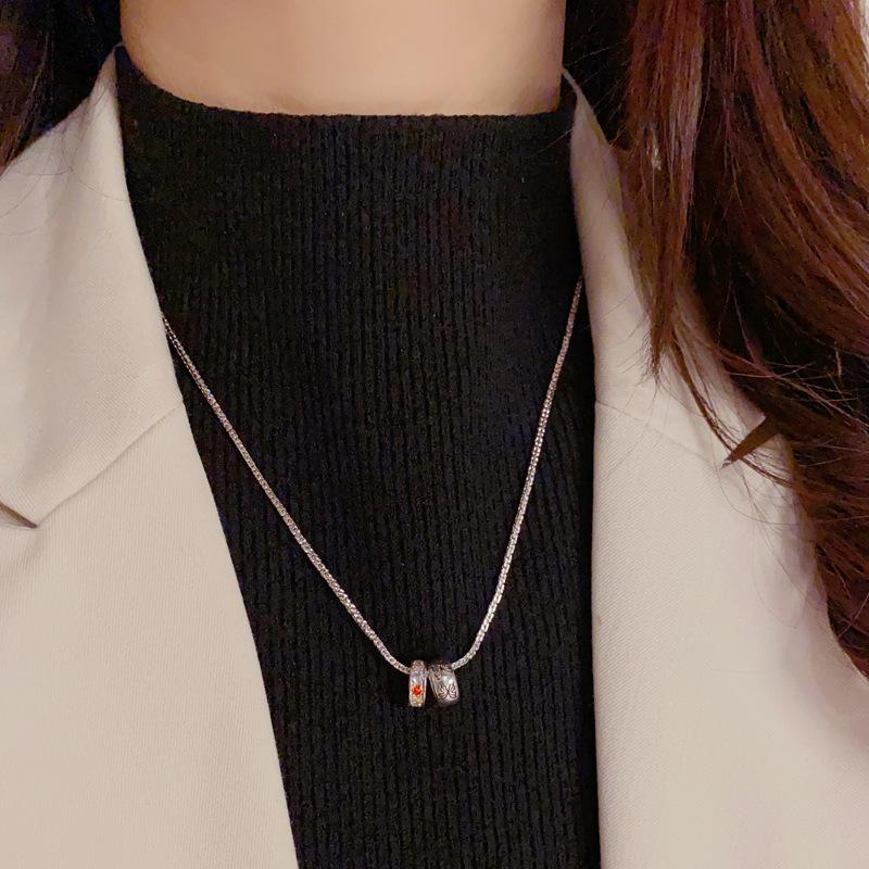 Collar con colgante de anillo doble redondo de diamantes de alta gama, de lujo y ligero, con personalidad elegante y cadena de lana que combina con todo.