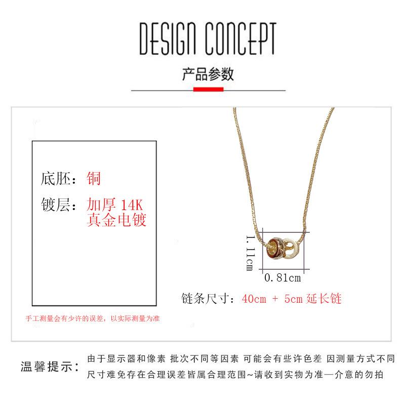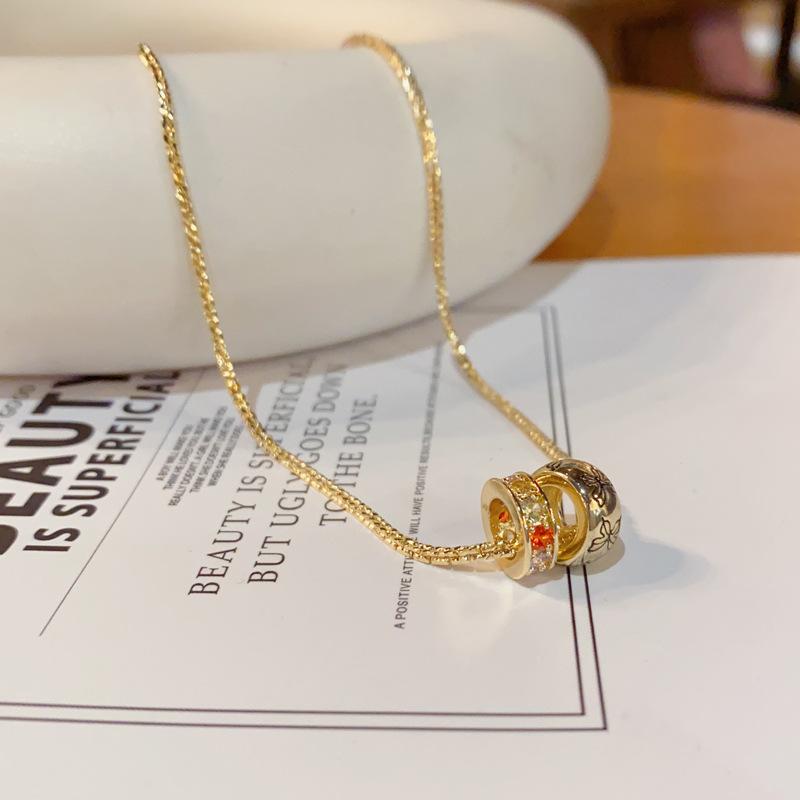 Gold-diamond double ring pendant necklace (thick gold plating)