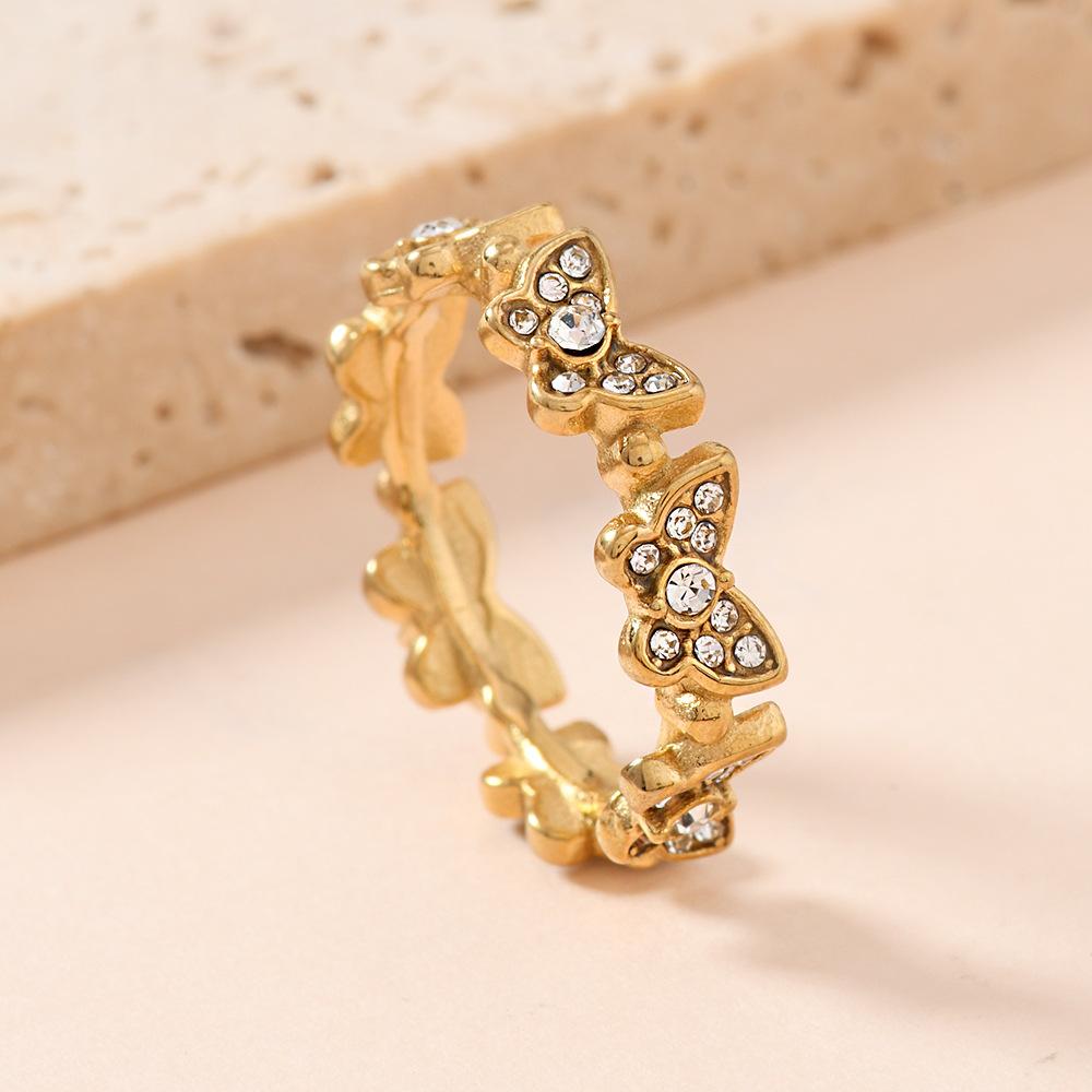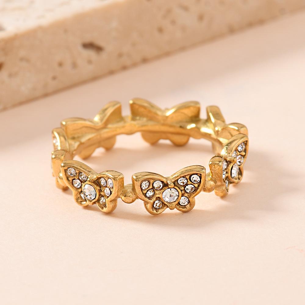 Anillo de lujo ligero de moda transfronteriza, anillo de diamantes de mariposa de fundición popular simple, fabricantes de joyas de acero inoxidable al por mayor