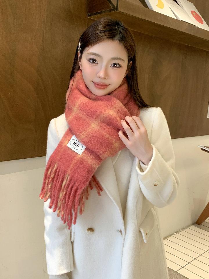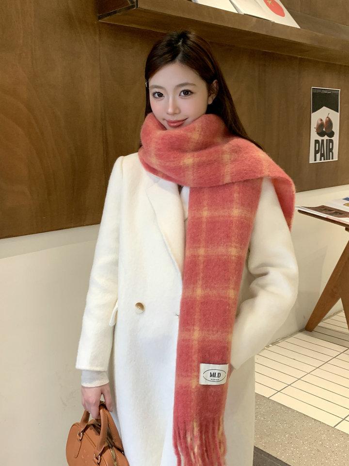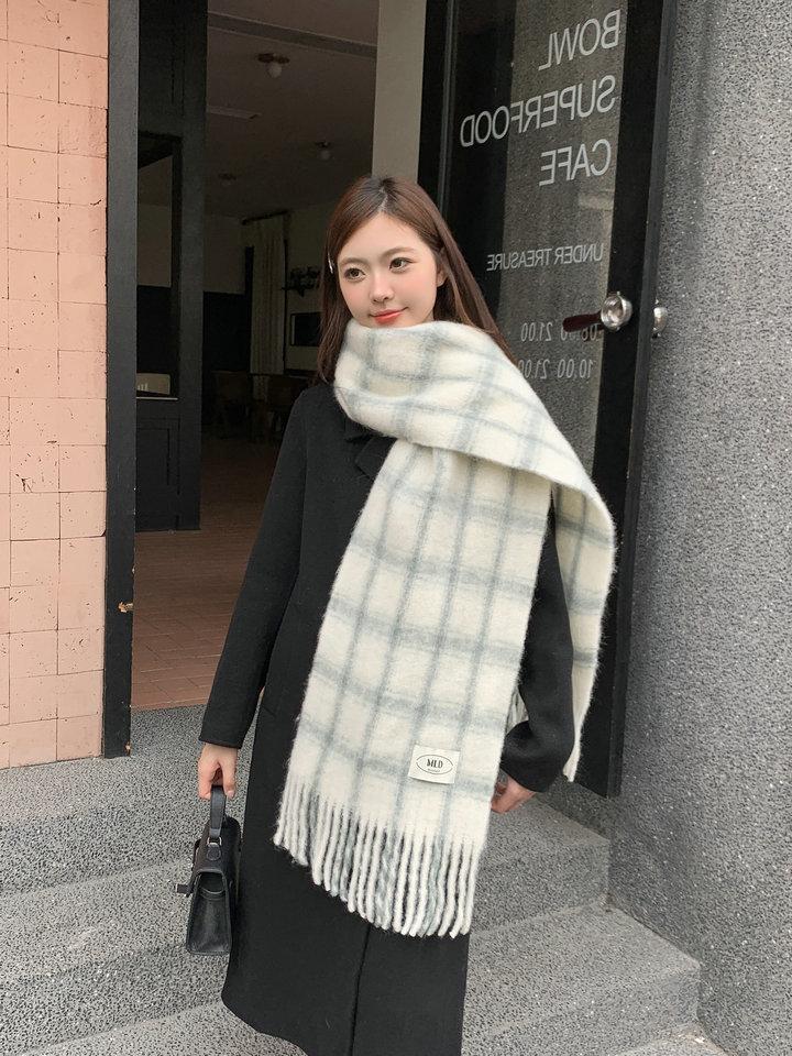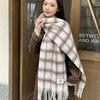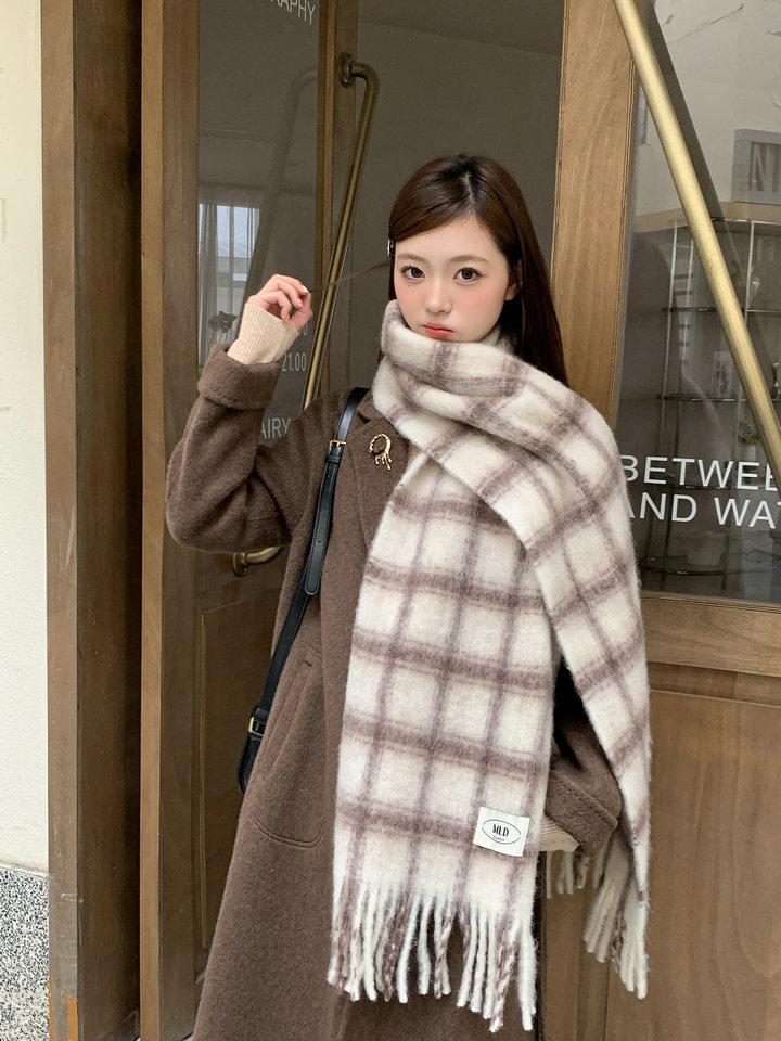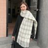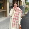 Bufanda de lana suave y encerada a cuadros para mujer, chal cálido de cachemira para estudiantes y parejas, de invierno coreano 2024