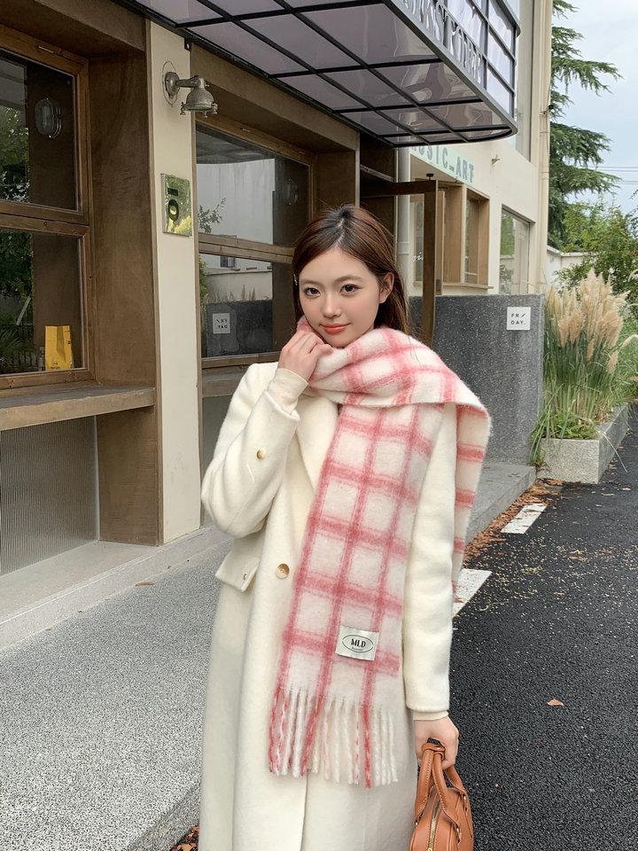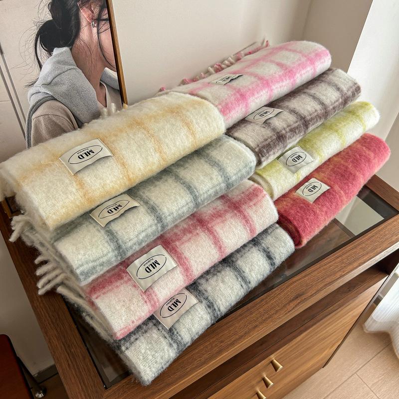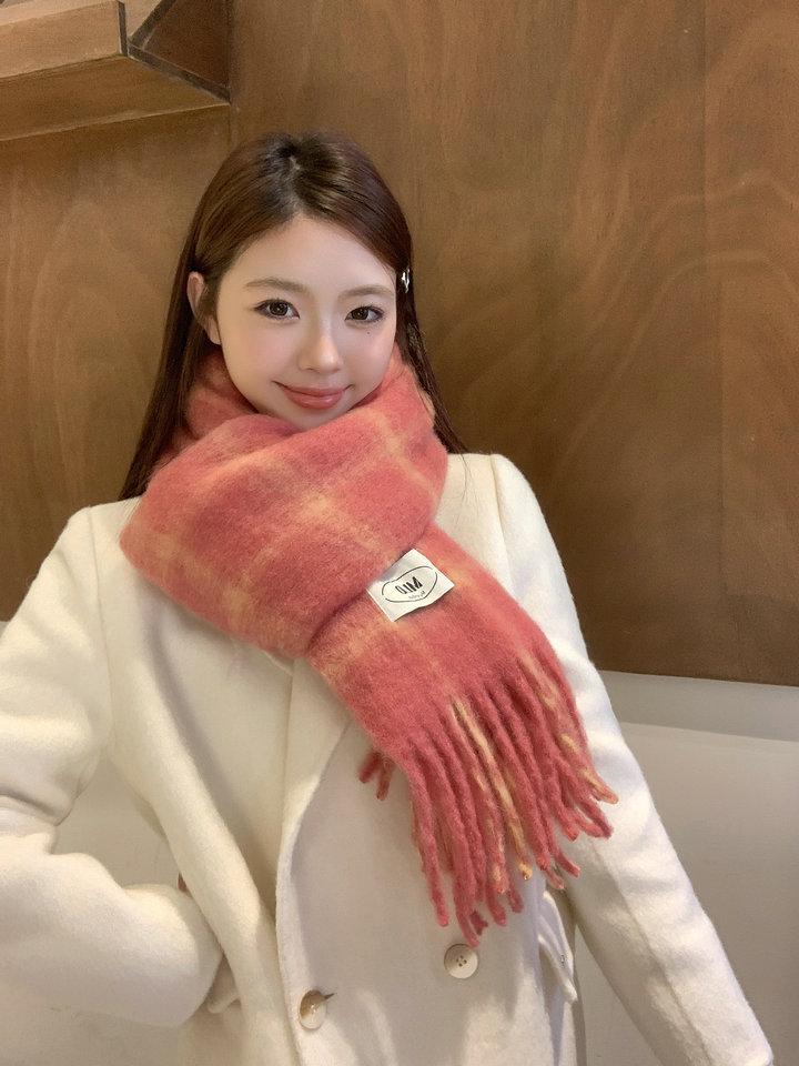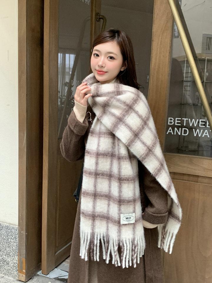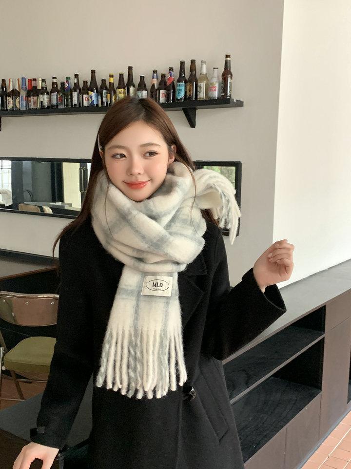 Bufanda de lana suave y encerada a cuadros para mujer, chal cálido de cachemira para estudiantes y parejas, de invierno coreano 2024