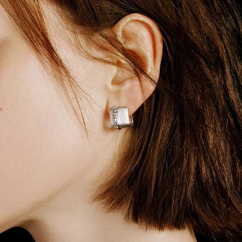 Aretes cuadrados de alta gama transfronterizos de Europa y Estados Unidos aretes aretes de quilates rotos aretes cepillados venta al por mayor