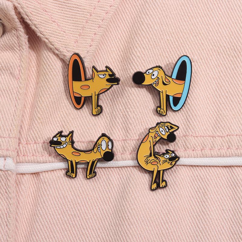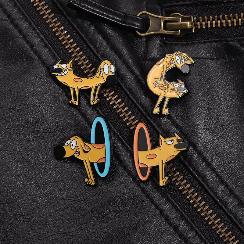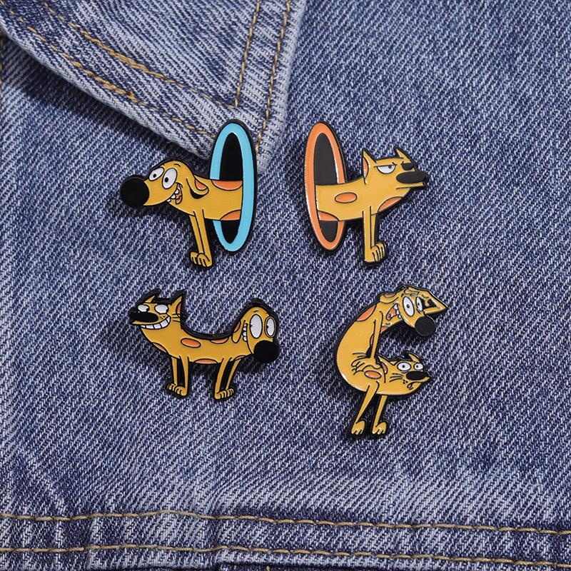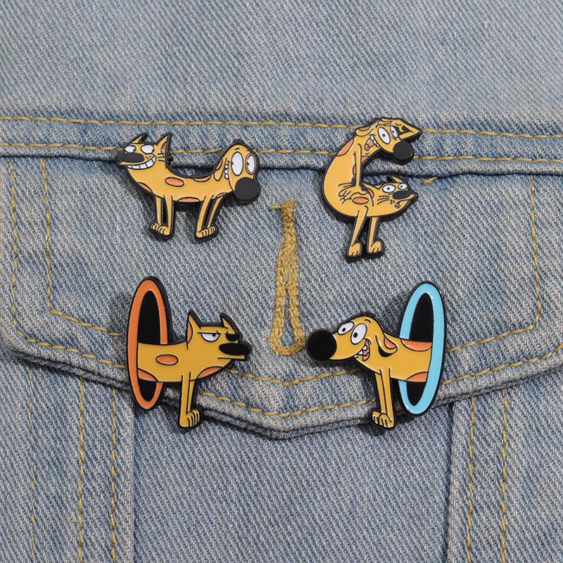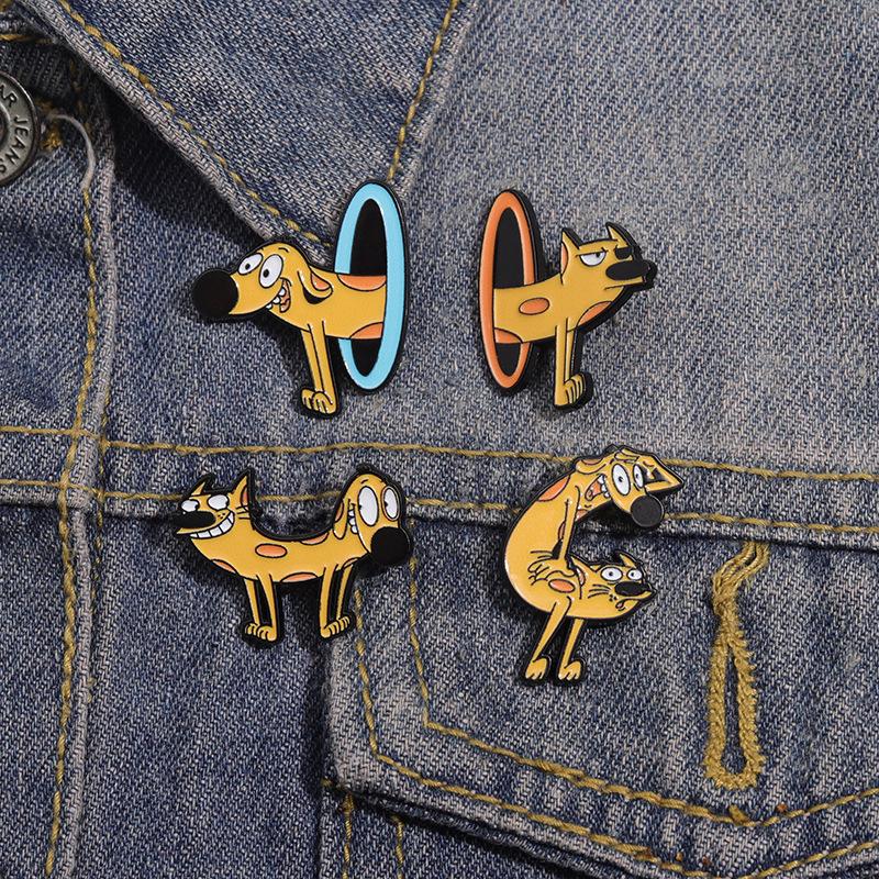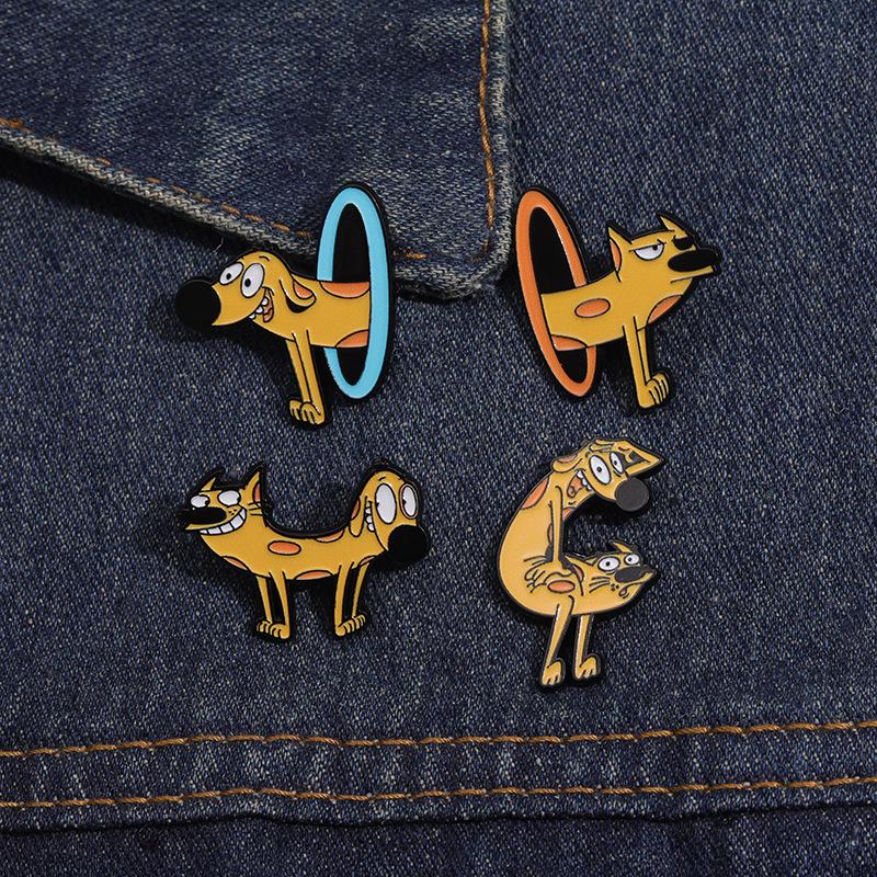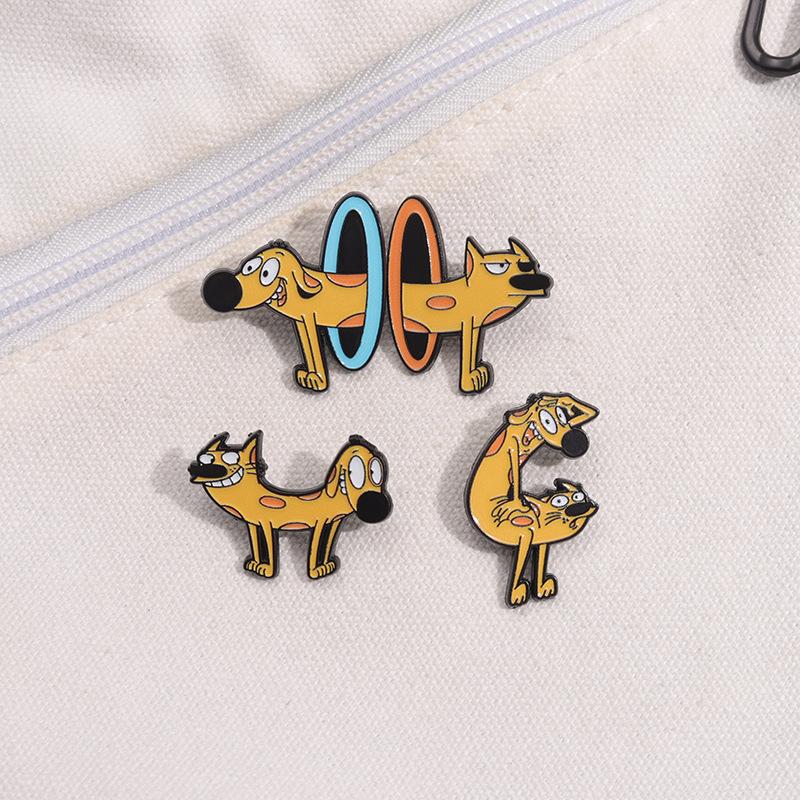 Insignia de modelado de perro lindo de dibujos animados creativos transfronterizos, personalidad divertida, perro de dos cabezas, accesorios de metal, broche al por mayor