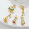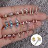 Pendientes de acero inoxidable de 20 g con forma de varilla fina y circonita de color 18 quilates, estilo coreano, con forma de hueso de oreja de Hamburgo y bola de rosca.