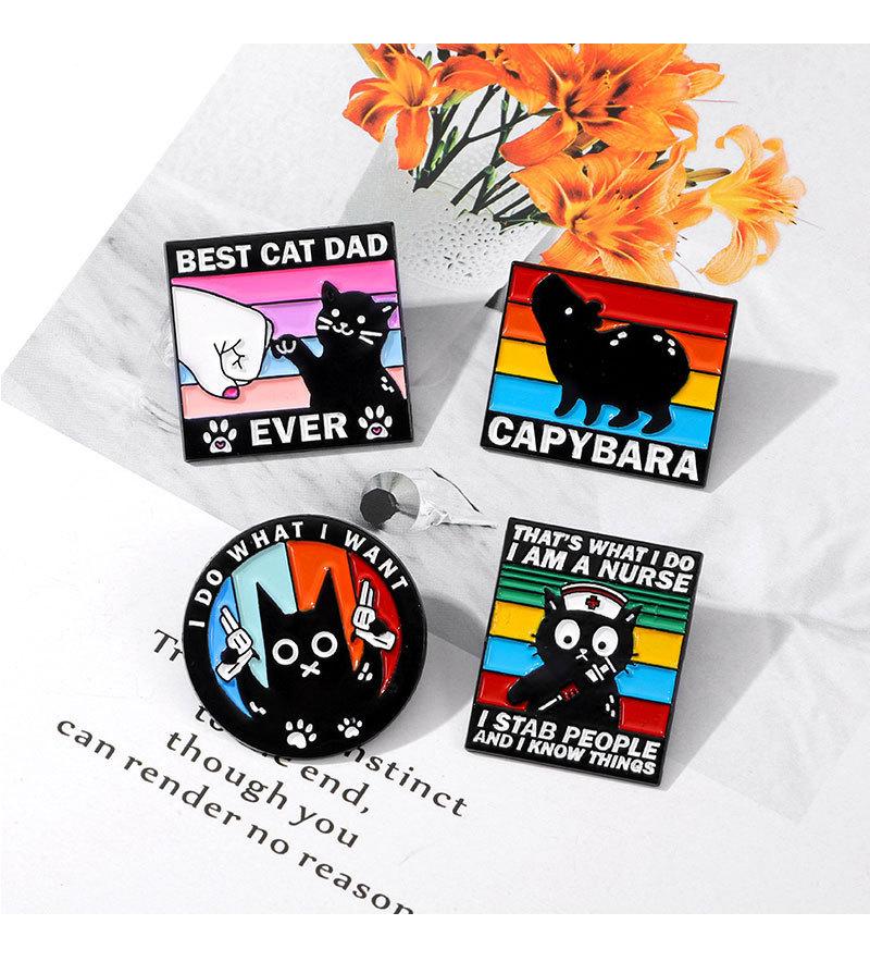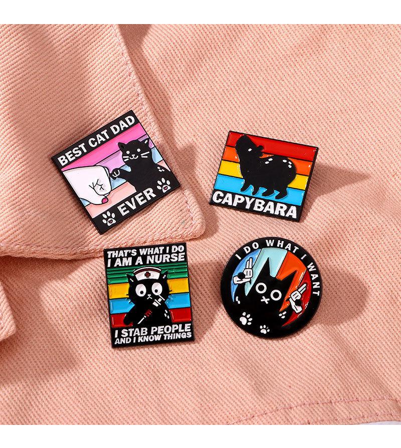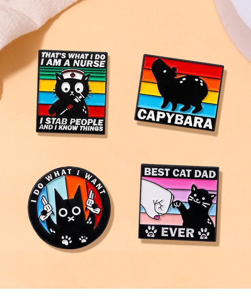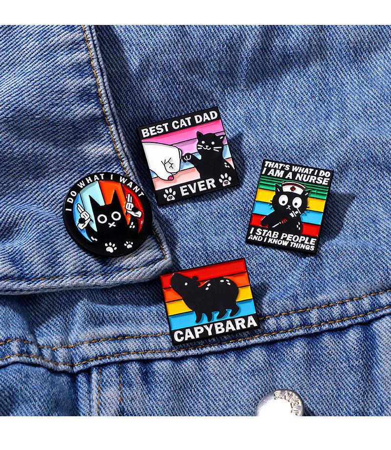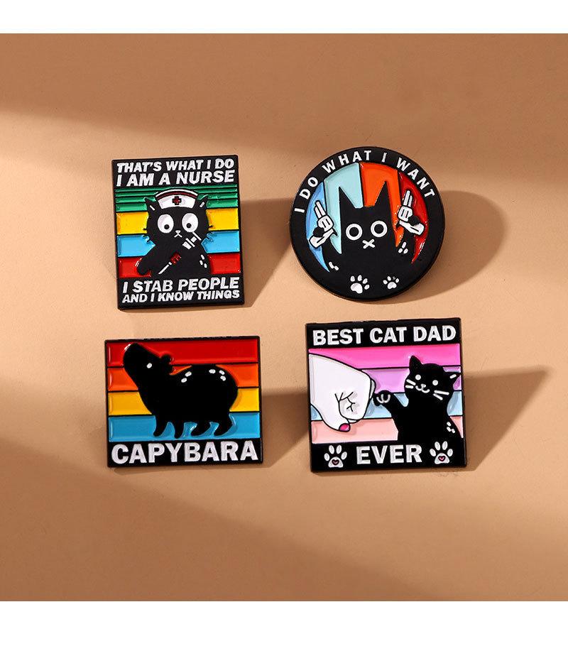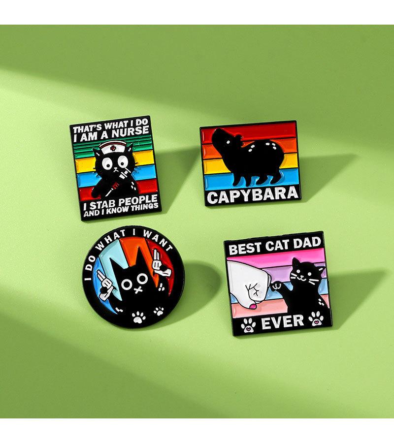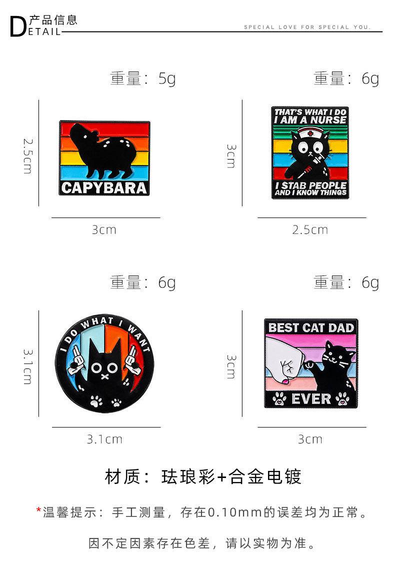 Broche original de animal pequeño con diseño de gota de aceite de aleación de dibujos animados, insignia decorativa para ropa con diseño de capibara, gato negro y viento oscuro inglés