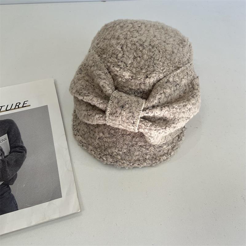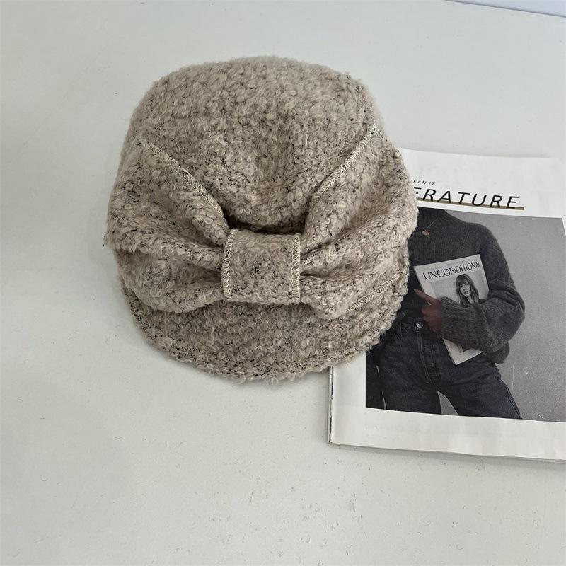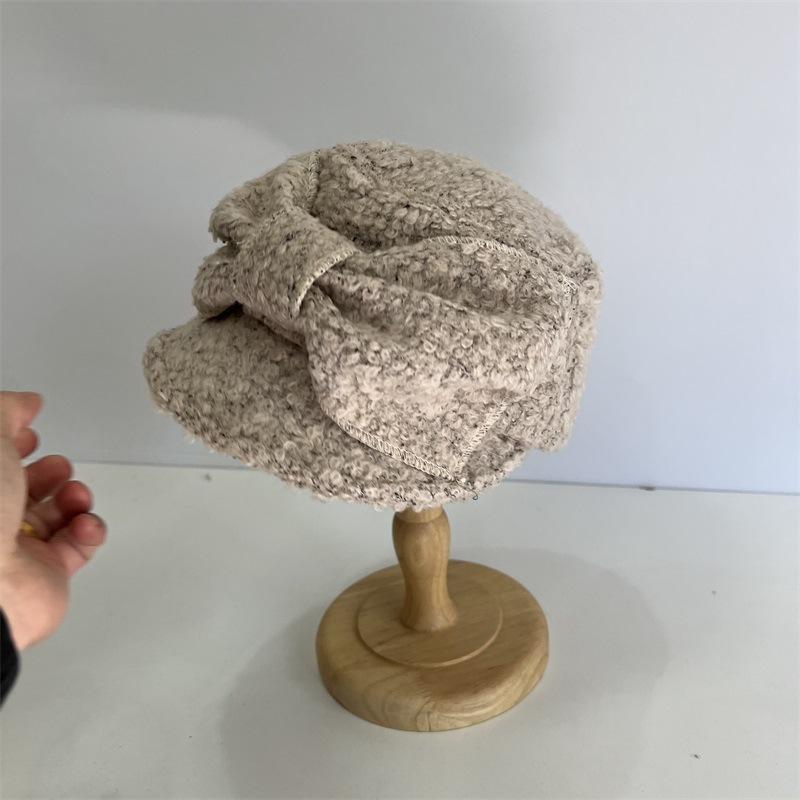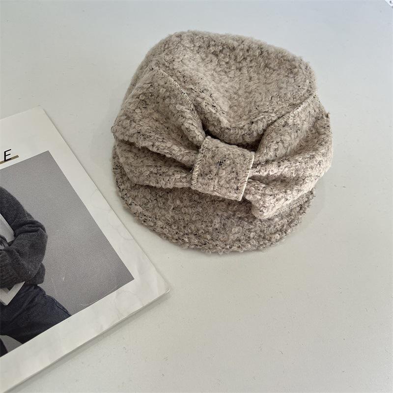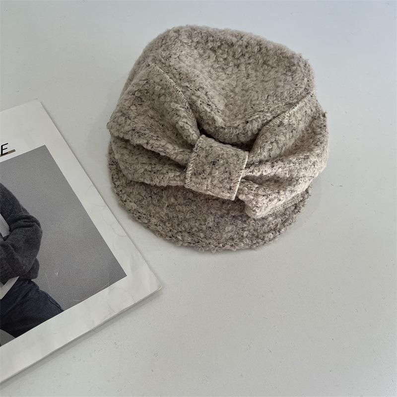 Moda Otoño e Invierno Sombrero Simple de Equitación con Lazo Grande de Felpa para Damas Elegante Literario y Artístico Cálido Sombrero de Niño de las Noticias