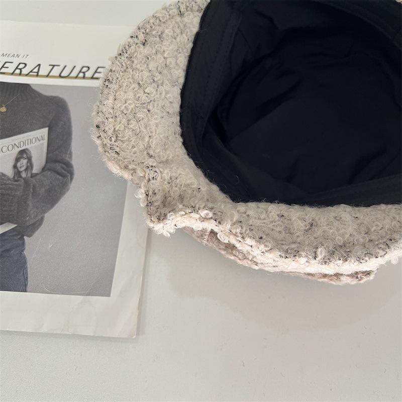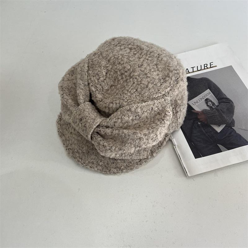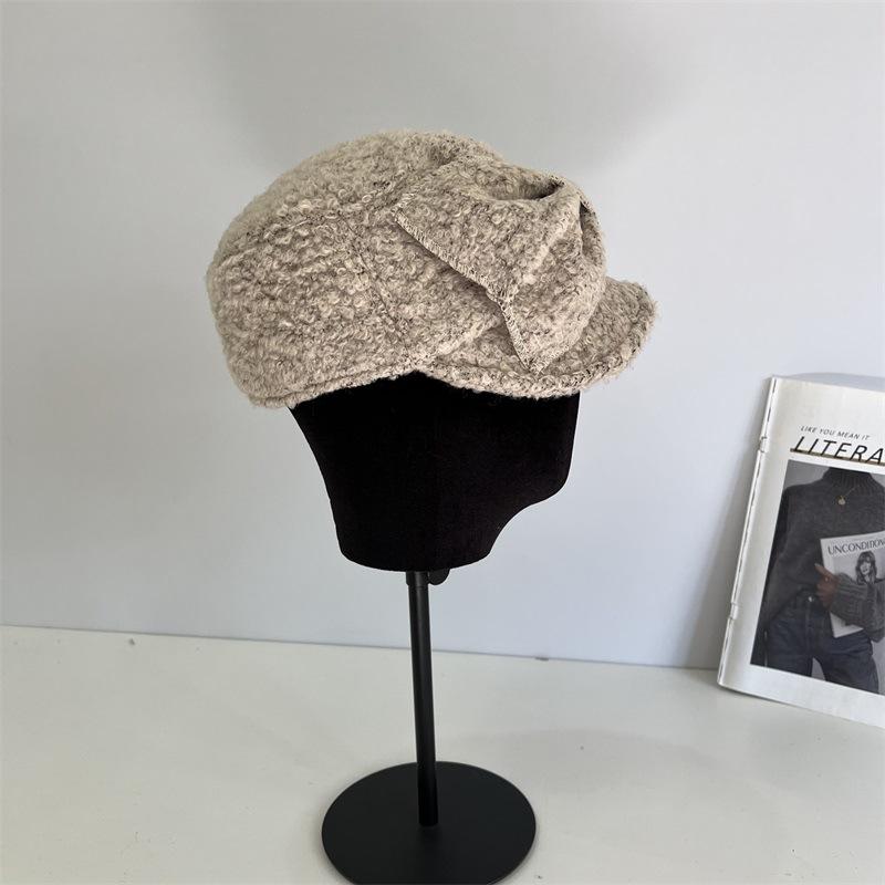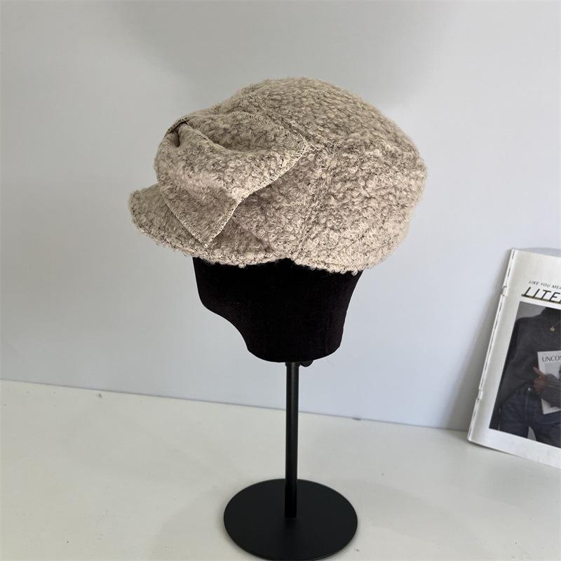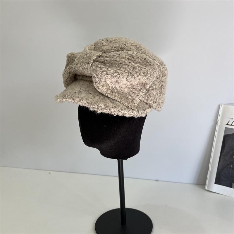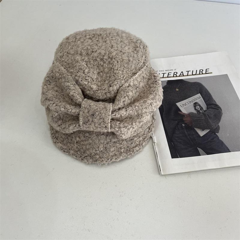 Moda Otoño e Invierno Sombrero Simple de Equitación con Lazo Grande de Felpa para Damas Elegante Literario y Artístico Cálido Sombrero de Niño de las Noticias