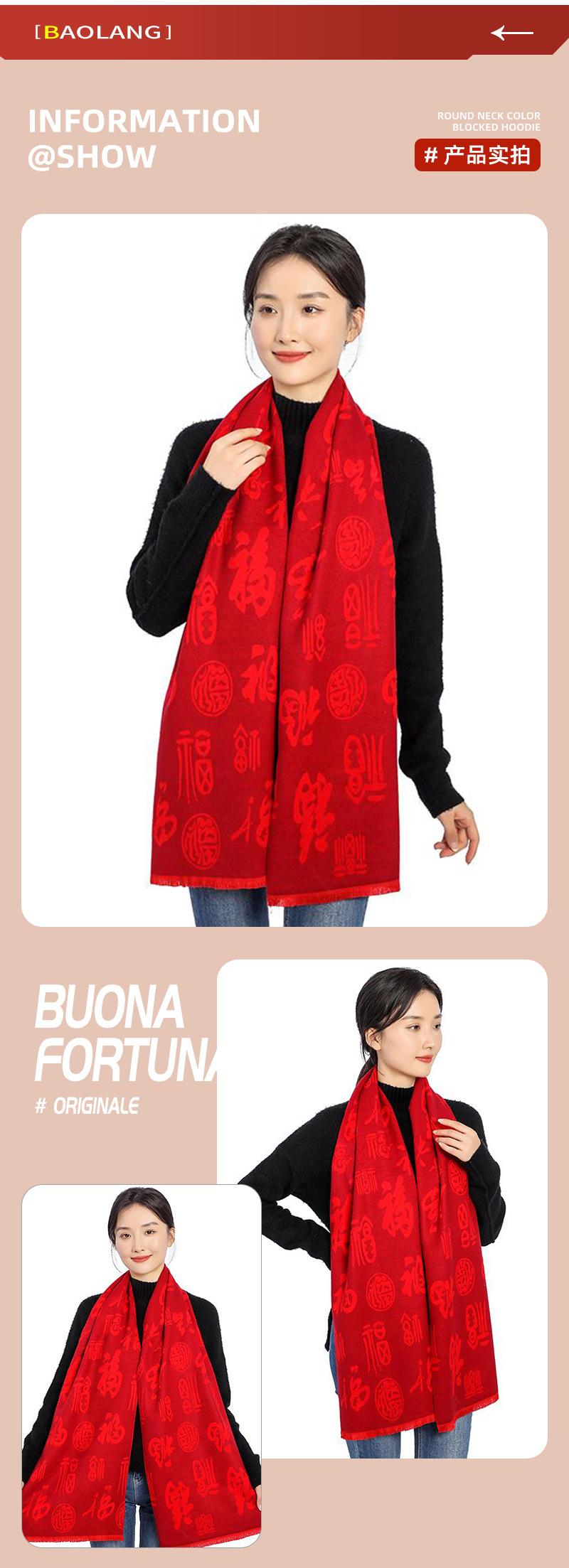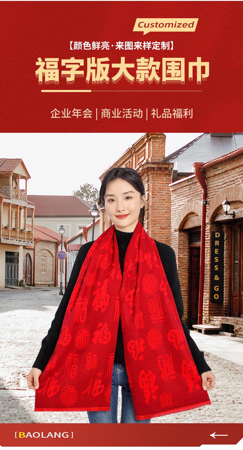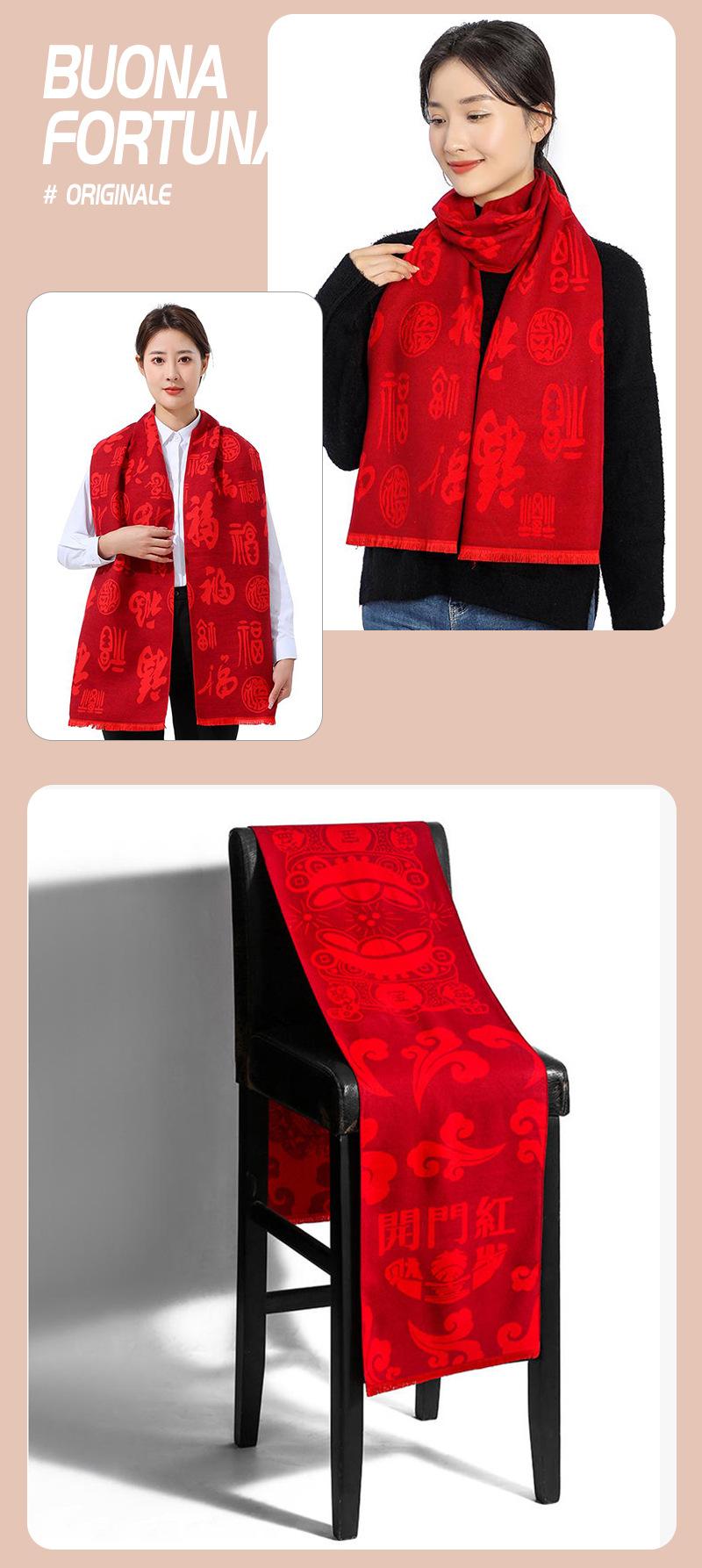 Bufanda Roja China Edición Fortuna Estampado Grande Bordado Reunión Anual de la Empresa Ceremonia de Apertura Bufanda Estampado de logotipo