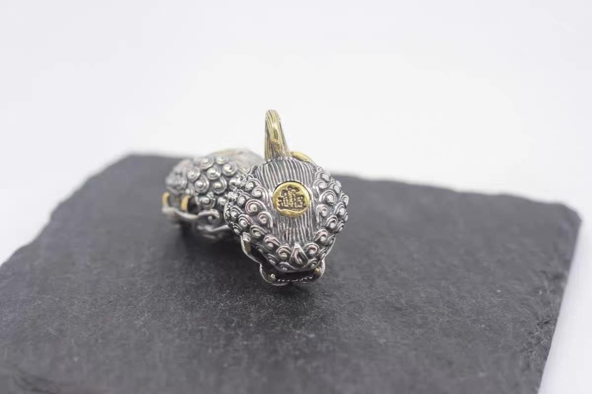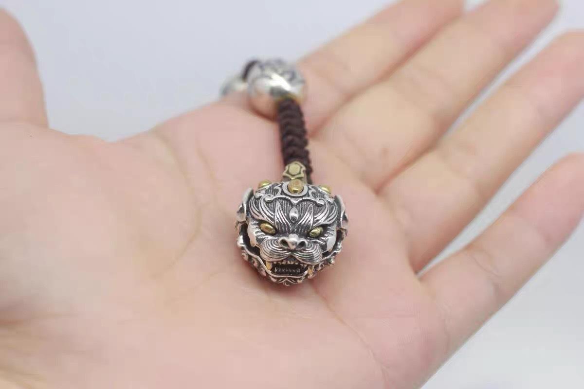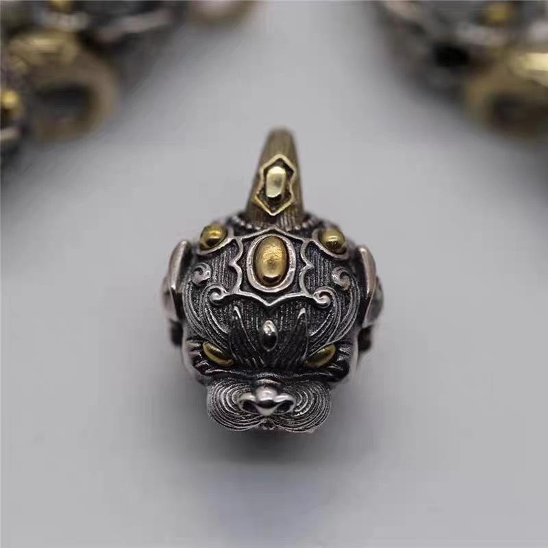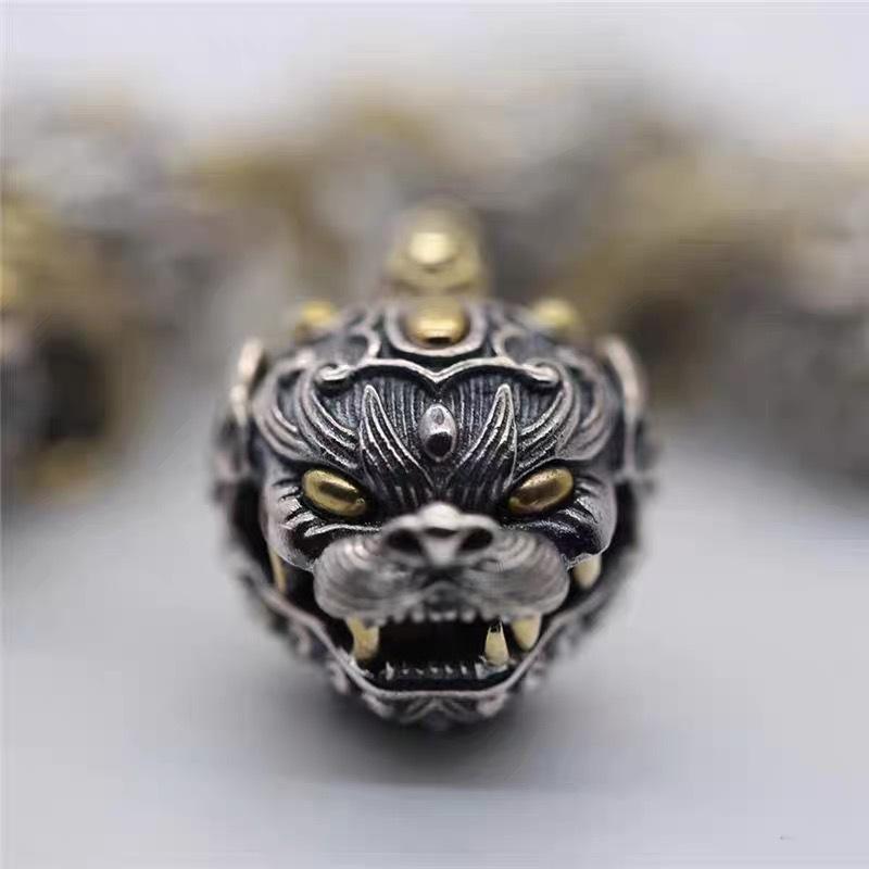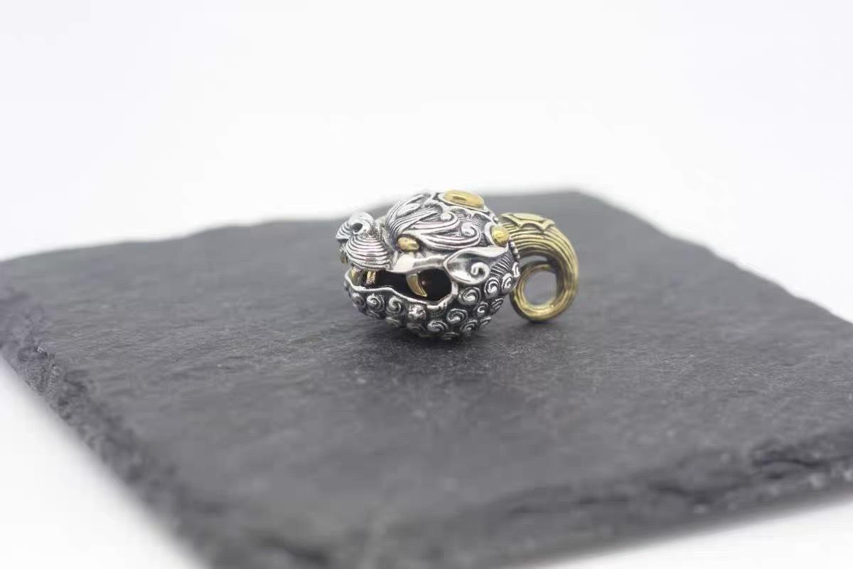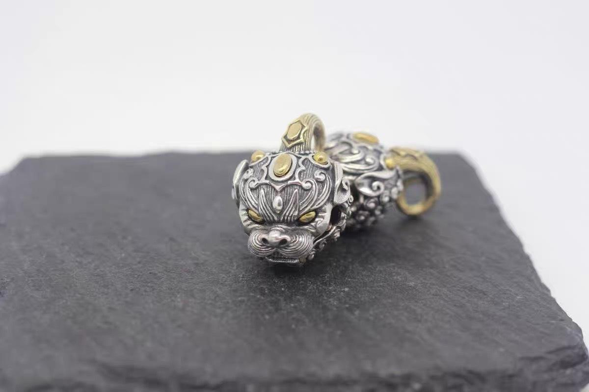 Colgante de campana de la fortuna Pi Xiu para hombre y mujer, joyería antigua plateada, colgante de coche, colgante de león, accesorios