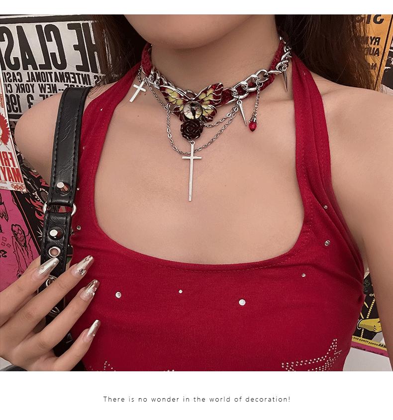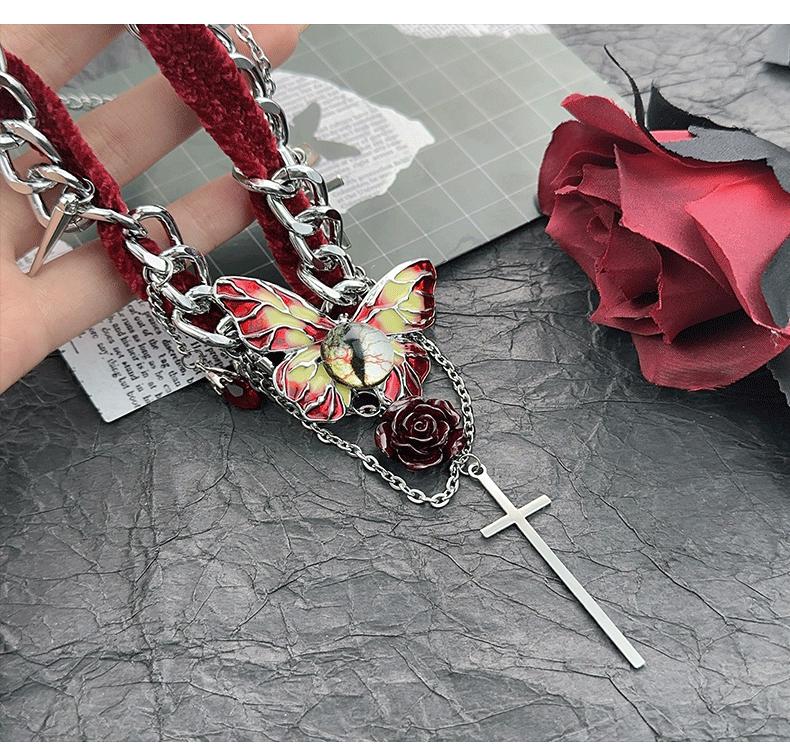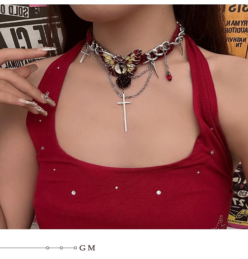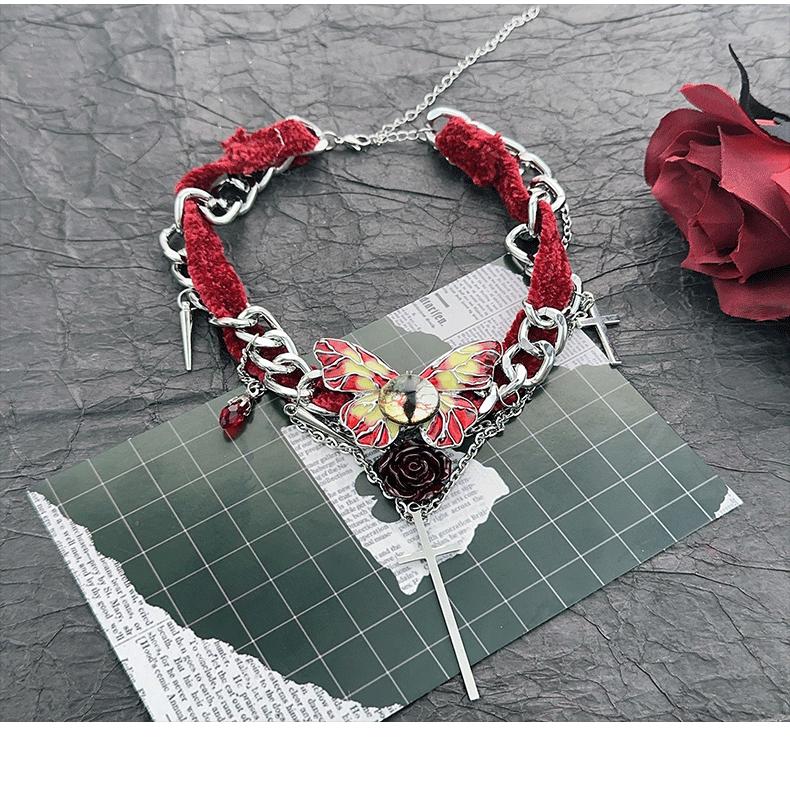 Collar de mariposa de terciopelo rojo estilo gótico para mujer, estilo Spice Girl, estilo otoño-invierno, con diseño de nicho y cadena de clavícula de alta calidad.