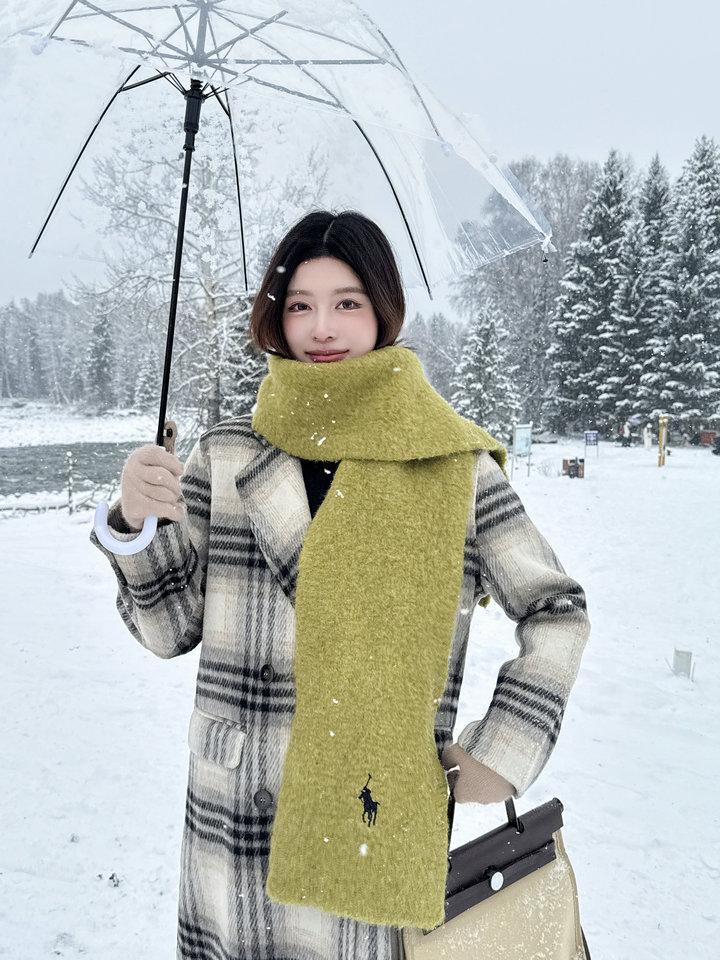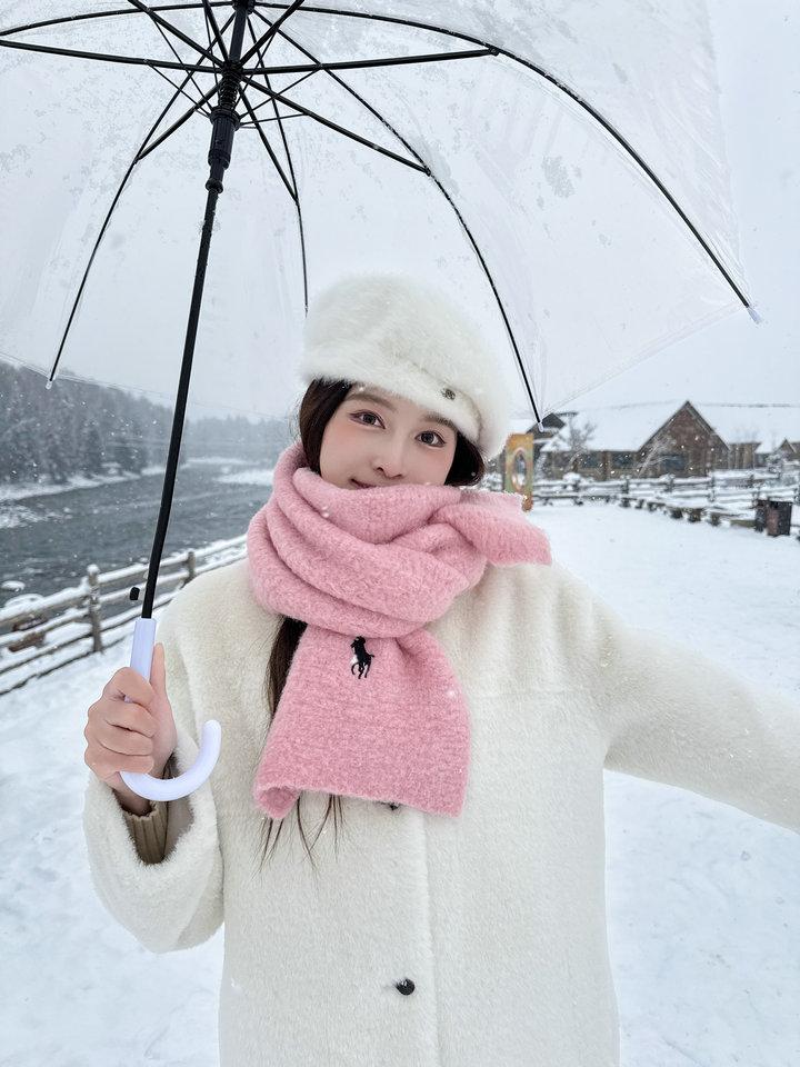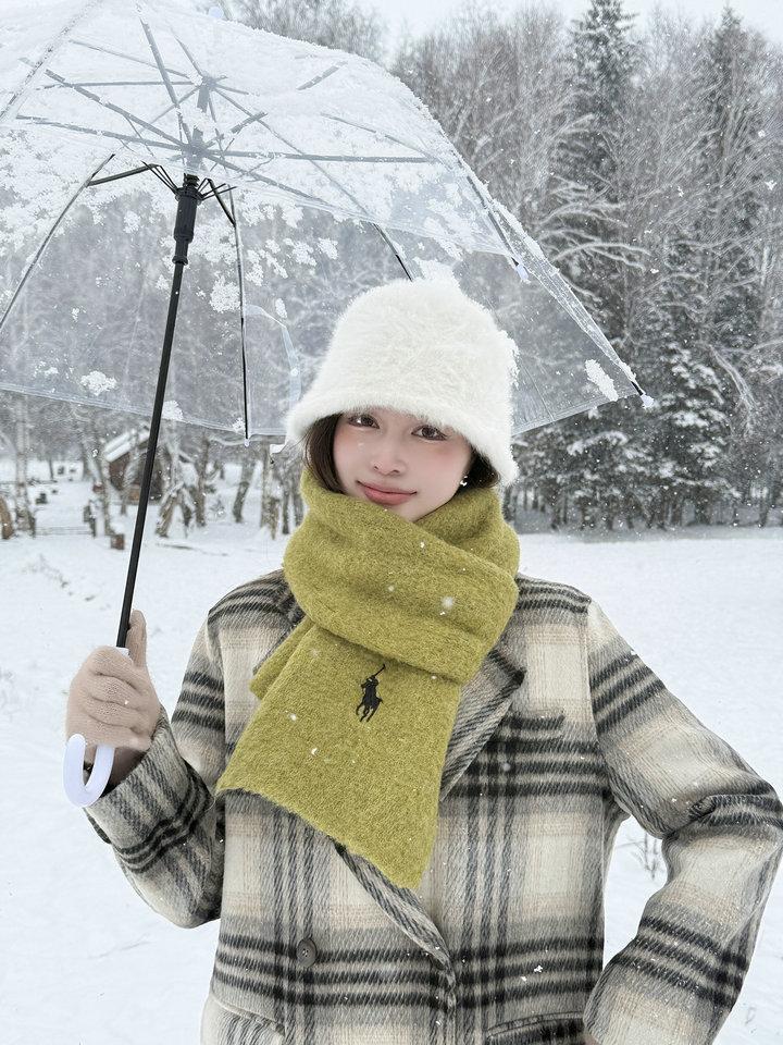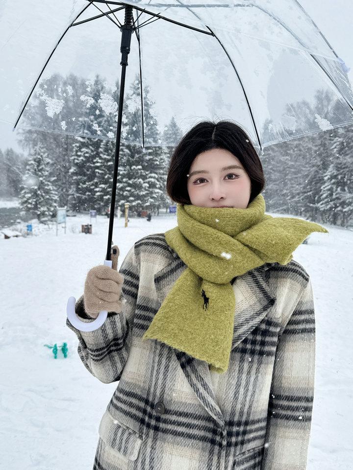Bufanda de punto de invierno 2024 de estilo coreano para mujer, bufanda de cachemira bordada de color liso, bufanda de lana cálida que combina con todo.