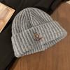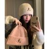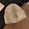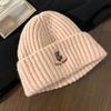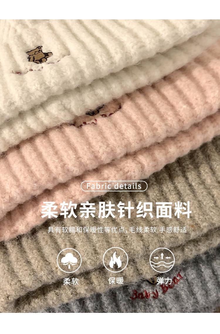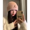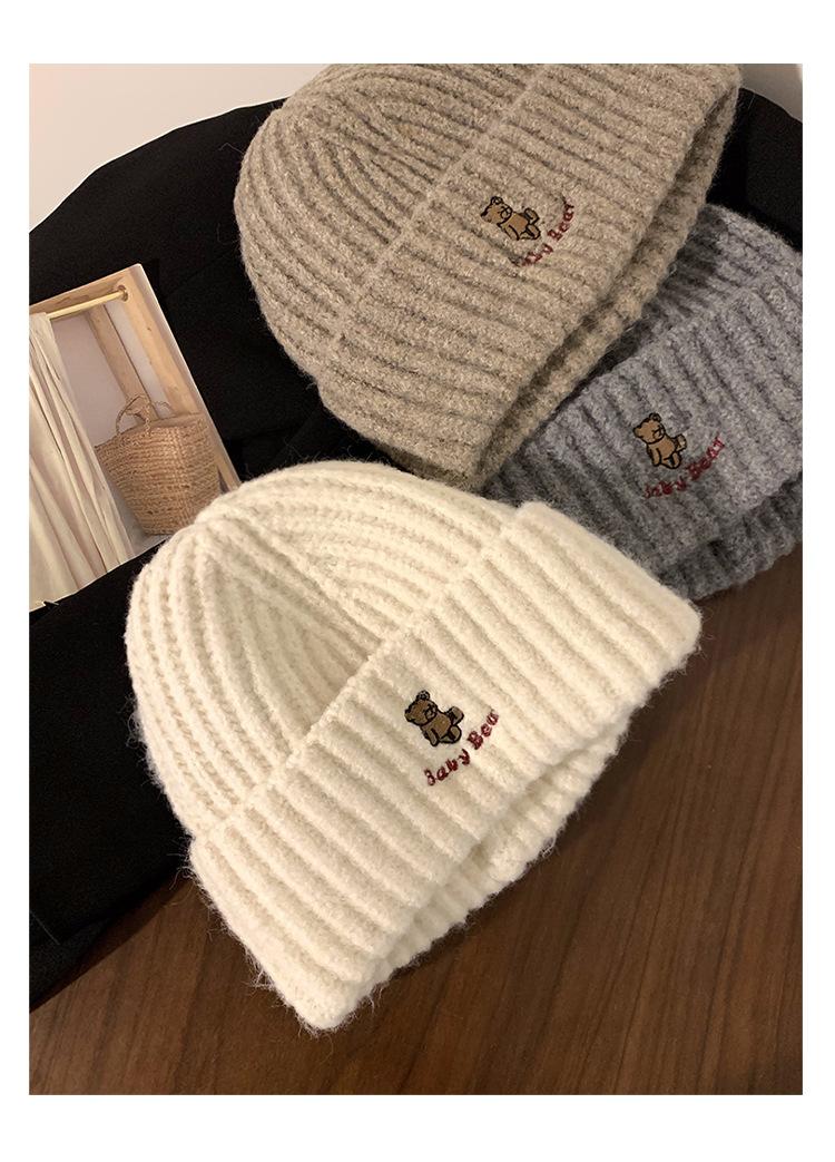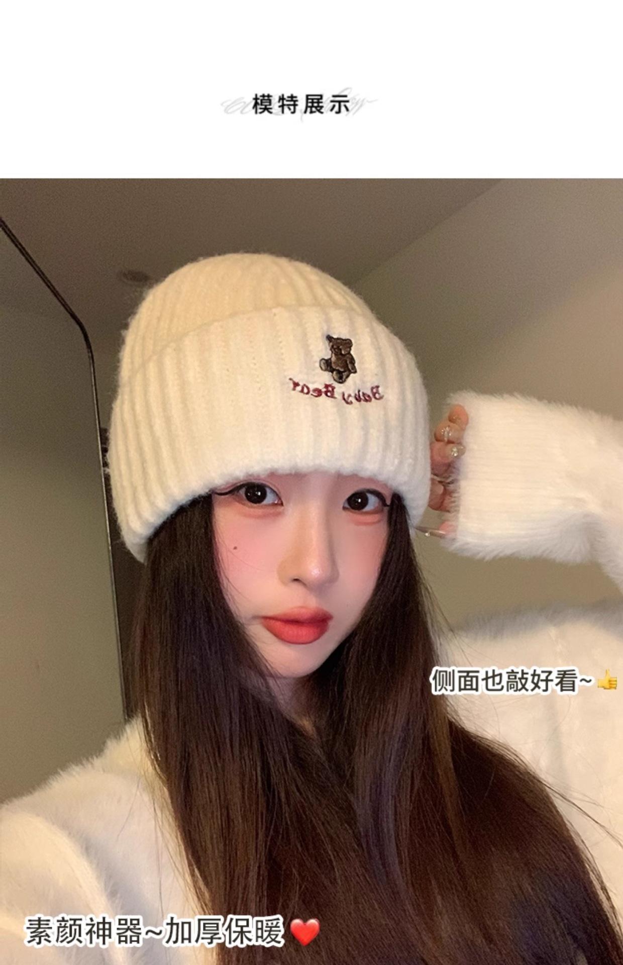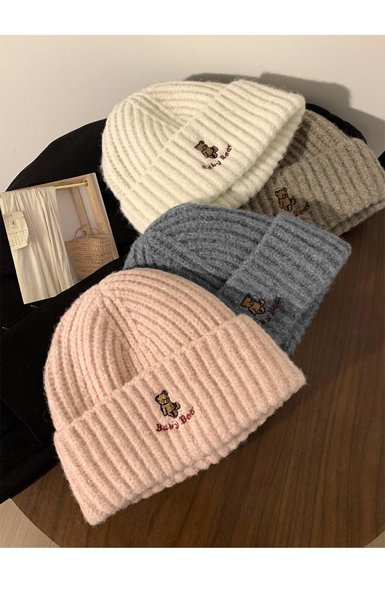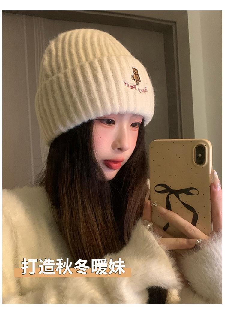 Gorro de lana pequeño con cara de oso para mujer, gorro coreano para el frío, cálido, de punto, con protección para las orejas, para otoño e invierno.